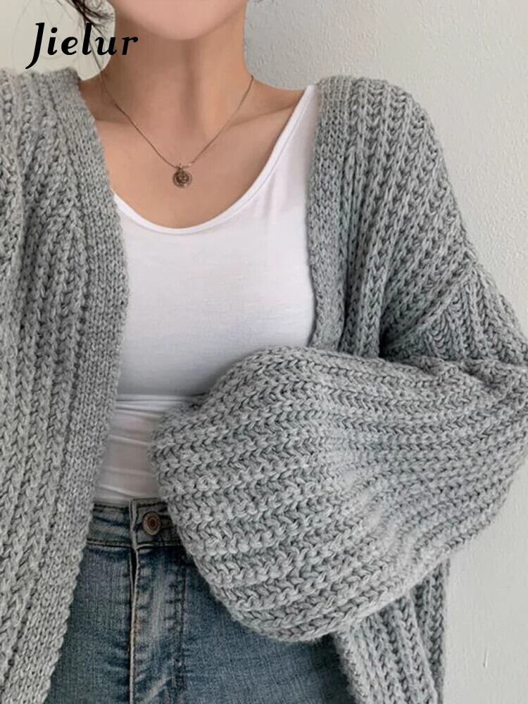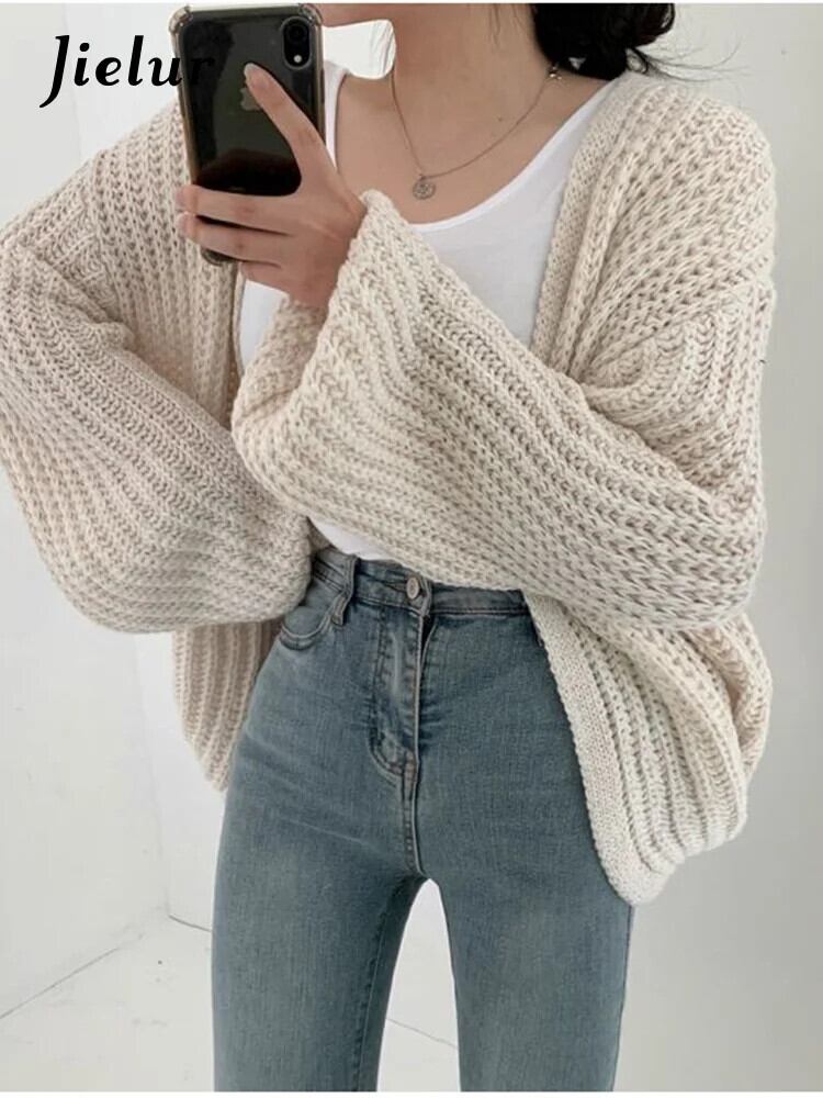 送料無料 Jielur 秋ルーズソリッドカラーカーディガン女性ストリートシックニット女性のカーディガンベージュグレーブラックカーキカーディガン オータム 秋物 AE12188787891846563397