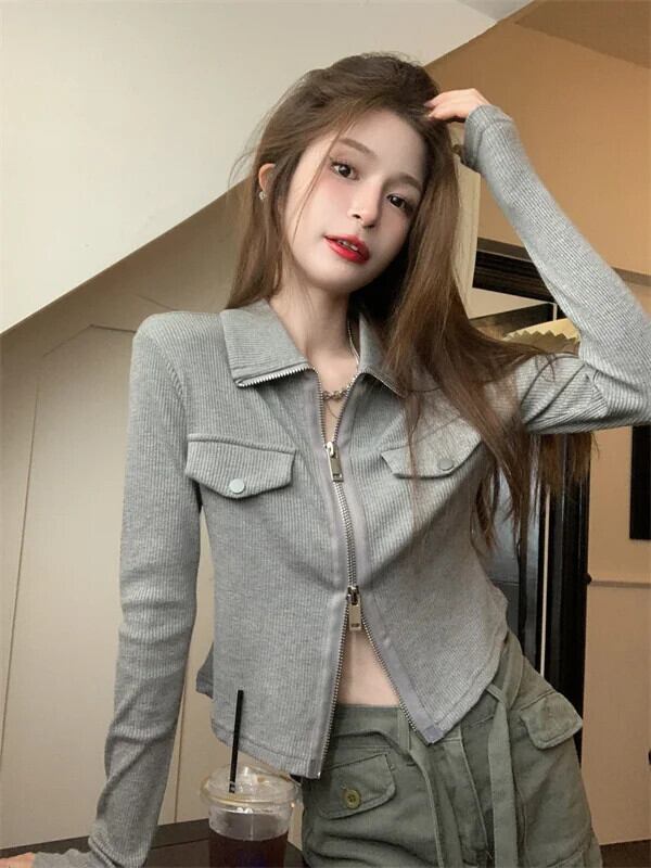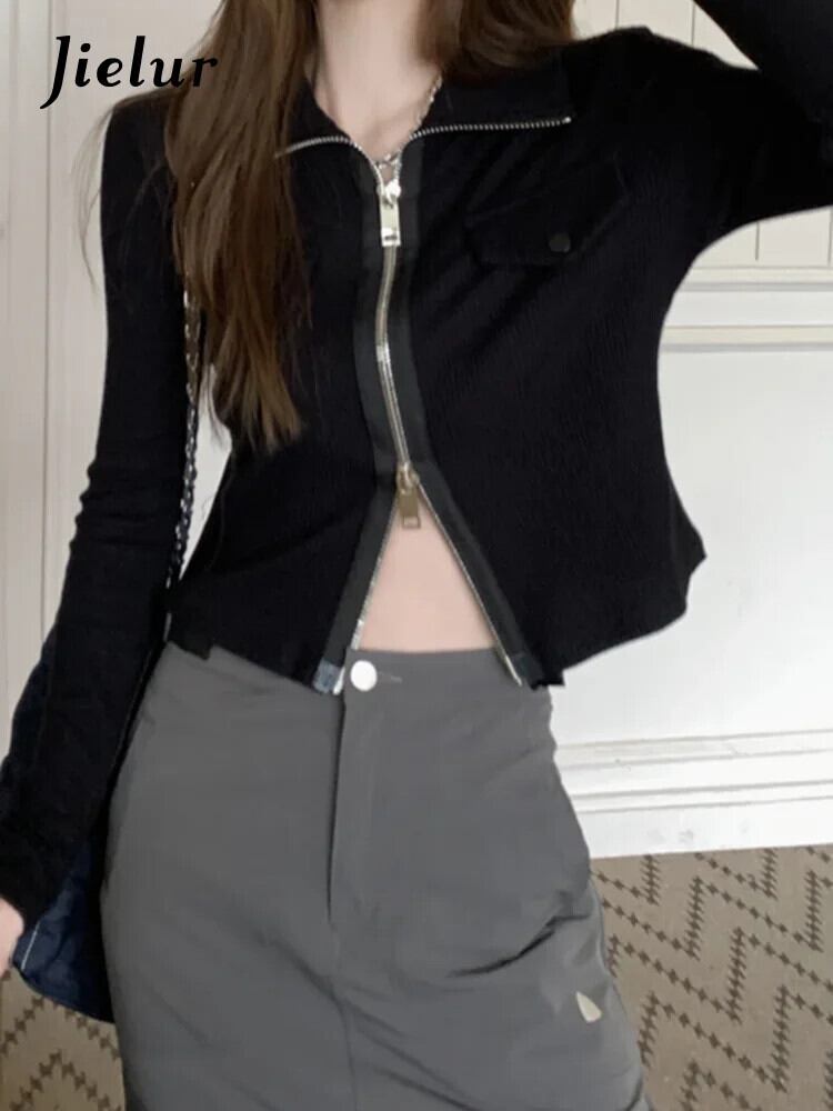 送料無料 Jielur スリムシック長袖女性シャツ無地シンプルなベーシックシャツ女性グレーブラックトップ ロング ソリッドカラー AE12188787861813784108