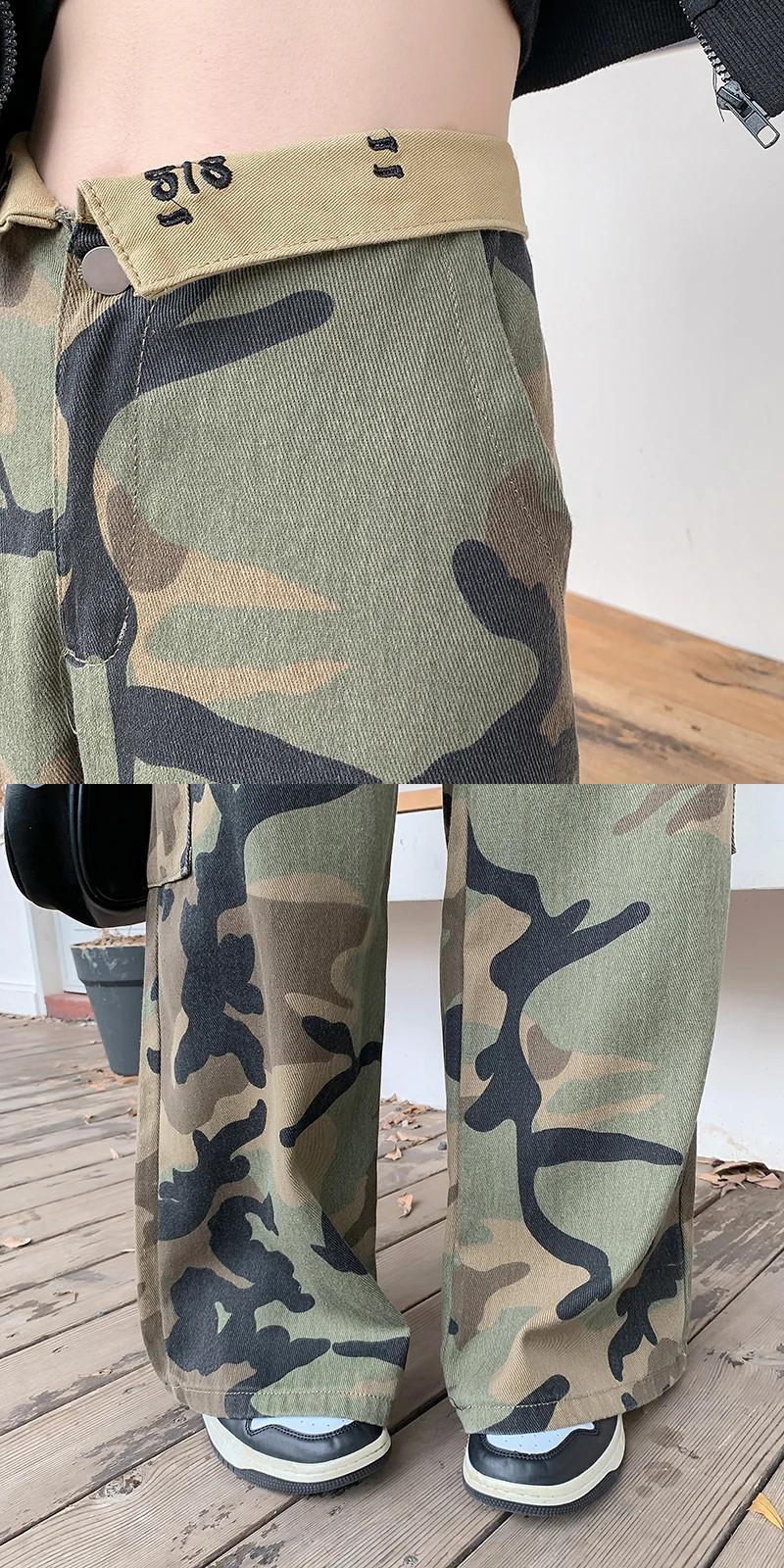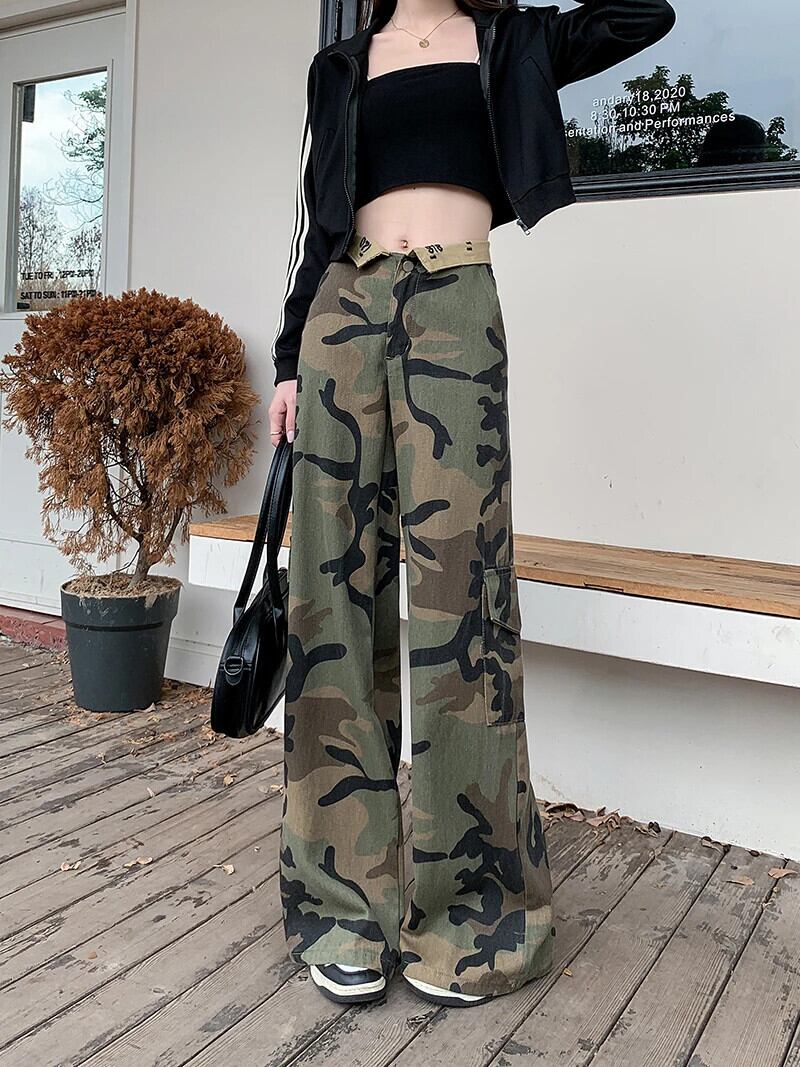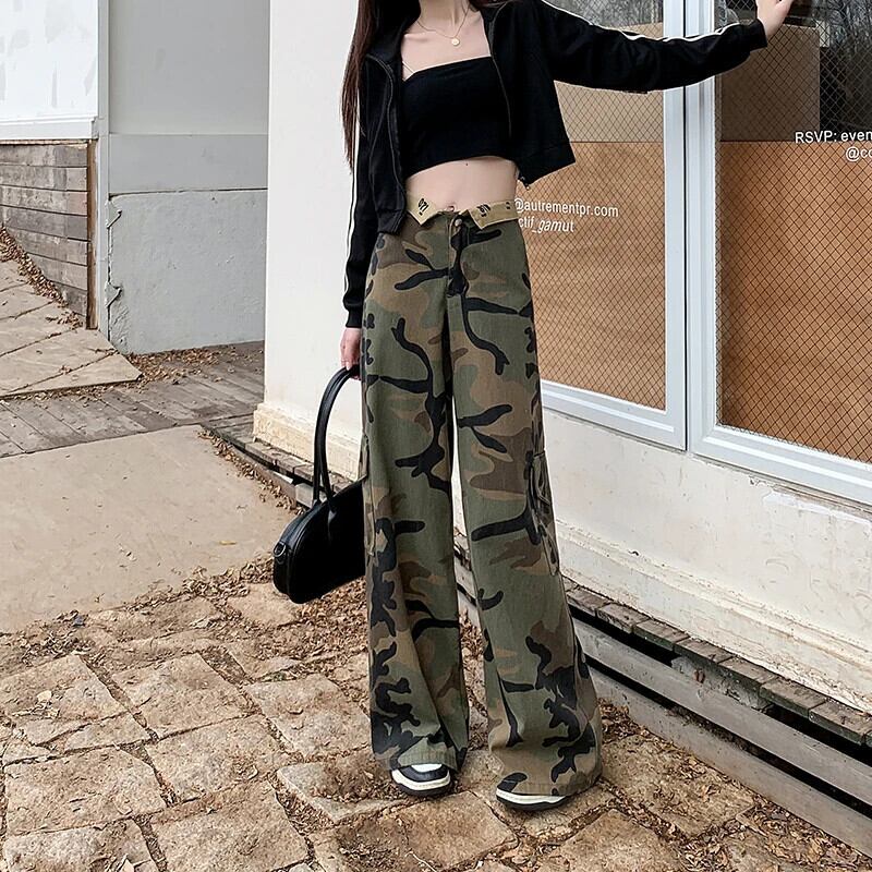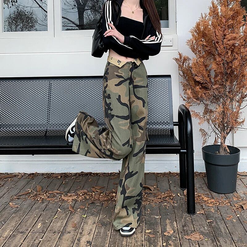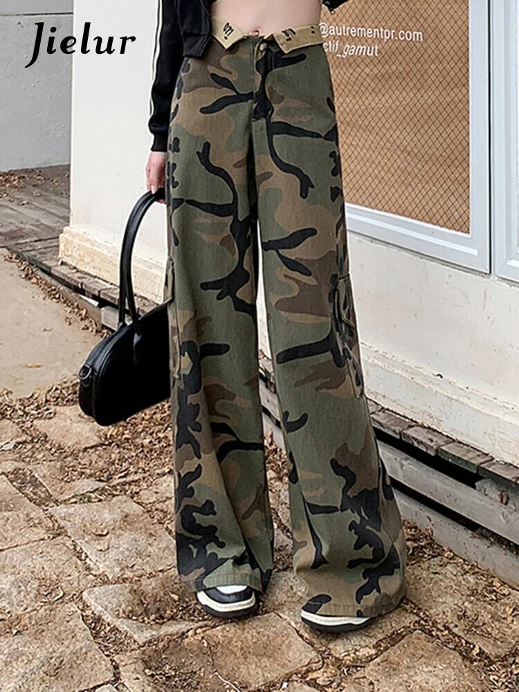 送料無料 Jielur アメリカンヴィンテージ迷彩ジーンズ秋ウエストスリムルーズ全身ストレート女性ジーンズ オータム 秋物 ビンテージ AE12188787877123930686