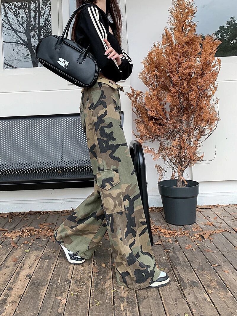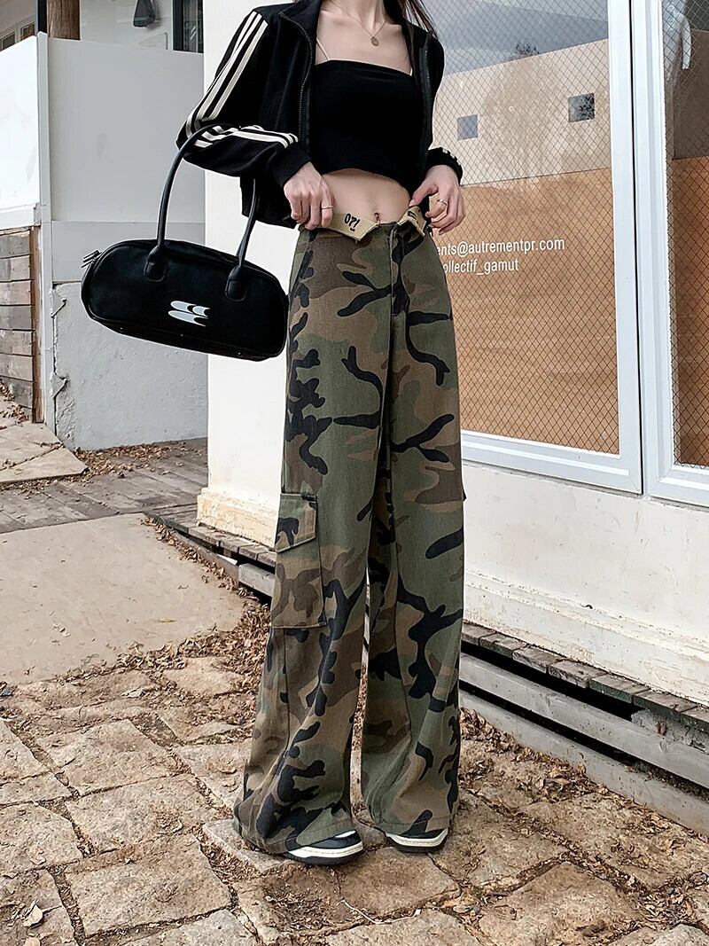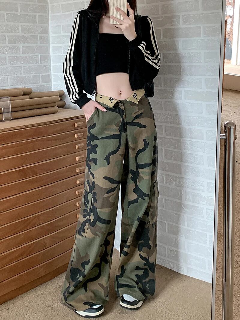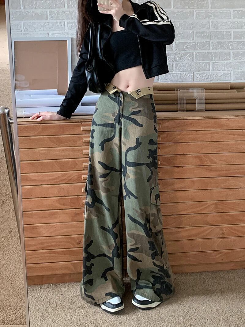 送料無料 Jielur アメリカンヴィンテージ迷彩ジーンズ秋ウエストスリムルーズ全身ストレート女性ジーンズ オータム 秋物 ビンテージ AE12188787877123930686