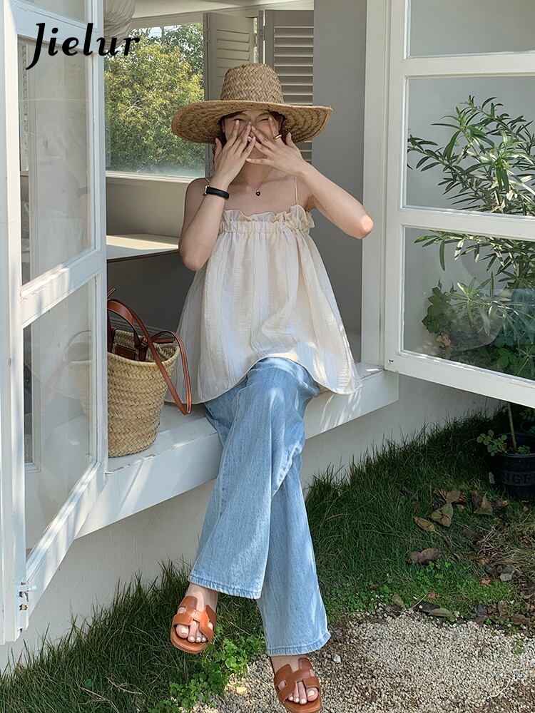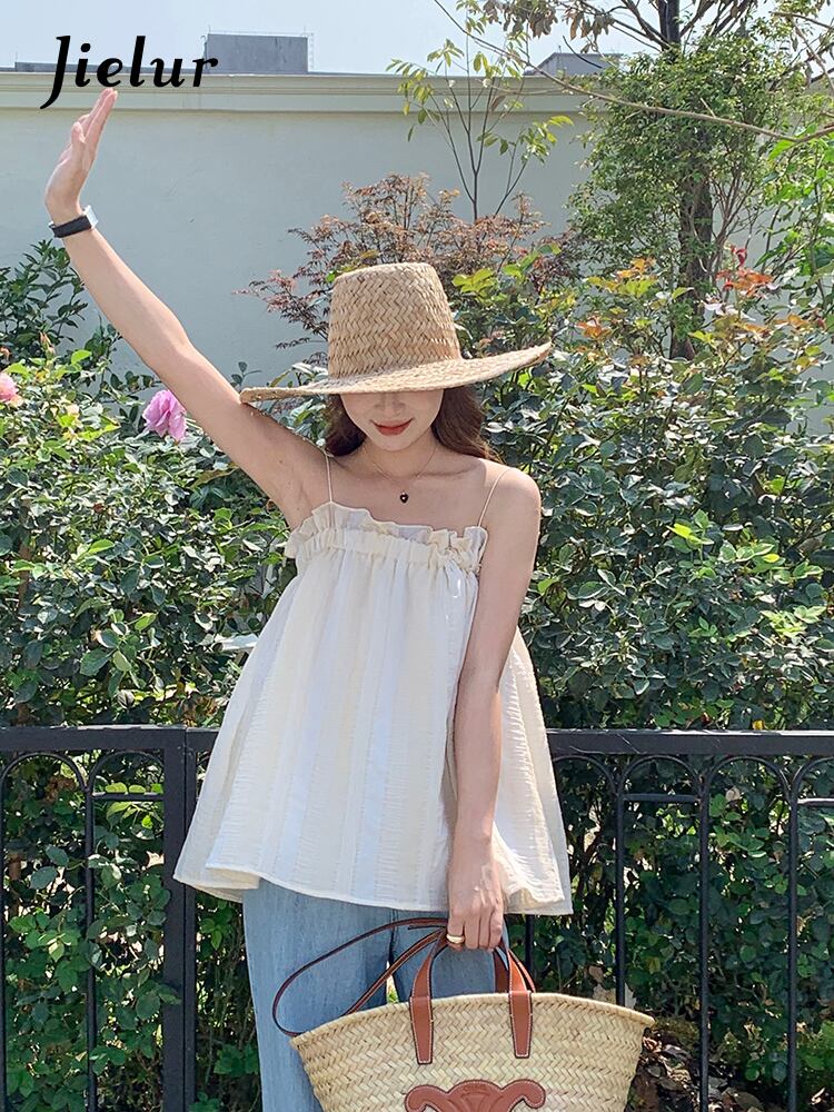 送料無料 Jielur 夏優しいセクシーな女性のタンクルースソリッドカラー甘いストラップレスルーズトップ女性 大人ガーリー スウィート キュート カジュアル サマー 夏物 AE12188787851796032877