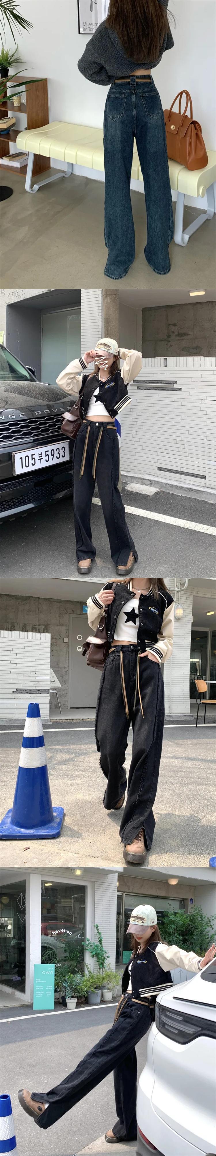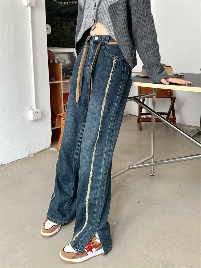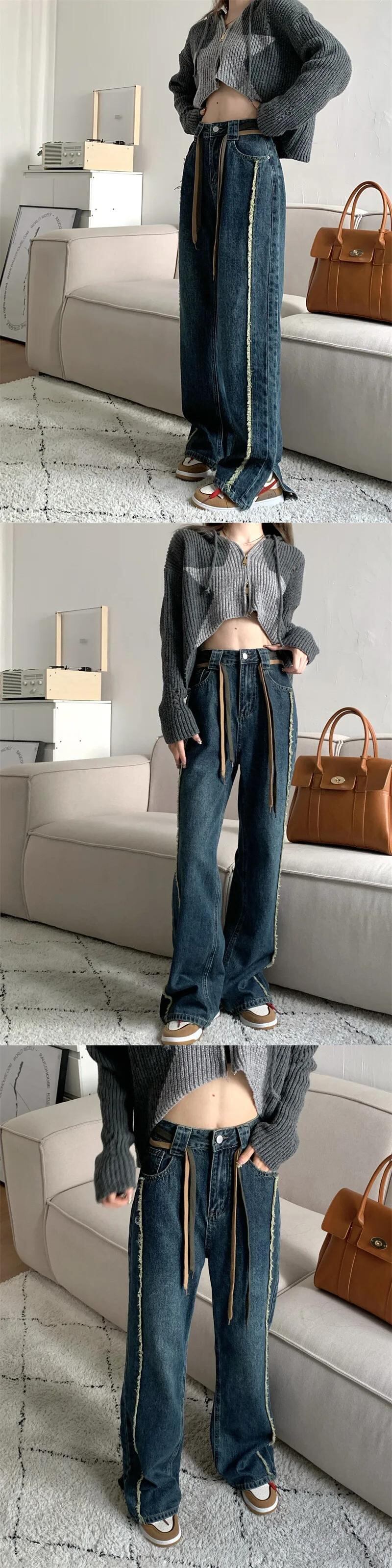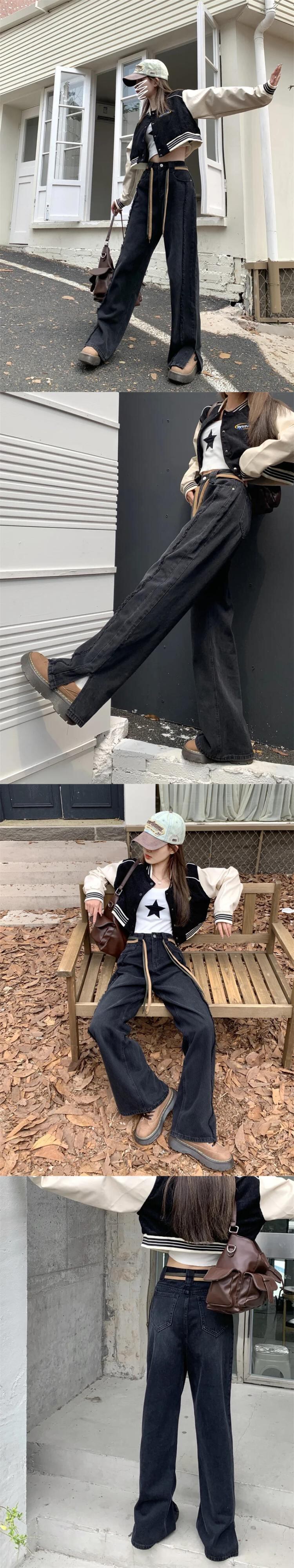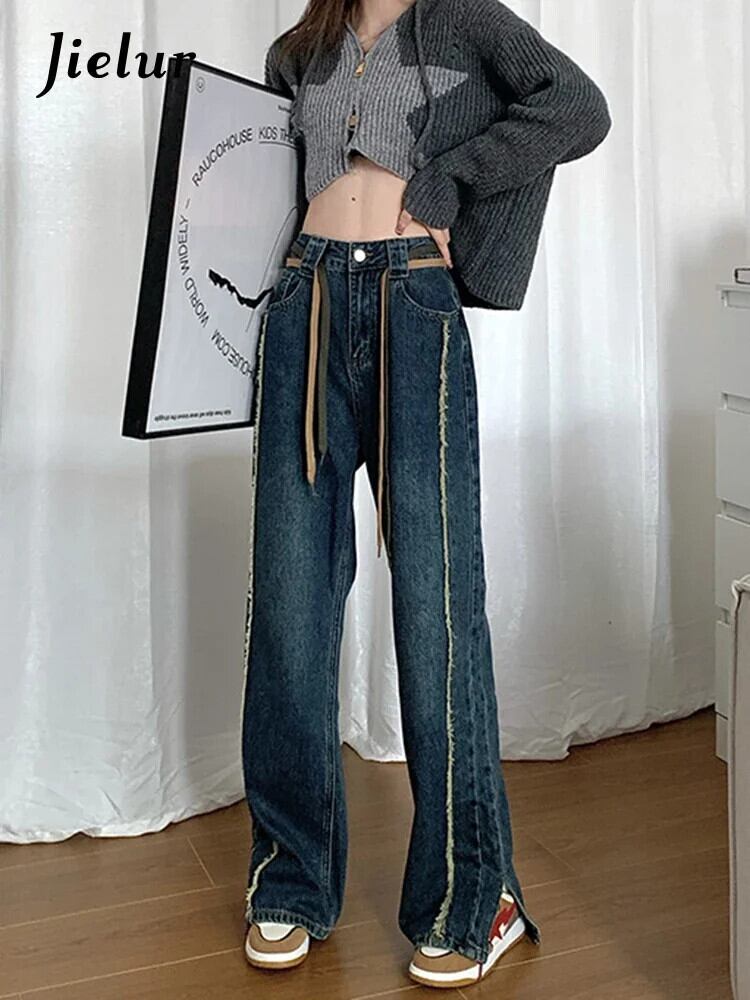 送料無料 Jielur レディース ブルー ジーンズ 秋のウエスト スプライス スリム ワイドレッグ パンツ ブラック ストレート ジーンズ 女性 S-XL オータム 秋物 ワイドパンツ AE12188787849254263621