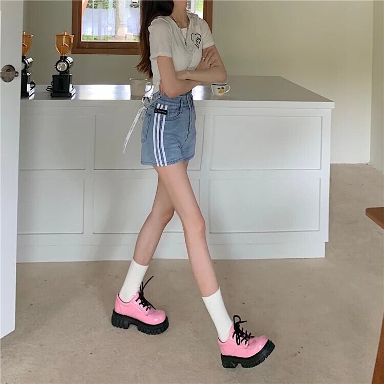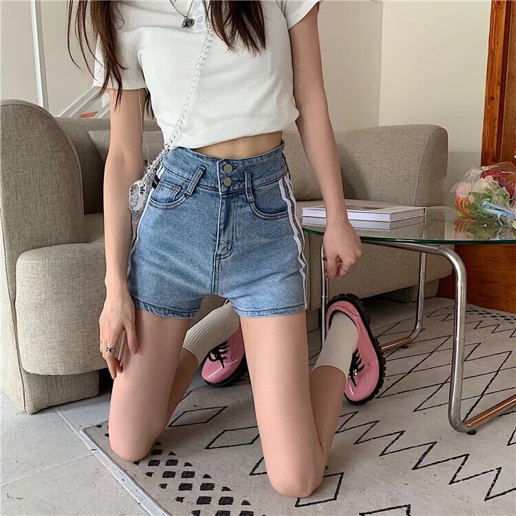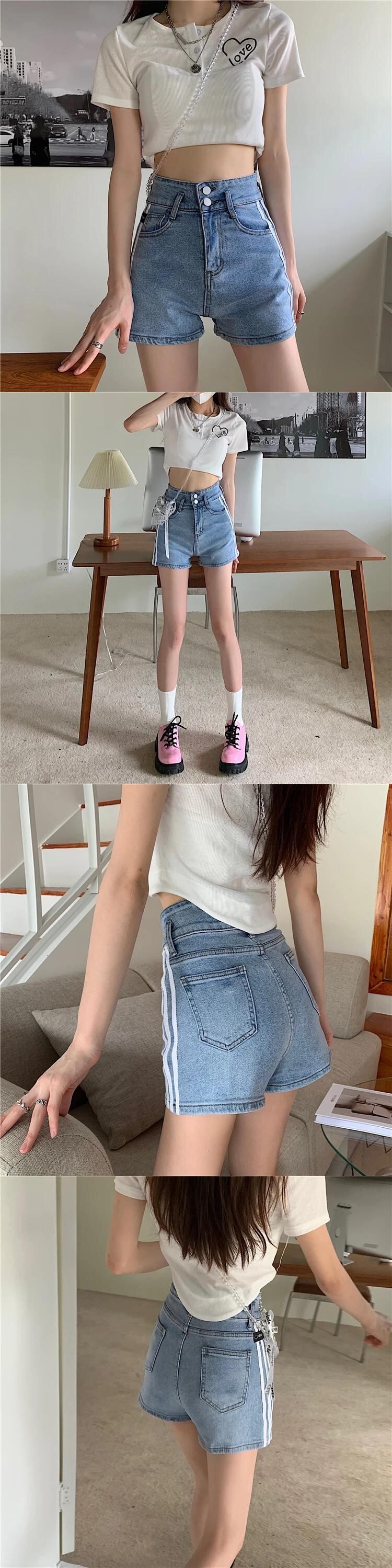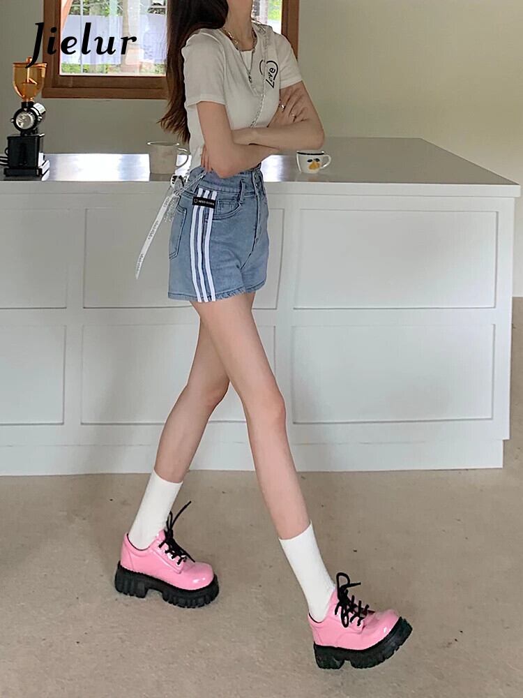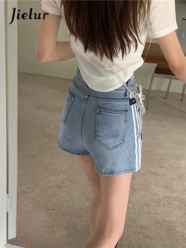 送料無料 Jielur 夏コントラストカラーデニムショートパンツ女性スリムストリート女性のショートパンツシンプルなベーシック Chicly ショーツ サマー 夏物 ブルマー AE12188787881118078514