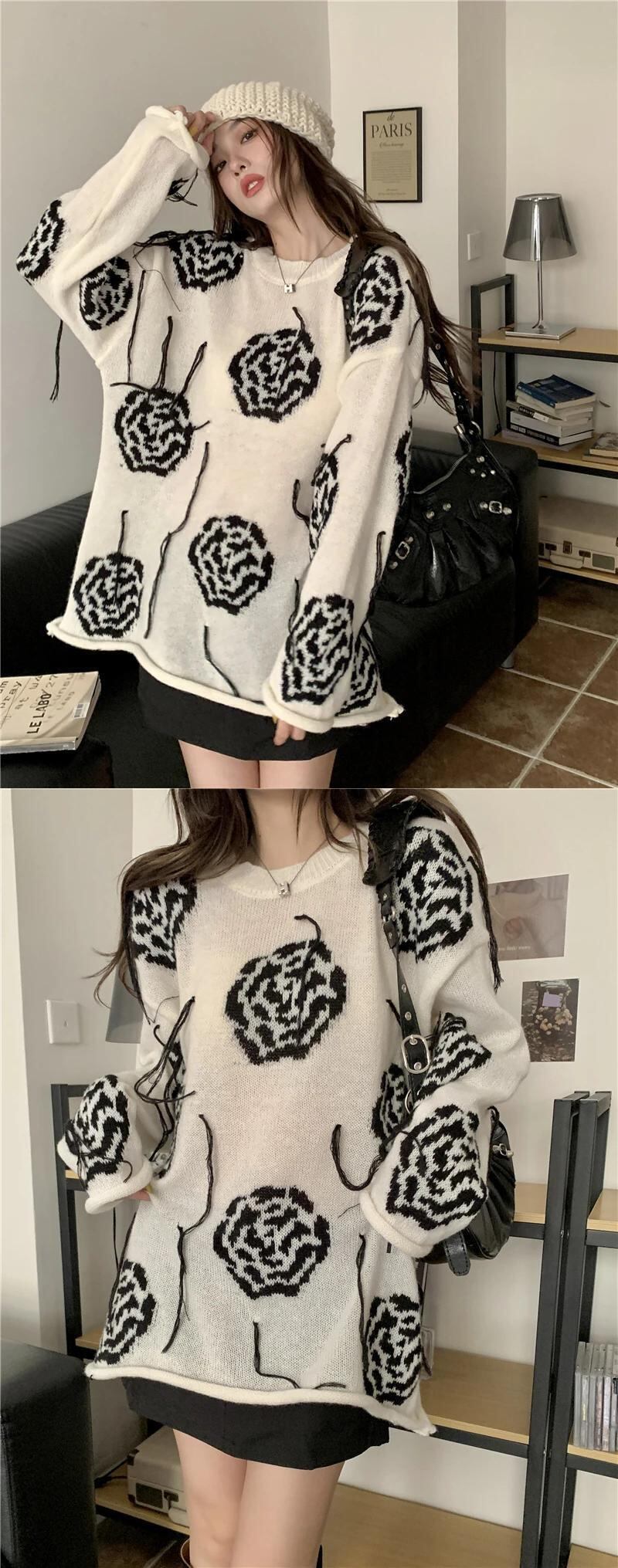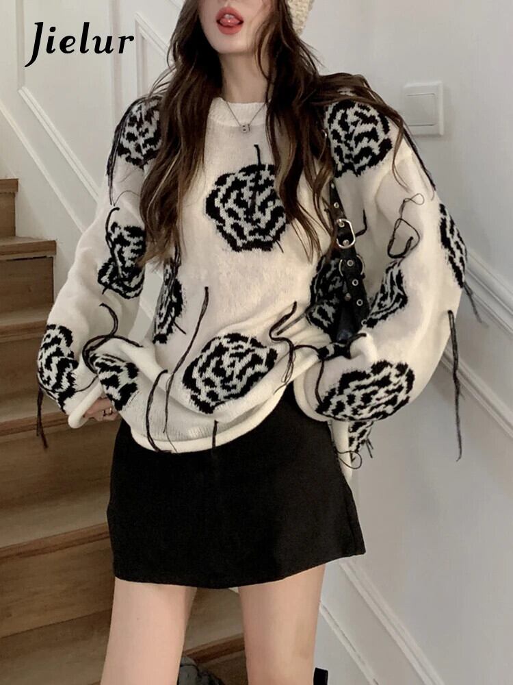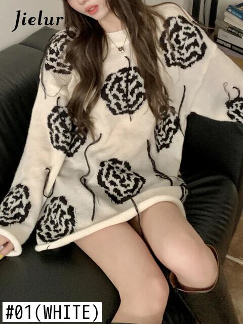 送料無料 Jielur ローズテル白セーター女性スタイルルーズセクシーな女の子セーター秋冬シックなニットトップ ホワイト オータム 秋物 ウィンター 冬物 AE12188787819231781789