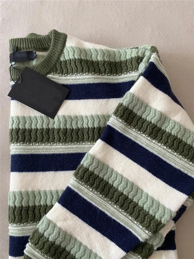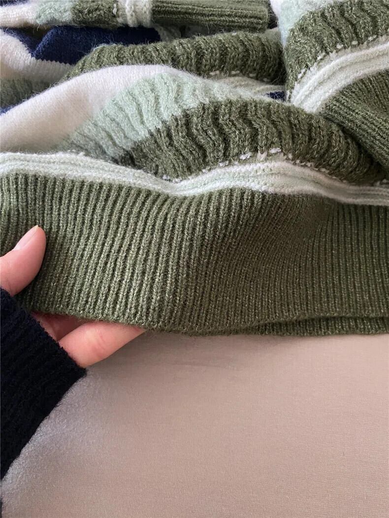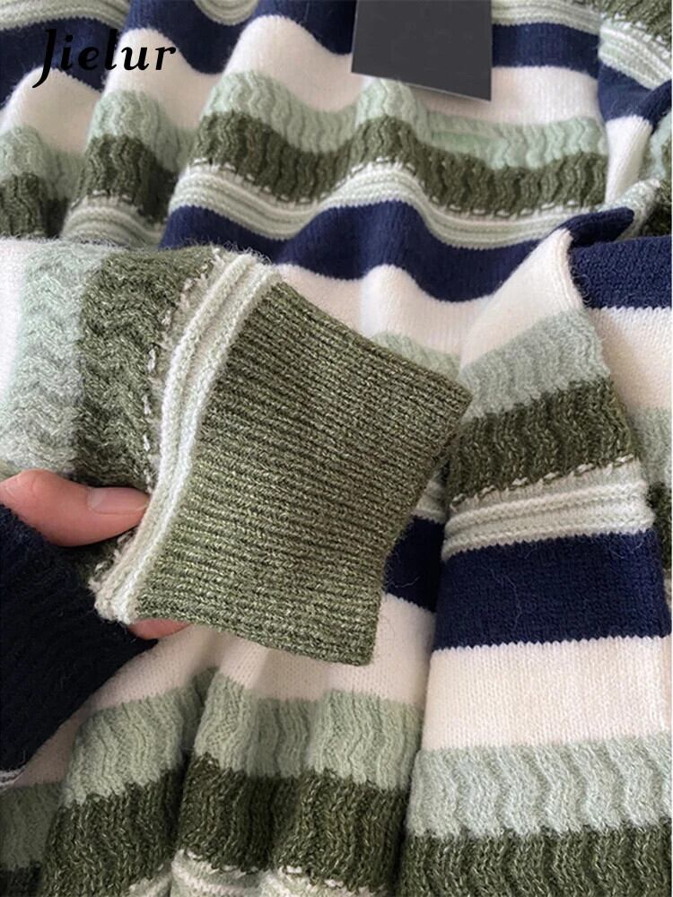 送料無料 Jielur 秋のコントラストカラースリムプルオーバー女性ルーズ基本プルオーバーグリーンニットストライプ Chicly トップ女性 オータム 秋物 AE12188787899535066790