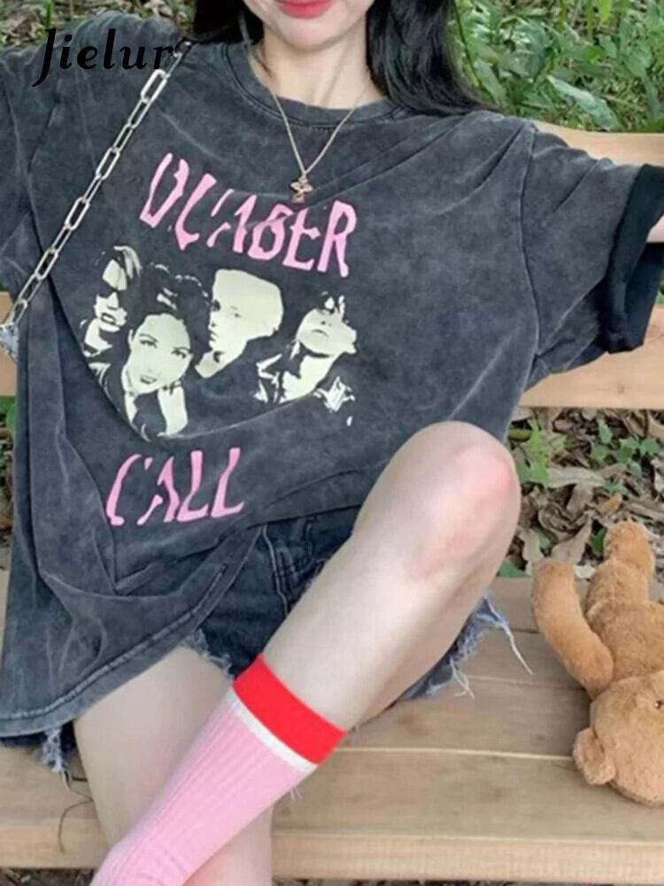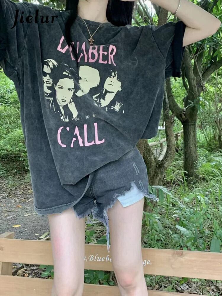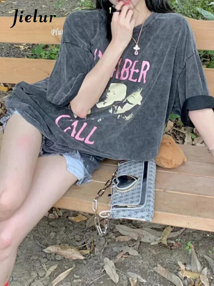 送料無料 Jielur 夏ルーズスリム女性の Tシャツシンプルなベーシック Tシャツ女性黒 O ネック Chicly ストリートトップ ブラック サマー 夏物 Oネック AE12188787877078169277