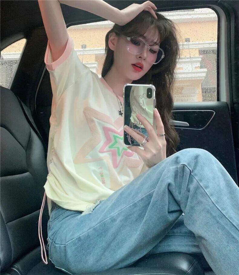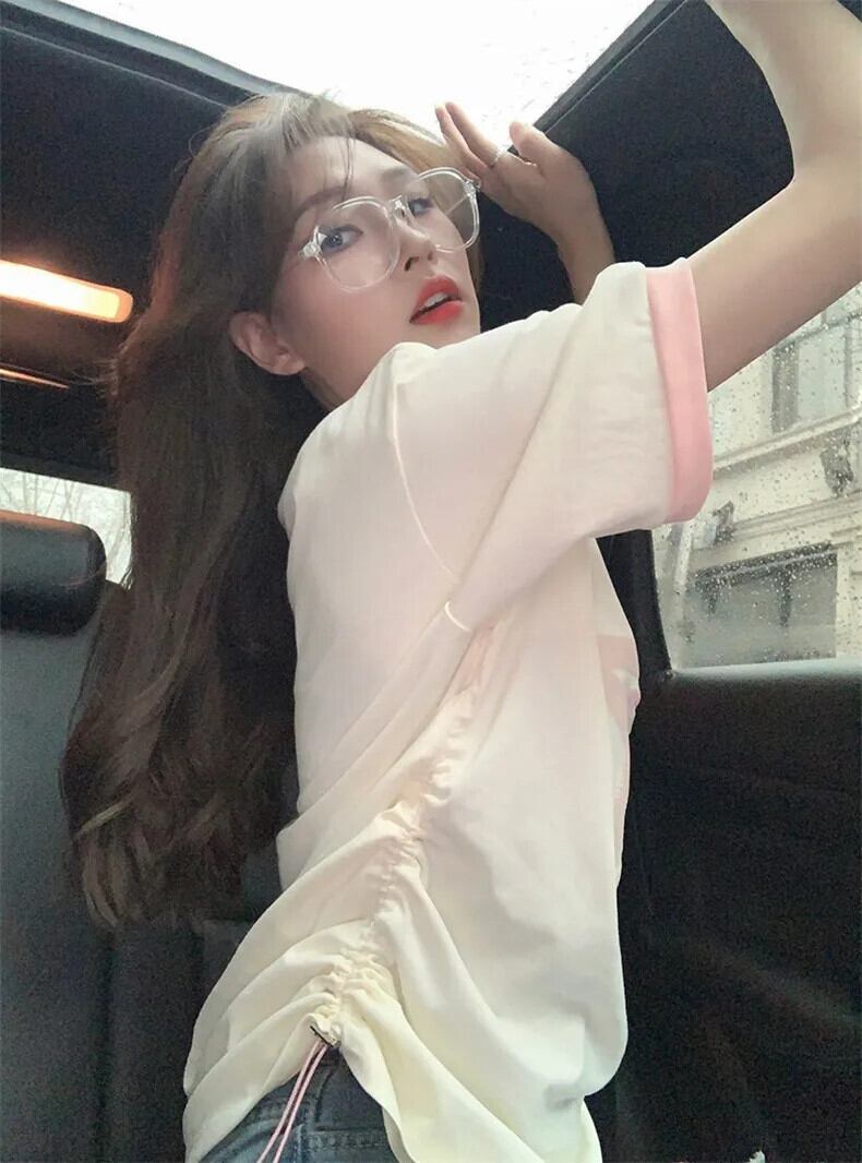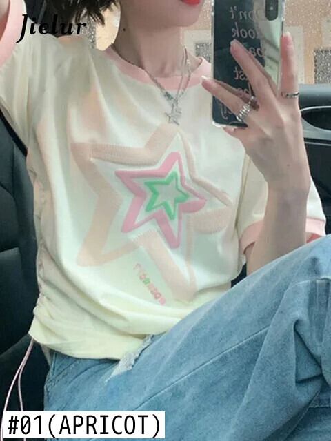 送料無料 Jielur 夏スリム甘い女性の Tシャツルーズセクシーな Tシャツ女性アプリコットベーシックストリート Chicly トップ 大人ガーリー スウィート キュート カジュアル サマー 夏物 AE12188787869711488740
