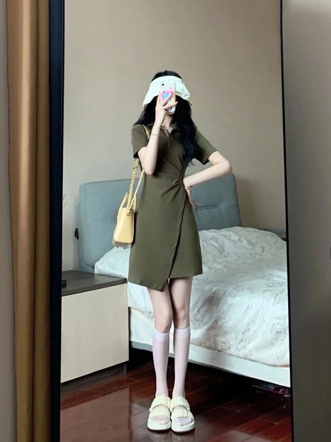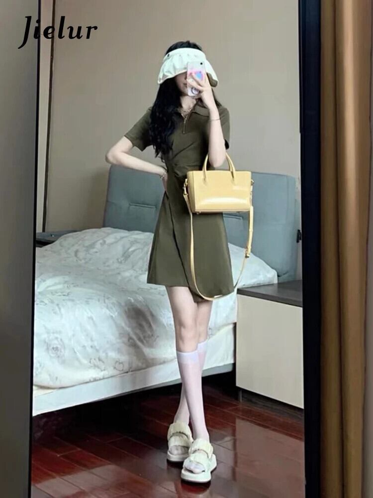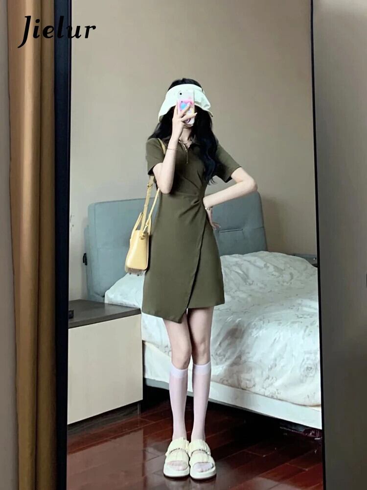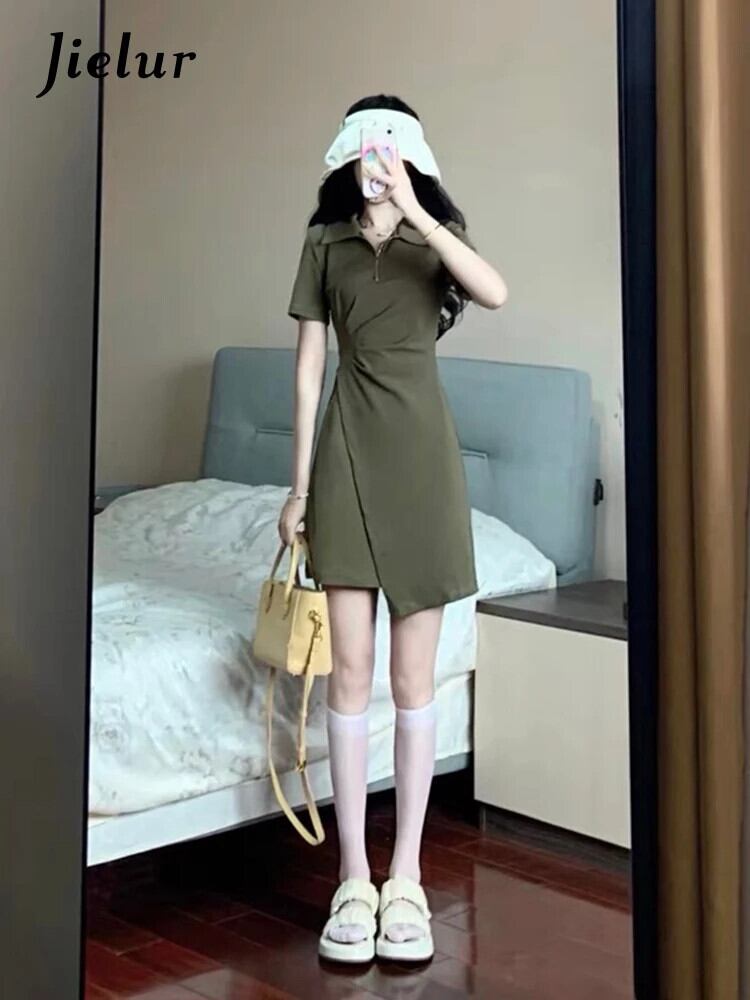 送料無料 Jielur フランスのセクシーなサマードレス女性ソリッドカラーの甘いドレスブラックアーミーグリーンポロネックタイトヒップドレス 大人ガーリー スウィート キュート カジュアル 夏物 AE12188787849189525851