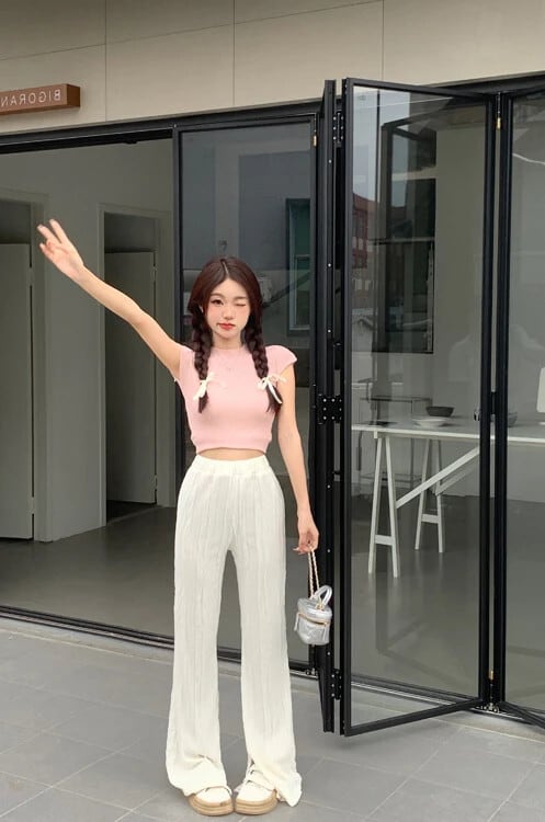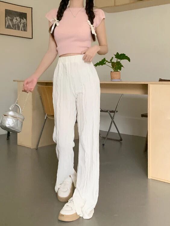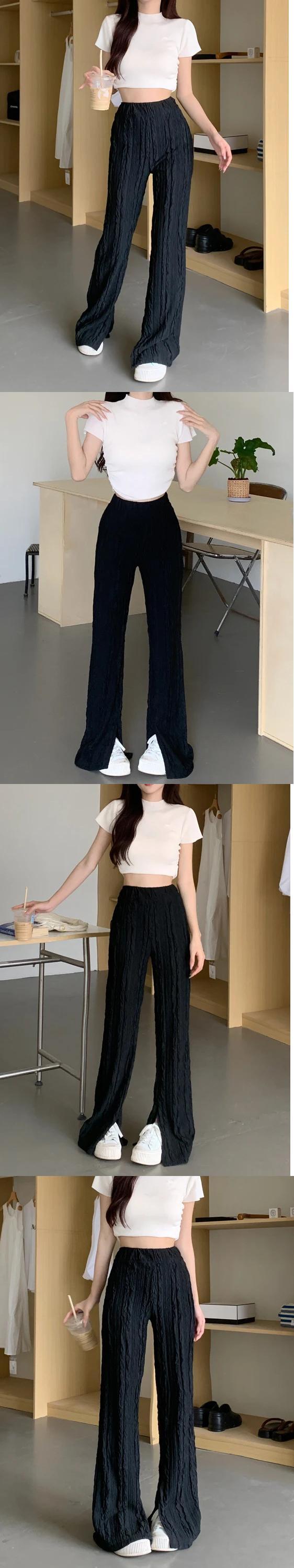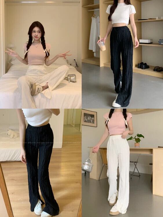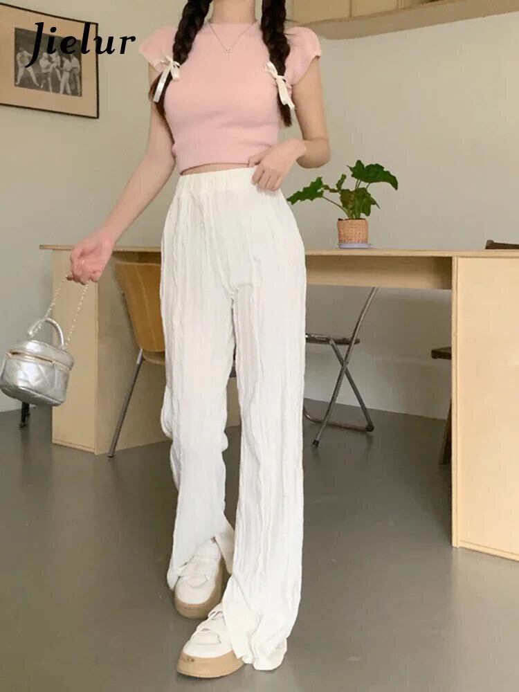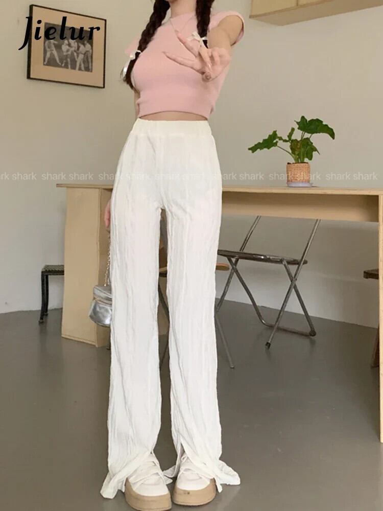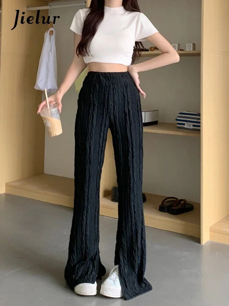 送料無料 Jielur ソリッド分割ルーズ女性のパンツスリムウエストストレートパンツ女性黒アプリコットシンプルなベーシックパンツ ブラック ソリッドカラー AE12188787859169019864