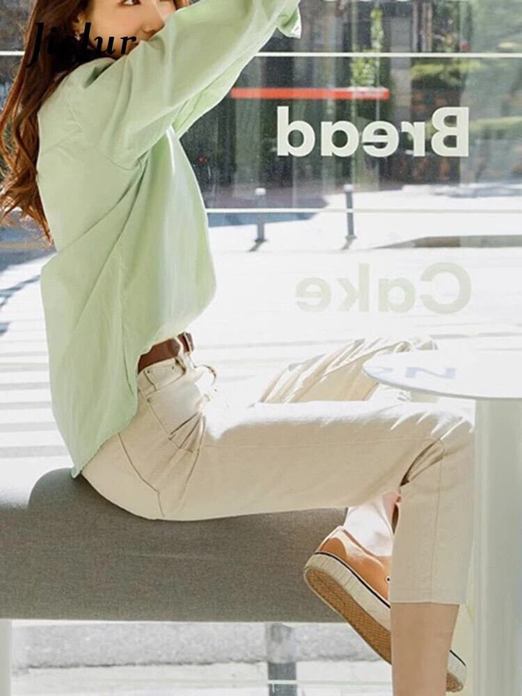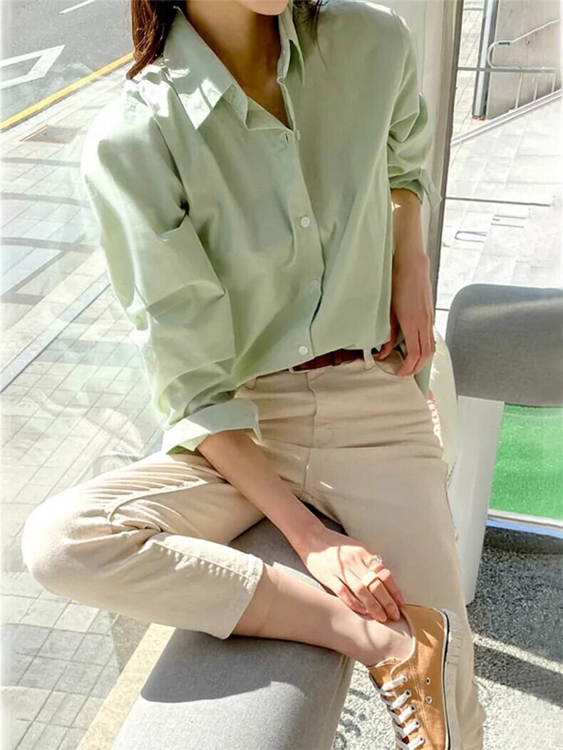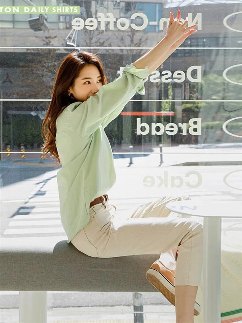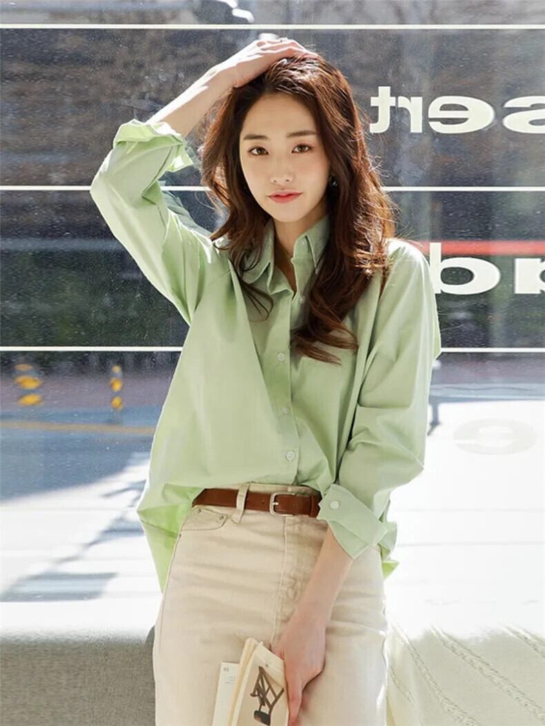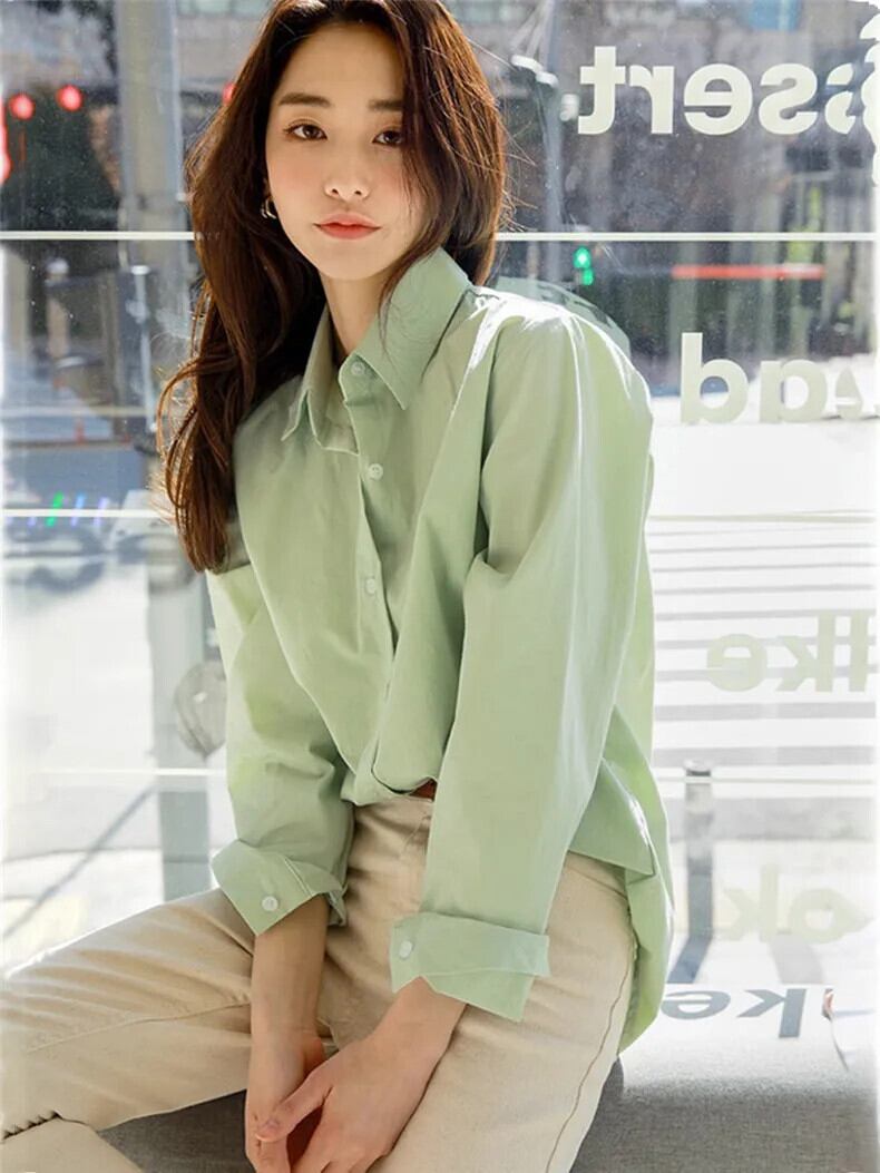 送料無料 Jielur 春スリムソリッドカラーの女性のシャツシンプルなベーシックシックな女性のシャツルーズストリート長袖トップ ロング スプリング 春物 AE12188787896529628215
