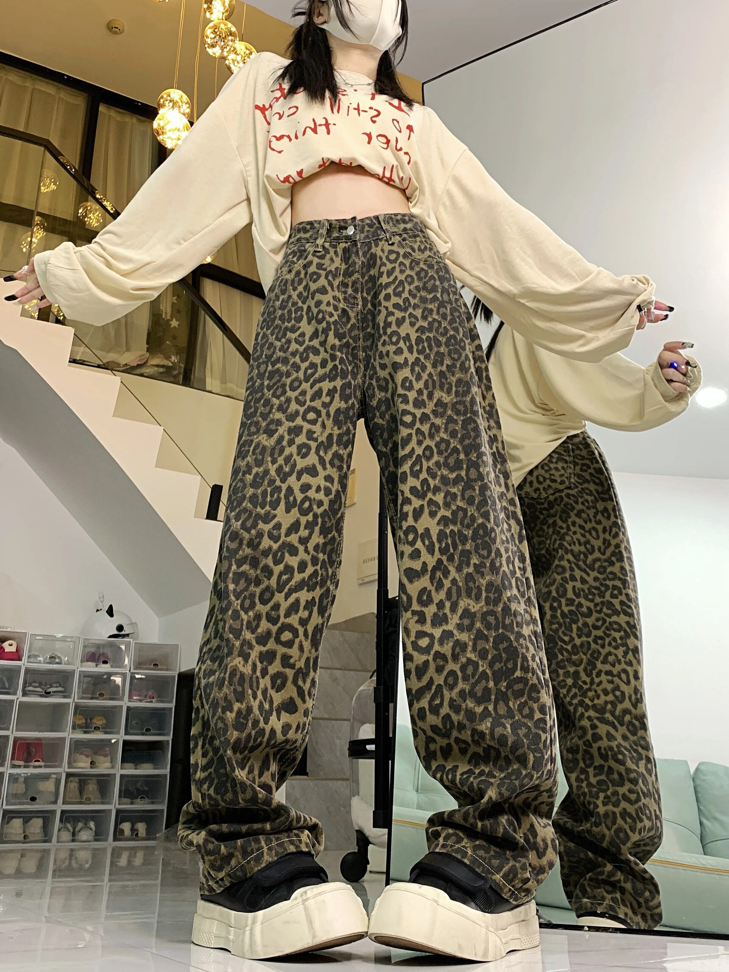 送料無料 Y2k ヒョウヴィンテージ女性のジーンズストリートスリム女性ジーンズルーズシックなストレートレッグワイドレッグパンツ ワイドパンツ ビンテージ AE12188787891437691066