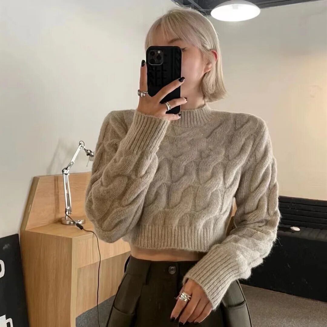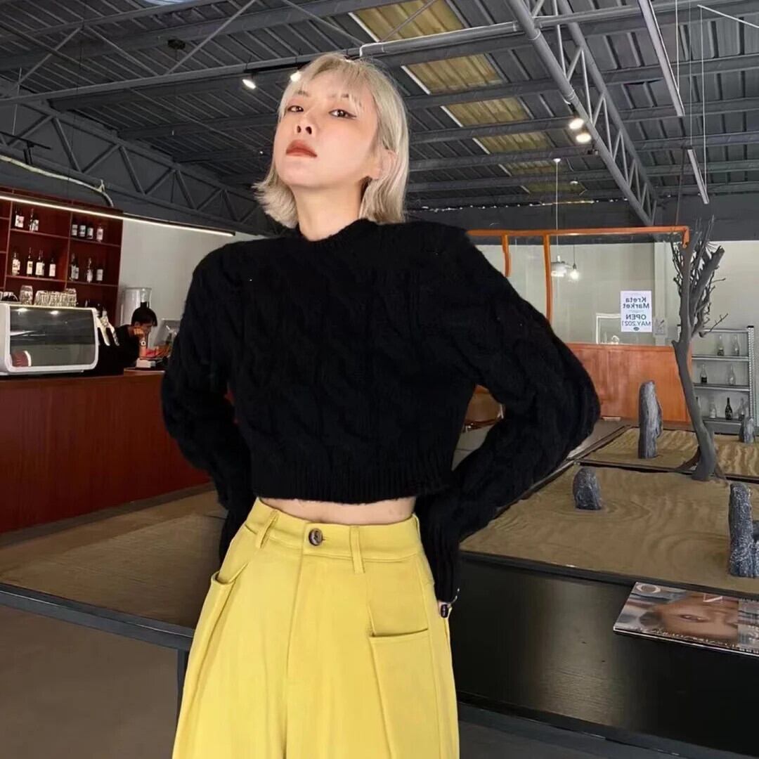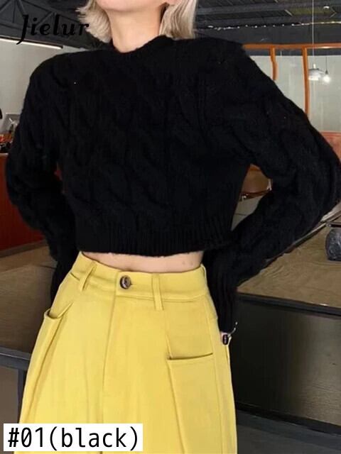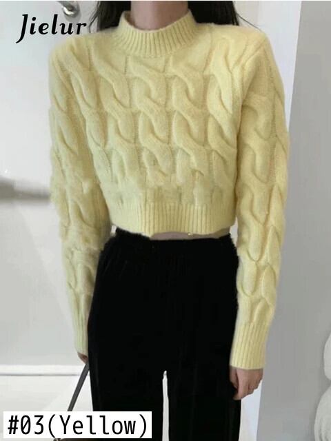送料無料 Jielur 秋冬イエローカーキセーター女性長袖スタイル作物セータージャンパー Knitedt プルオーバー ロング オータム 秋物 ウィンター 冬物 AE12188787873104213461