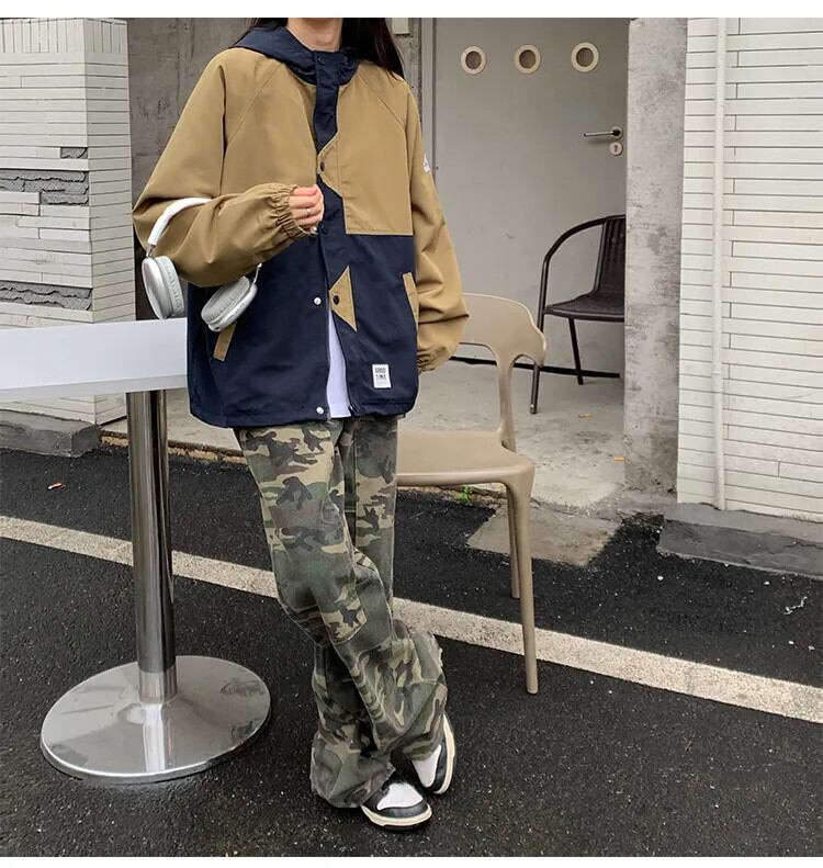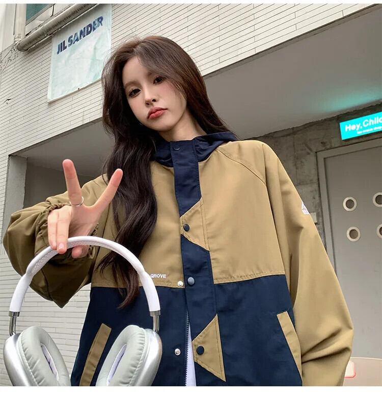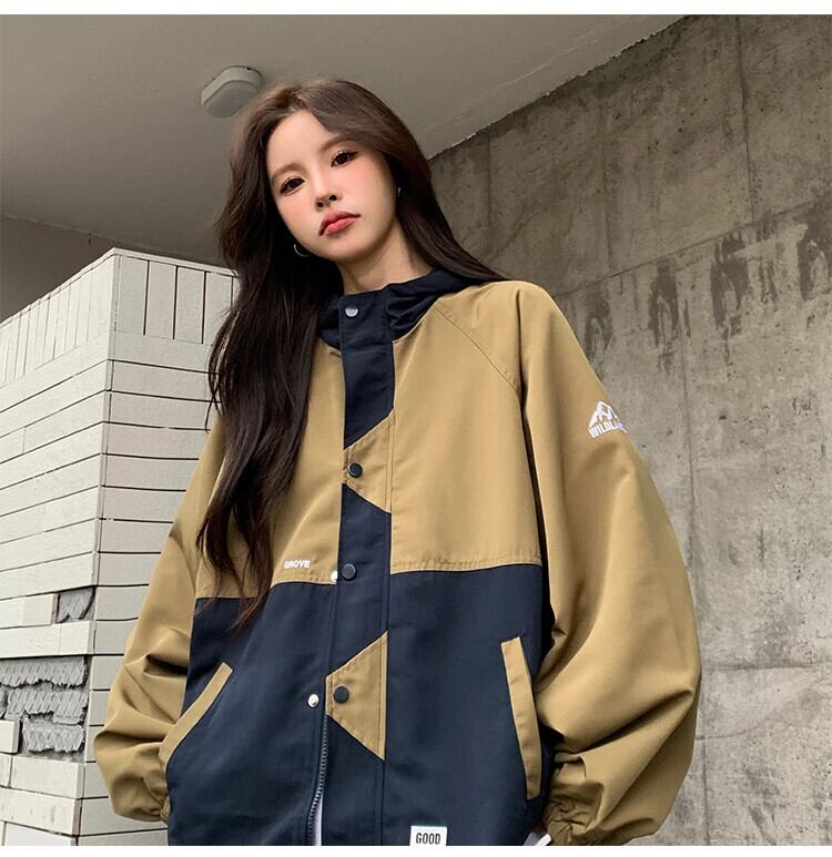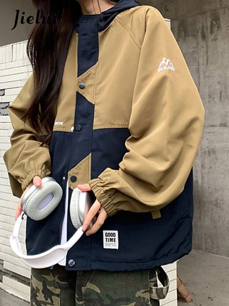 送料無料 Jielur 秋のコントラストカラースリムジャケット女性ルーズストリートシックなジャケットレトロインベーシックトップ女性 オータム 秋物 AE12188787865596630861