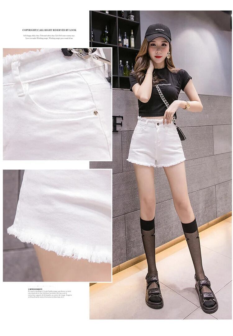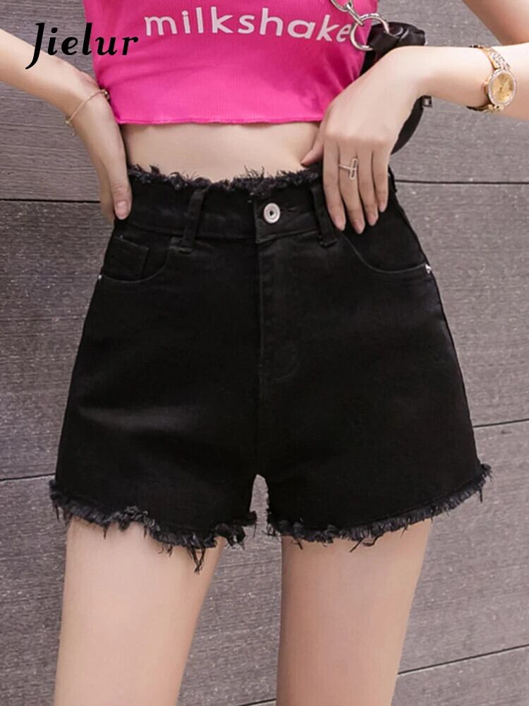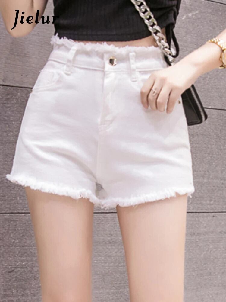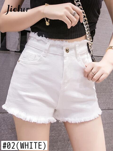 送料無料 Jielur 夏ソリッドカラースリムデニムショーツ女性ウエストショーツ黒、白ストリート女性のショーツ ホワイト ブラック サマー 夏物 ブルマー AE12188787856161572499