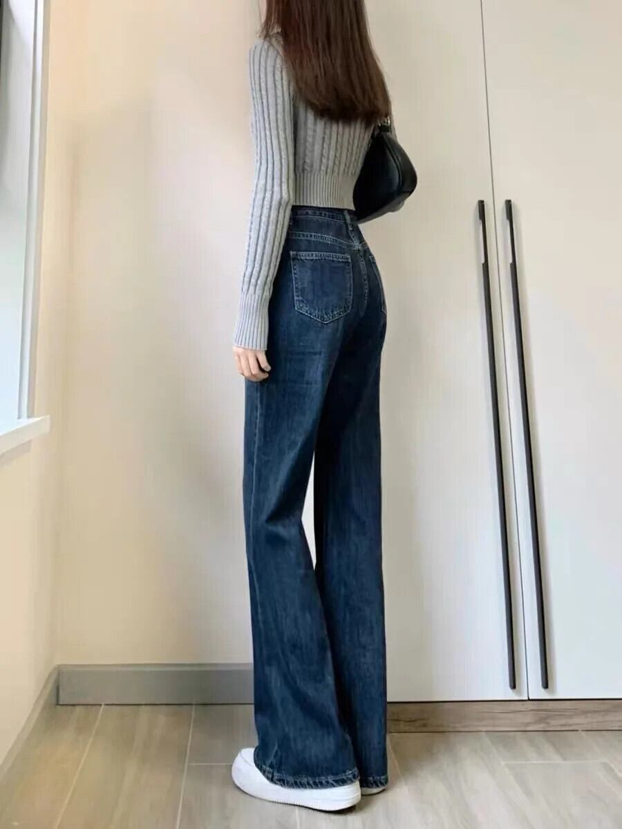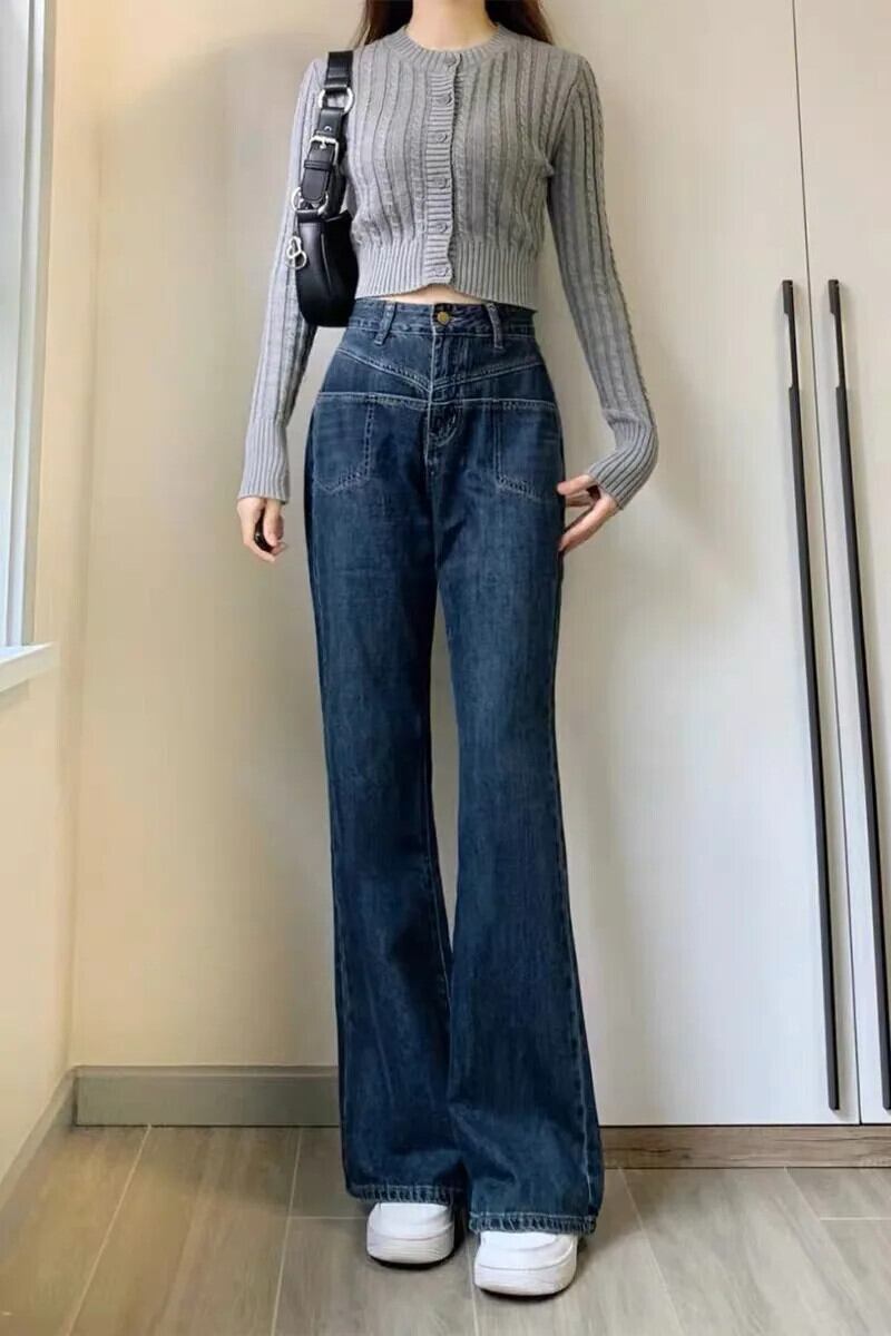 送料無料 Jielur ヴィンテージブルーフレアジーンズ女性の秋のウエストのズボンルーズスリム女性の女性のジーンズ S-XL オータム 秋物 ビンテージ AE12188787843738858084