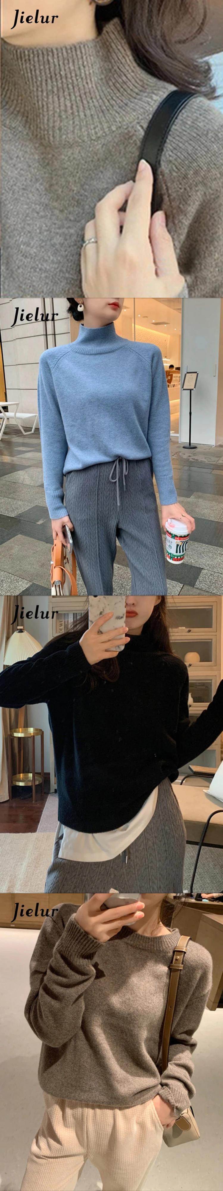 送料無料 Jielur レディース ウール セーター 秋冬 ルーズ タートルネック 長袖 ニット ボトリング トップ 基本セーター レディース ロング オータム 秋物 ウィンター 冬物 AE12188787871449796011