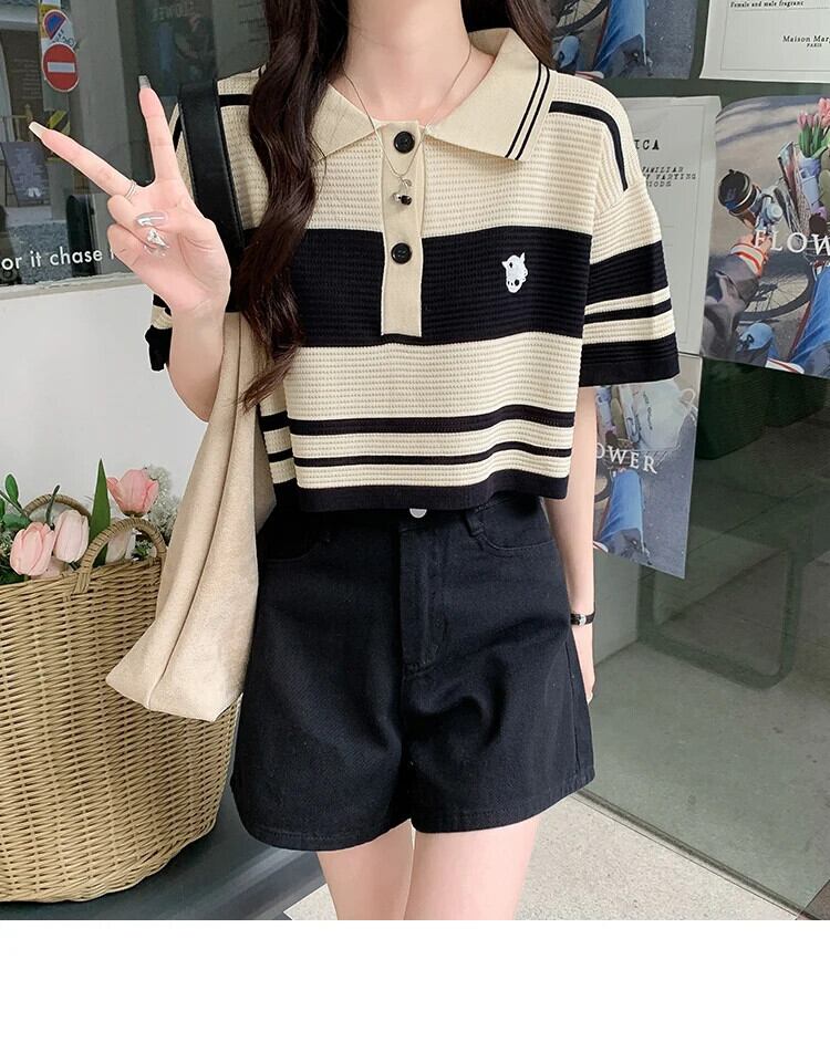 送料無料 Jielur 夏スリム甘い女性の Tシャツルーズストライプニット Tシャツ女性ピンクアプリコットグリーントップ 大人ガーリー スウィート キュート カジュアル サマー 夏物 AE12188787848754443184