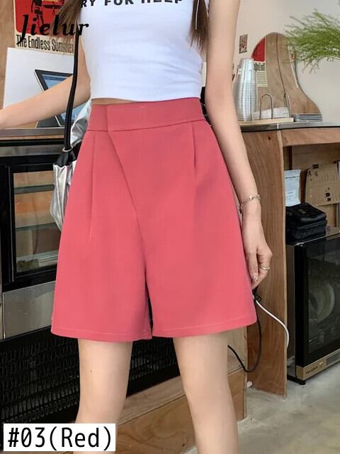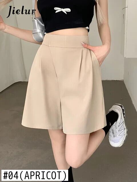 送料無料 Jielur 夏ウエストスリム女性のショーツシンプルなベーシックショーツ女性黒赤緑アプリコットシフォンショーツ レッド ブラック サマー 夏物 ブルマー グリーン AE12188787880790340101