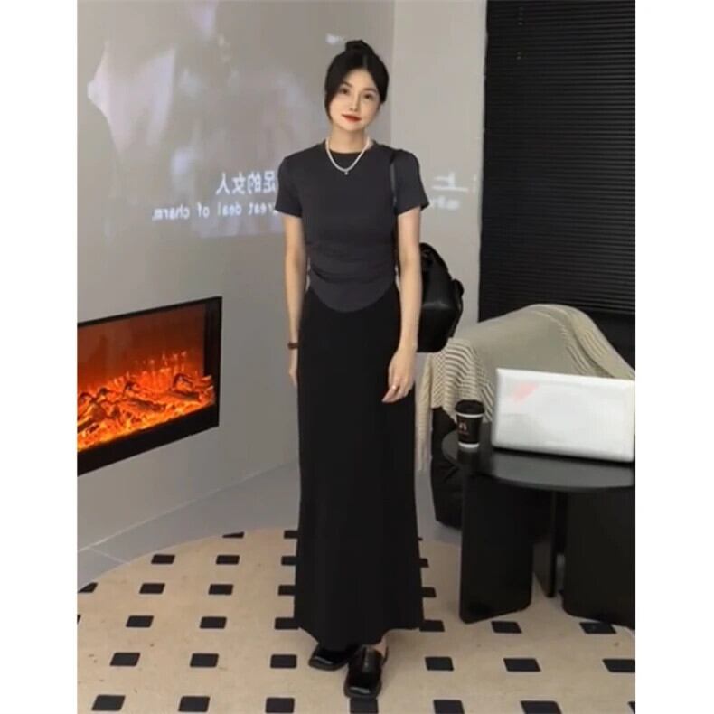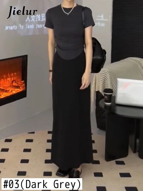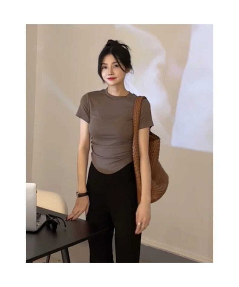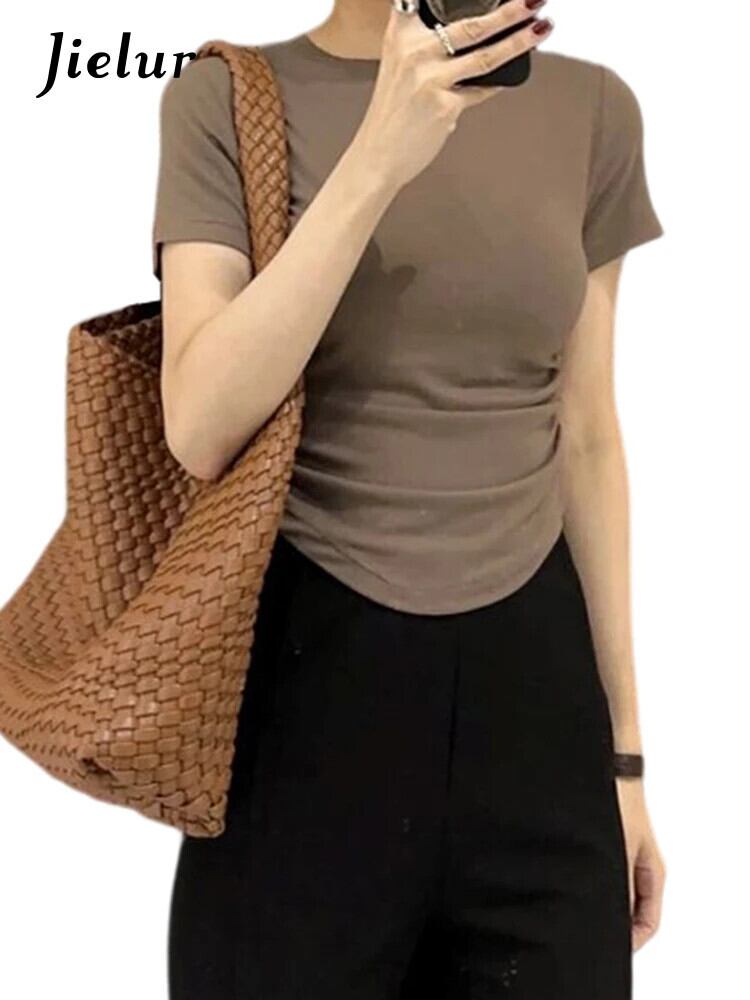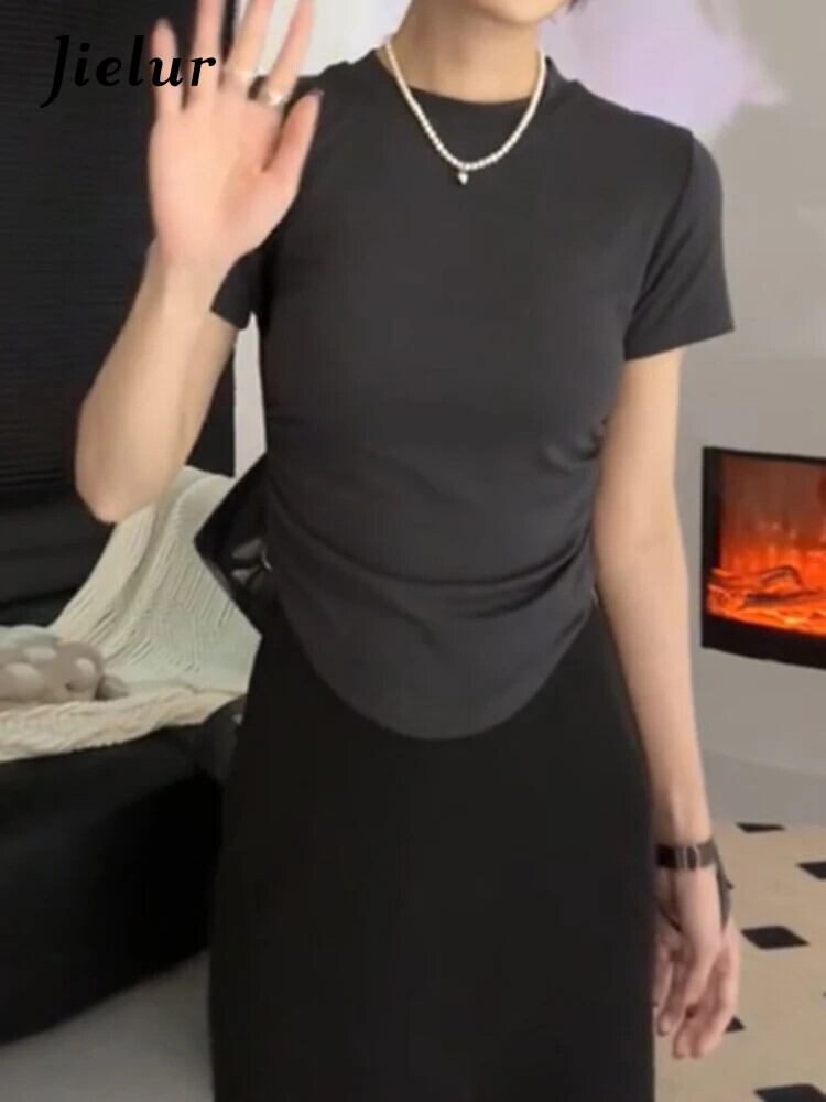 送料無料 Jielur 夏無地スリム女性の Tシャツシンプルなベーシック Tシャツ女性ライトコーヒーブラックグレー O ネックトップ サマー 夏物 Oネック ソリッドカラー AE12188787852548702021