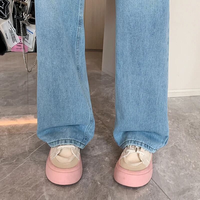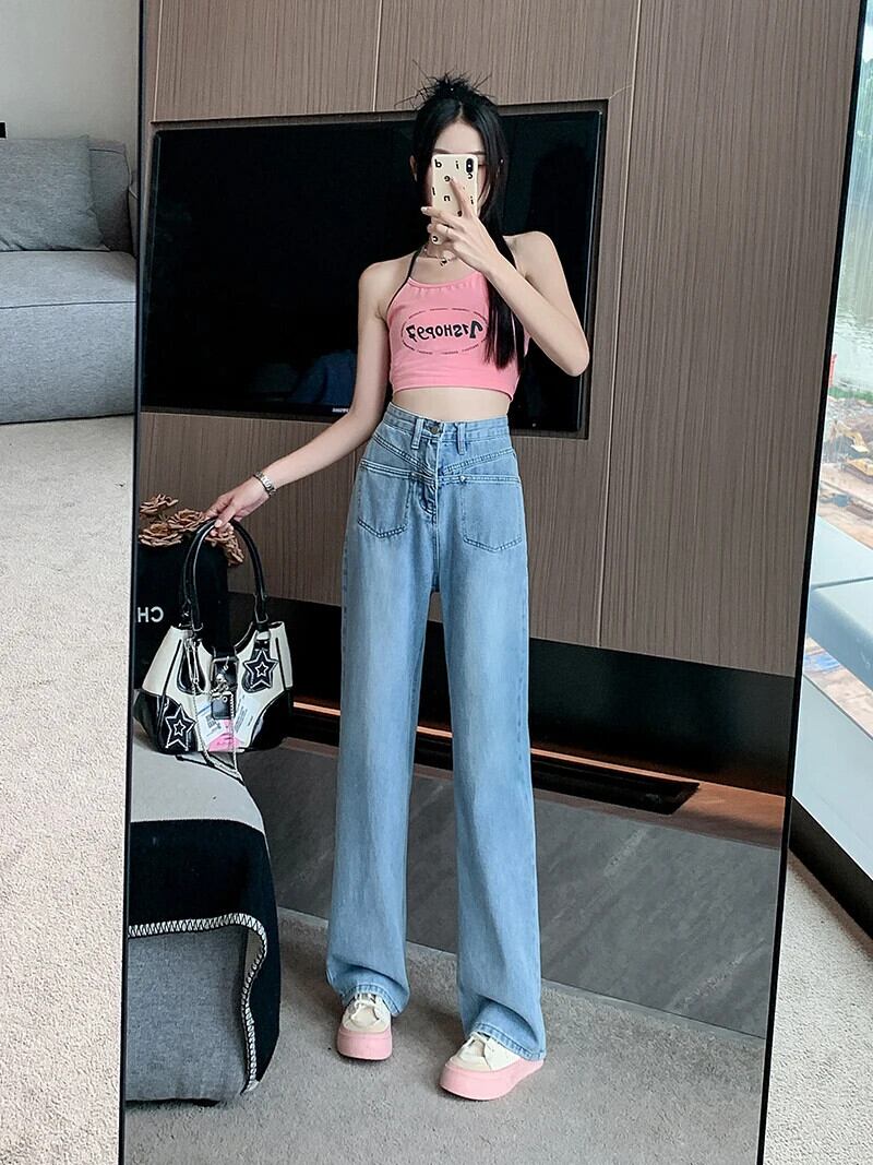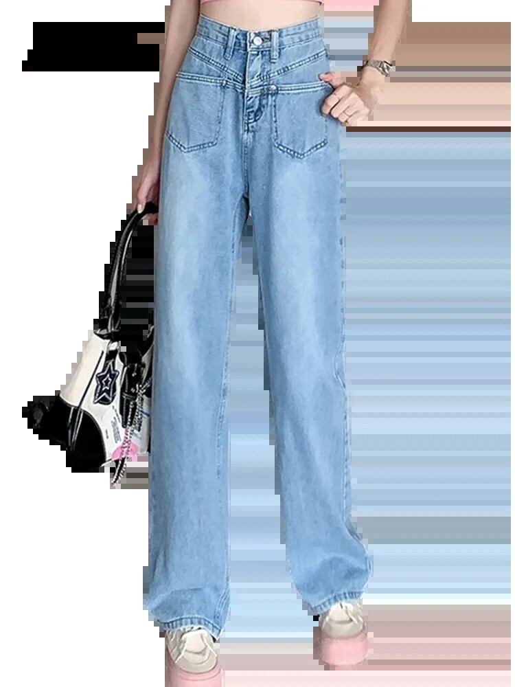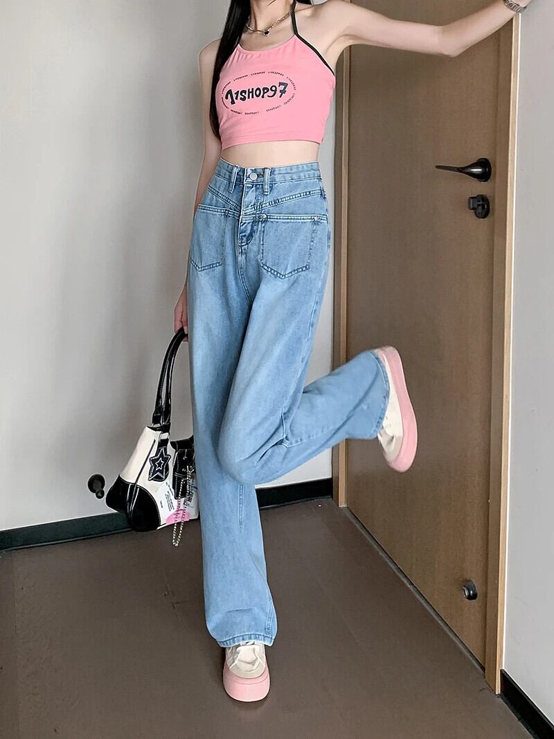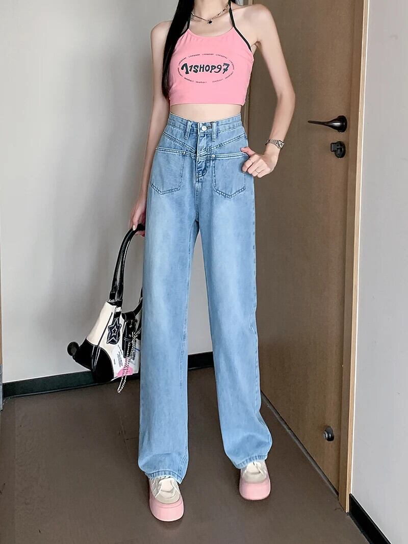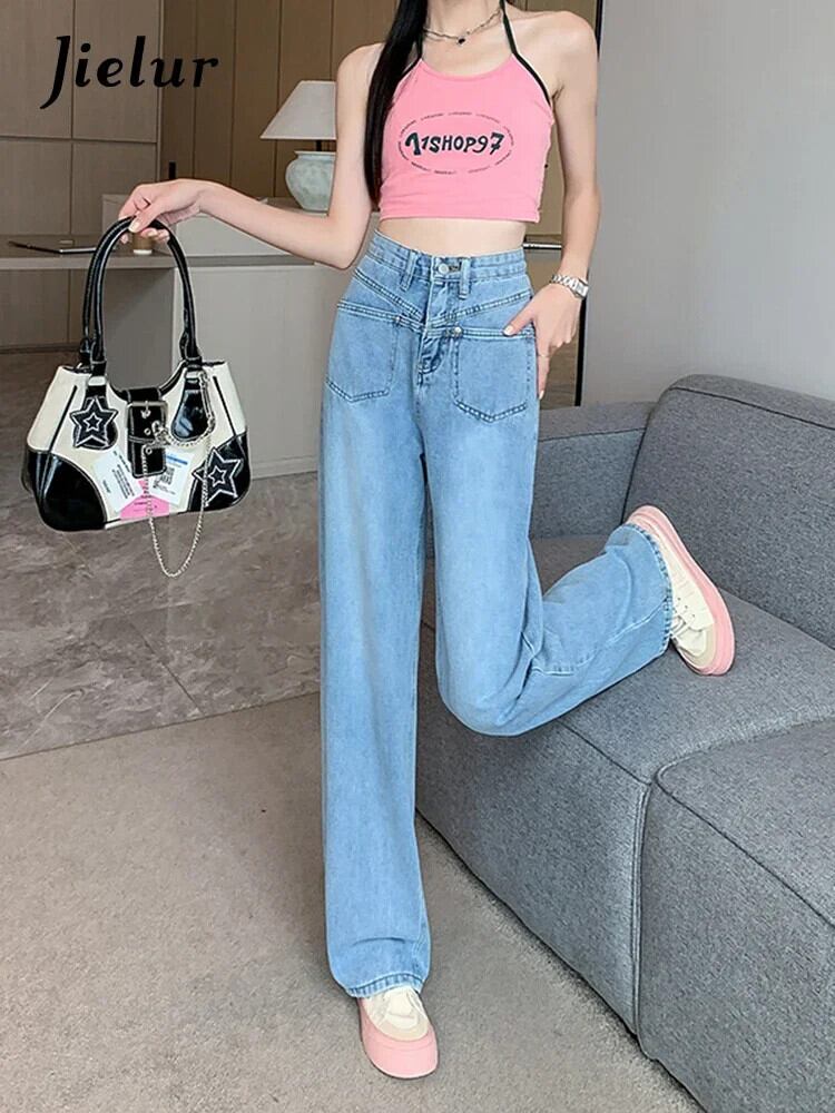 送料無料 Jielur ルーズジーンズ女性ライトブルーワイドレッグジーンズ夏のウエストデニムパンツ Y2k スタイルヴィンテージジーンズ サマー 夏物 ビンテージ AE12188787862932114024