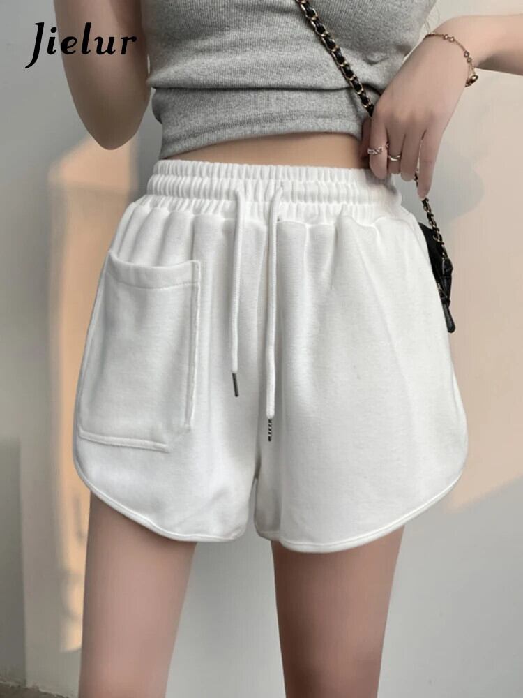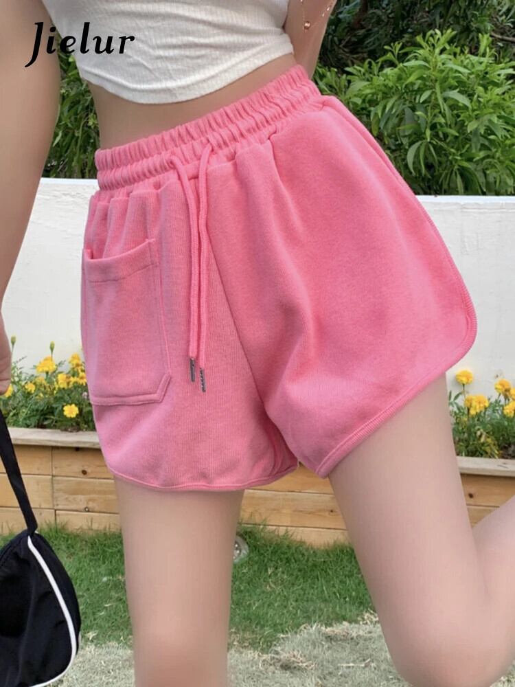 送料無料 Jielur ヤングソリッドカラースポーツショートパンツサマーショーツ女性ポケット巾着弾性ウエストショーツ エラスティック 伸縮 夏物 ブルマー AE12188787822811776138