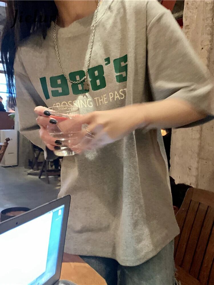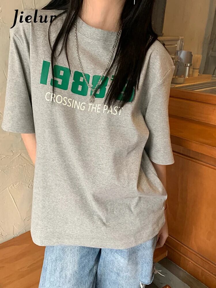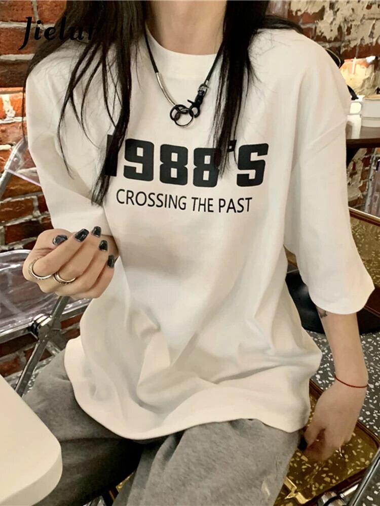 送料無料 Jielur スタイル女性 Tシャツレタープリント O ネックルーズコットン Tシャツガールズストリート原宿 BF トップス白 ホワイト かわいい Oネック AE12188787819348578403