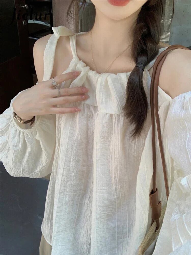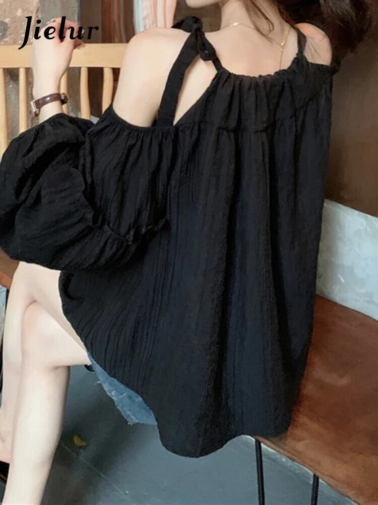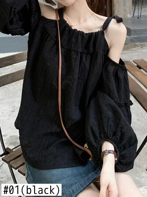送料無料 Jielur 夏甘いソリッドカラーの女性ブラウスシックなブラウス女性アプリコット黒ルーズトップ ブラック 大人ガーリー スウィート キュート カジュアル サマー 夏物 AE12188787830828010260