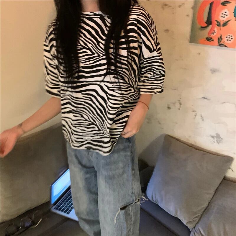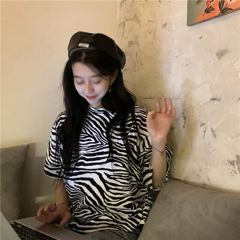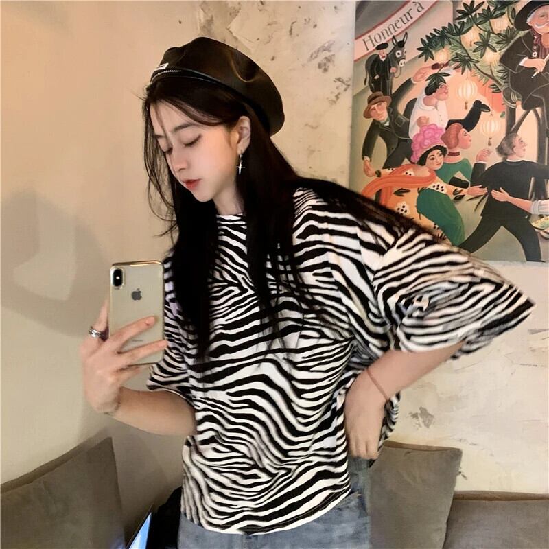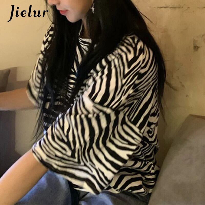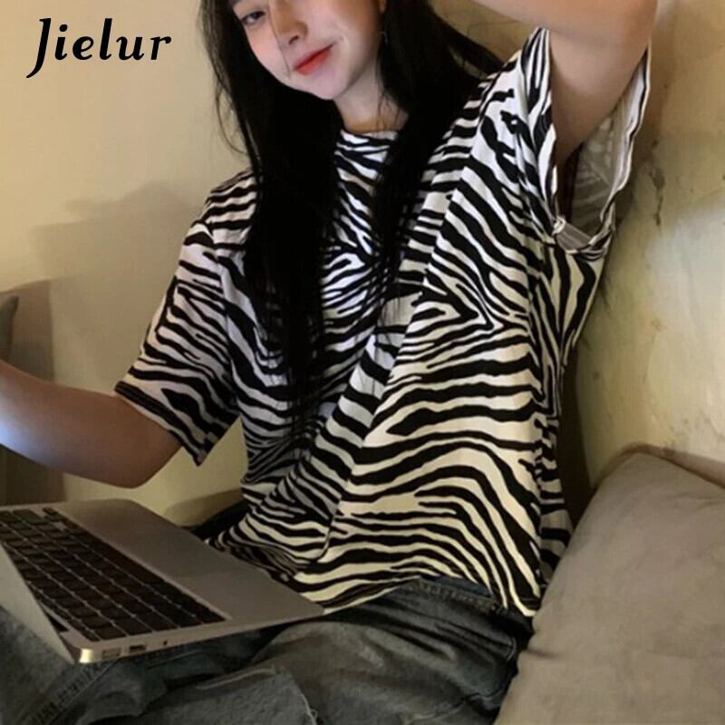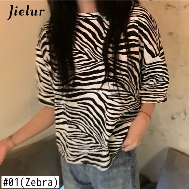 送料無料 Jielur スタイルゼブラプリント Tシャツ女性半袖 Tシャツ夏の Tシャツトップスヒップスター M-XL ショート ハーフスリーブ サマー 夏物 AE12188787857301313206