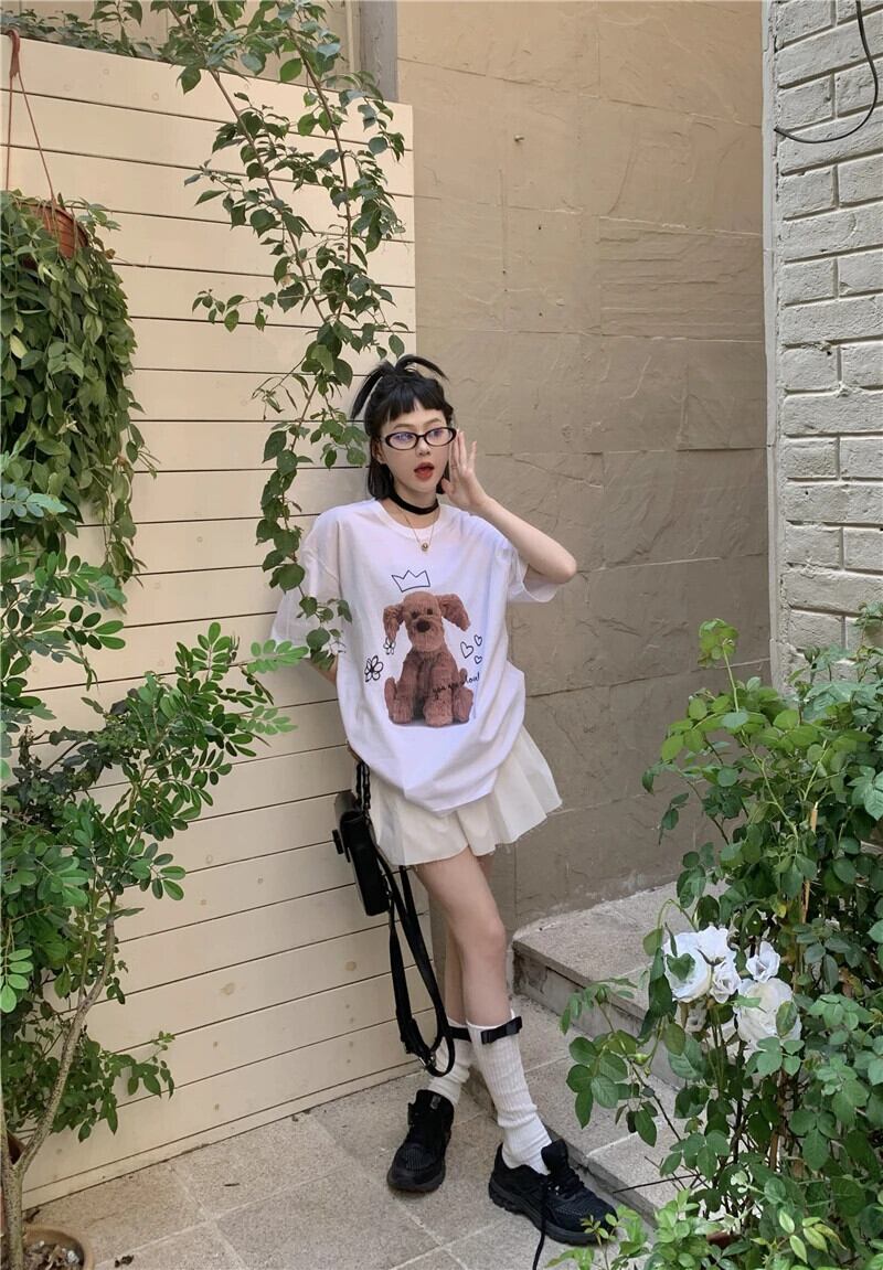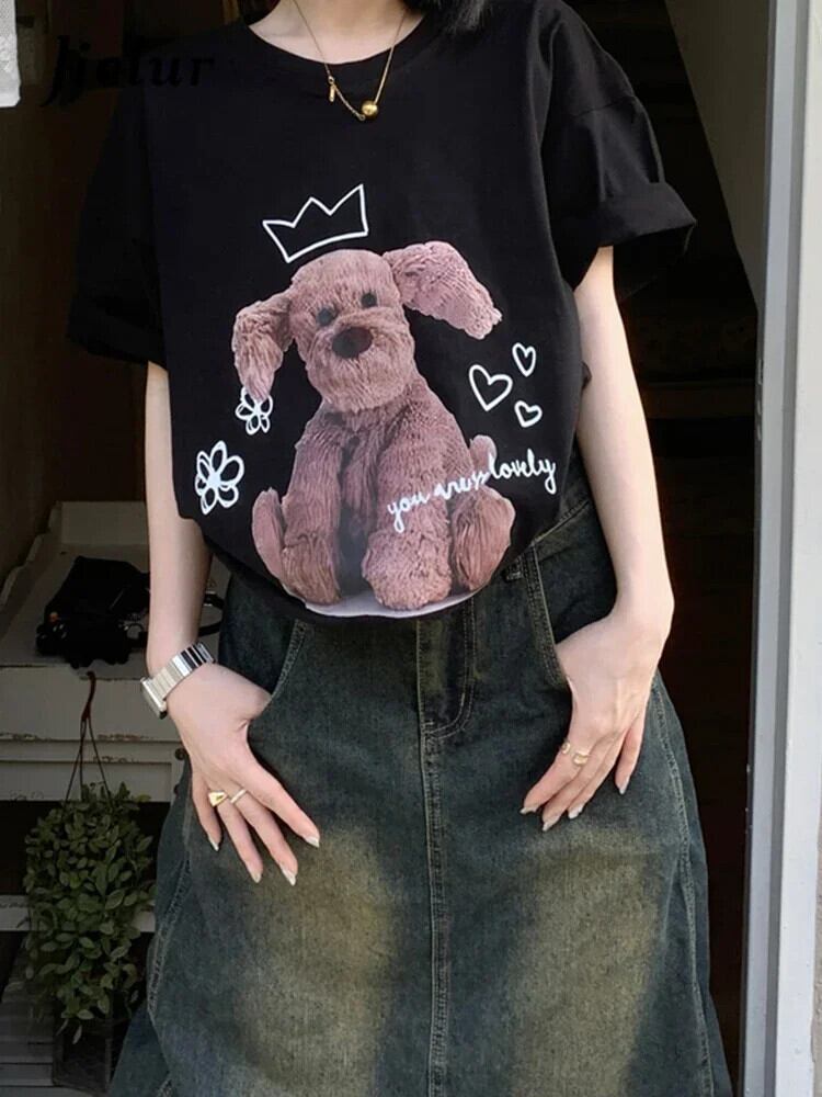 送料無料 Jielur 夏インスリム女性の Tシャツベーシックヤングルーズシック Tシャツ白黒 O ネックストリートトップ ホワイト ブラック サマー 夏物 Oネック AE1218878788940192233