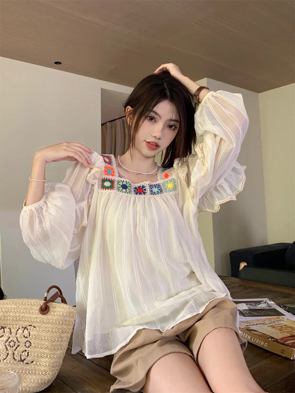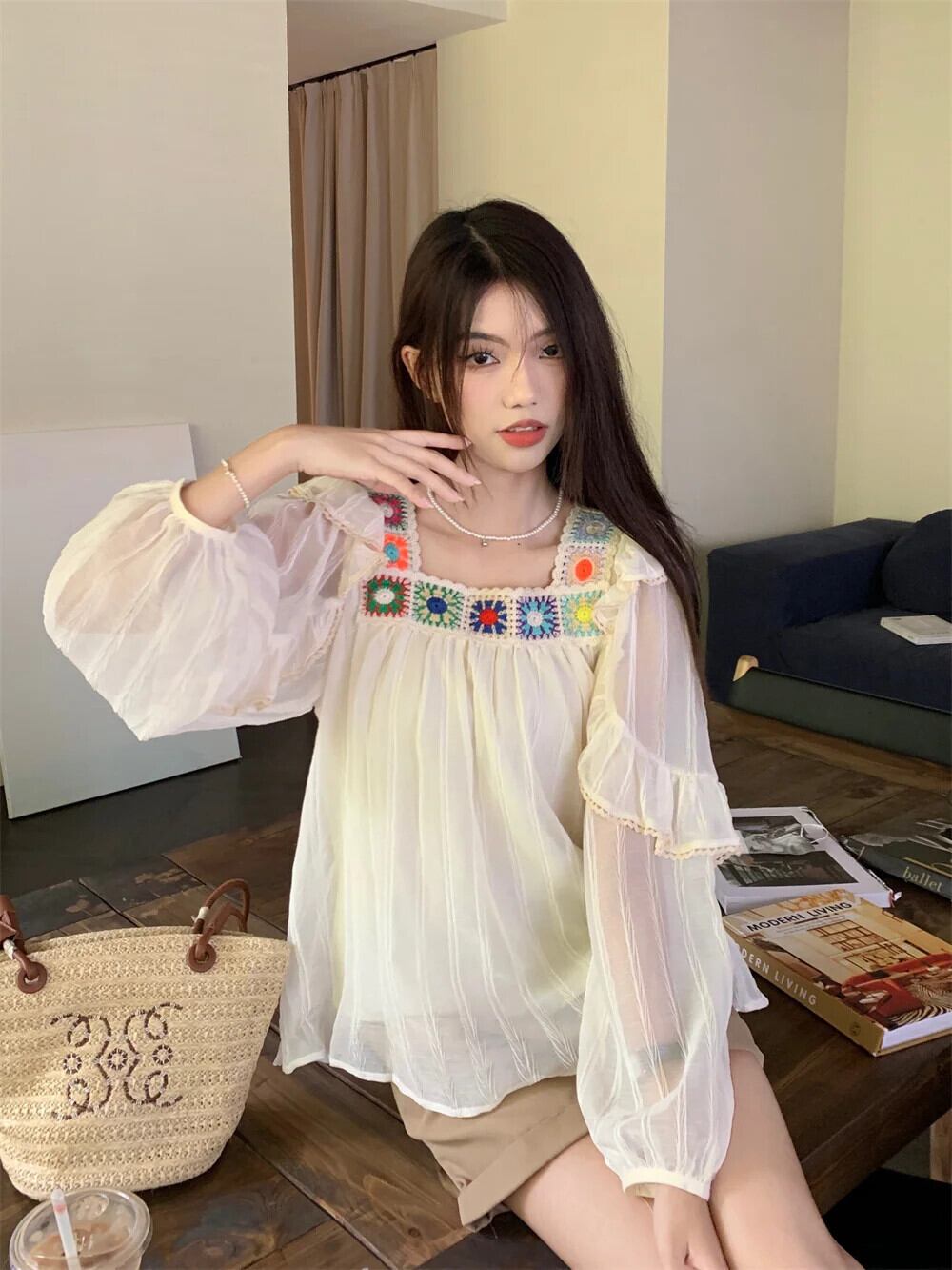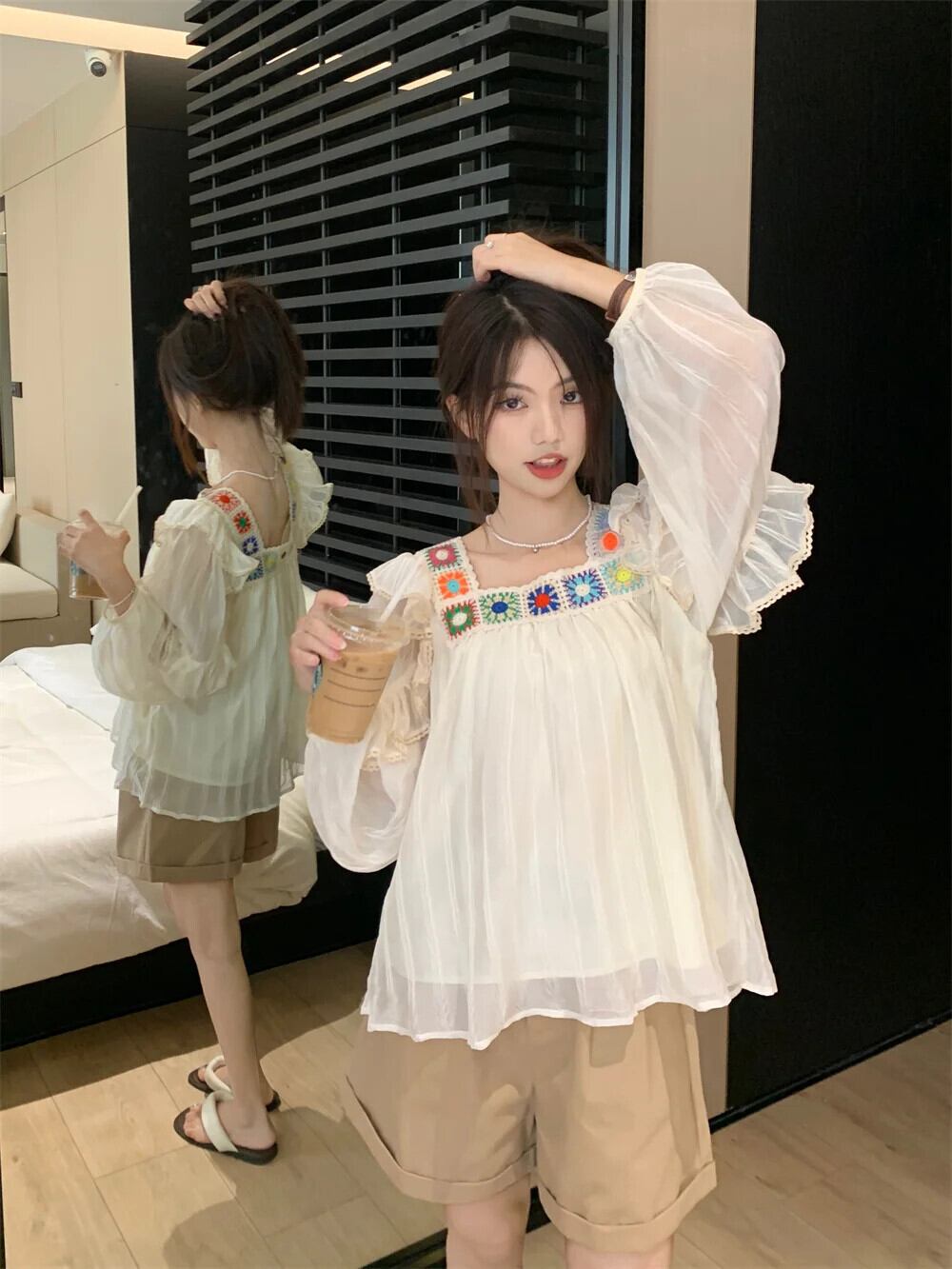 送料無料 Jielur ツーピース夏スリム女性ブラウスウエストスリム無地ショーツアプリコットスクエアネック長袖トップ ロング サマー 夏物 ブルマー ソリッドカラー スクウェア AE1218878785402351482