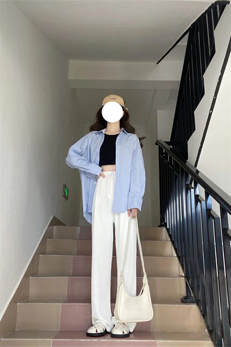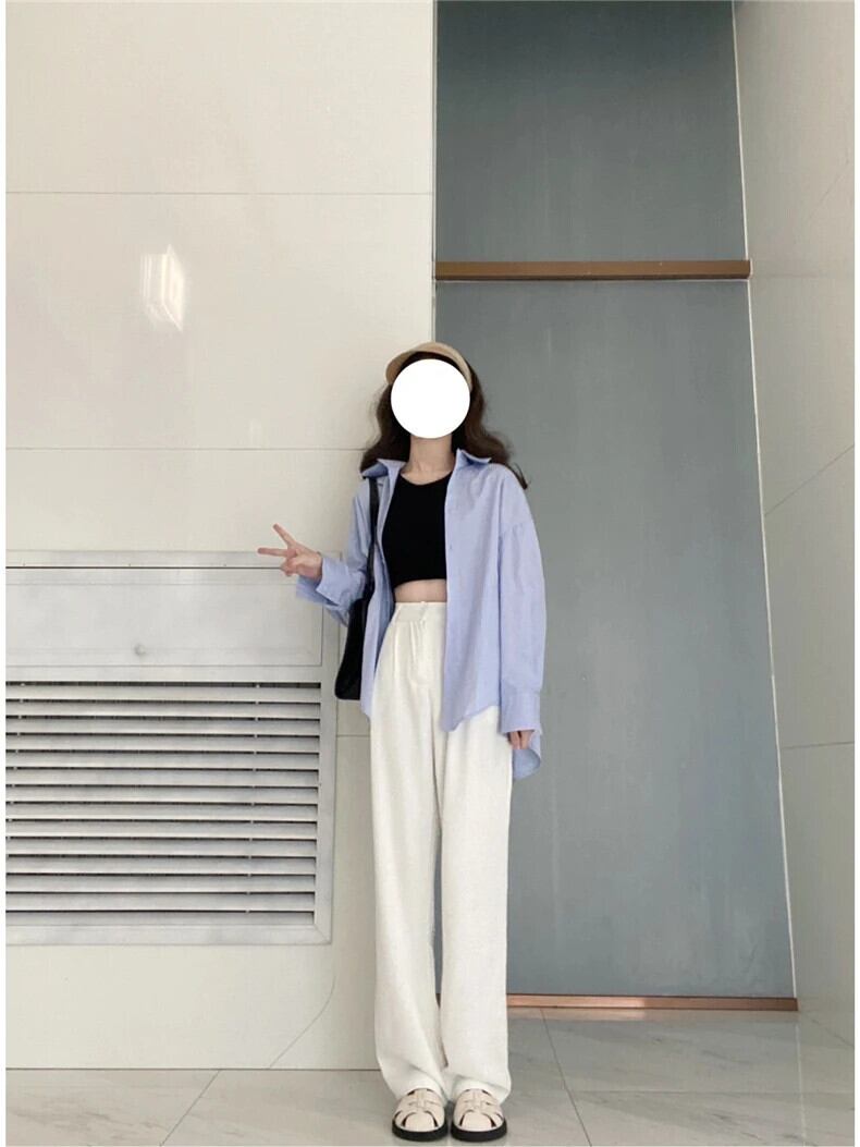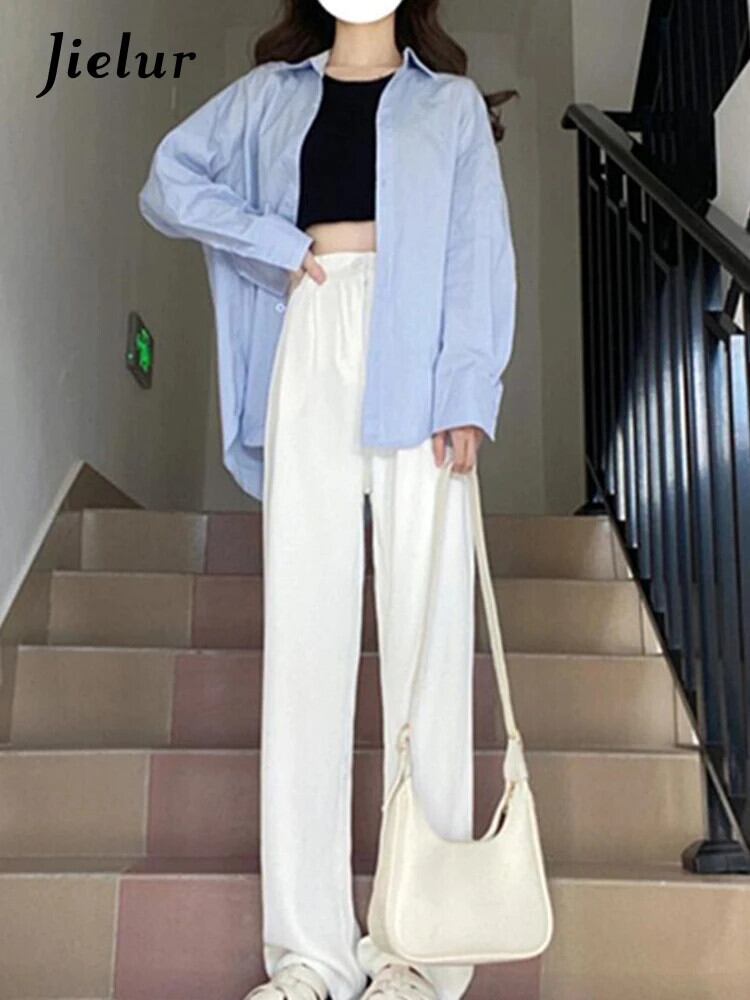 送料無料 Jielur スリムソリッドカラーの女性シャツシンプルなベーシック春シャツブルールーズストリート長袖女性トップ ロング スプリング 春物 AE12188787856936000142