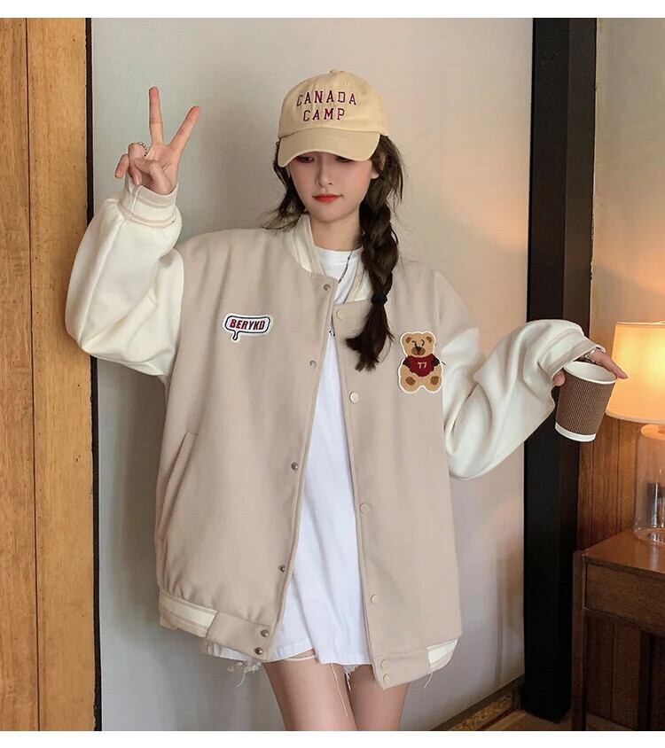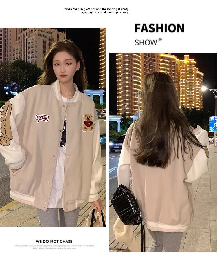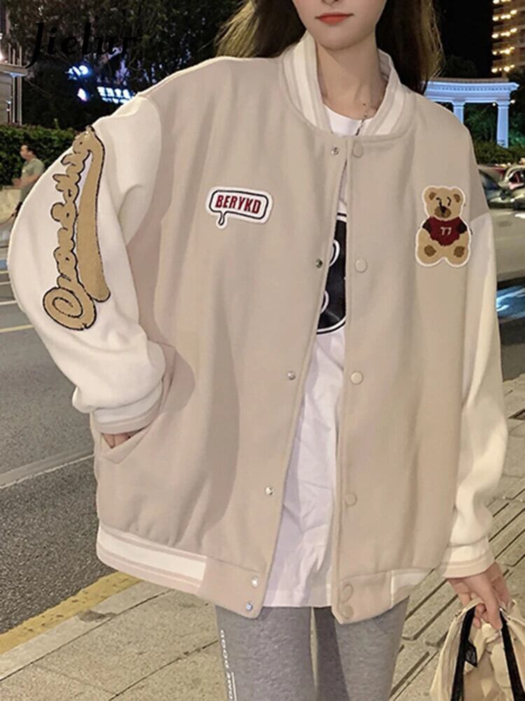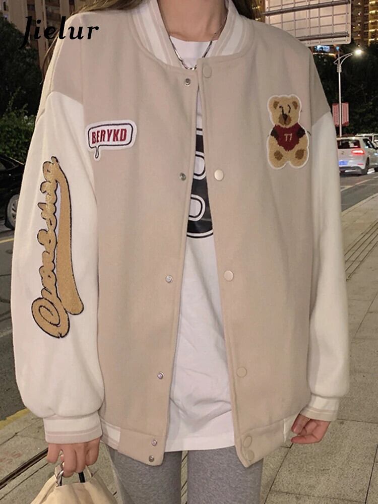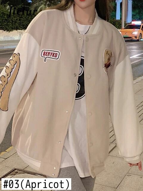 送料無料 Jielur 秋のレトロなルーズストリートジャケット女性アメリカンスリムジャケットアプリコットブラックブルーシックなトップ女性 オータム 秋物 AE12188787881708808358