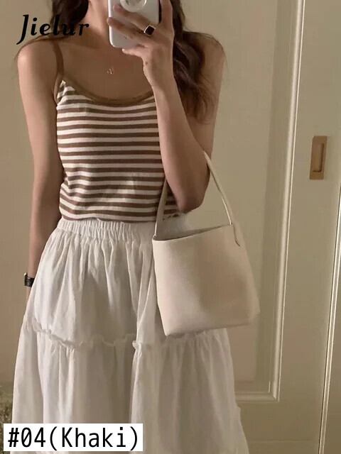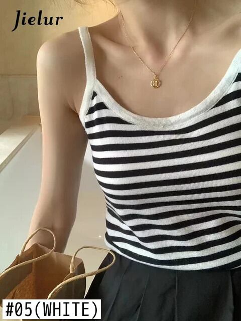 送料無料 Jielur 夏スリムニット女性のキャミソールベーシックフリルストラップレスブラックホワイトブルーカーキグリーンキャミソール女性 ラッフル サマー 夏物 AE12188787845795030169