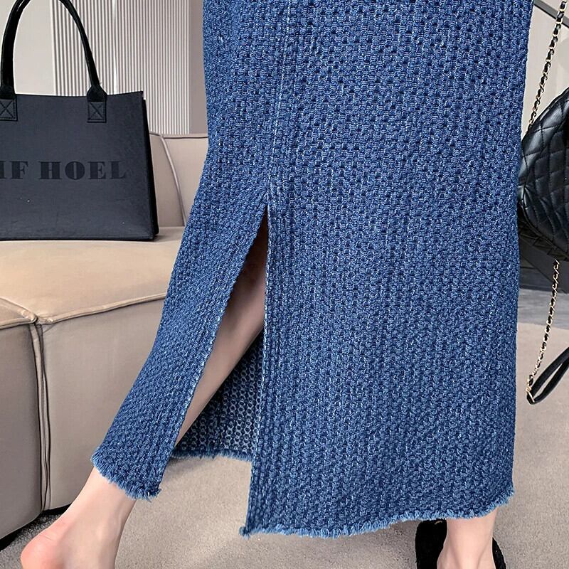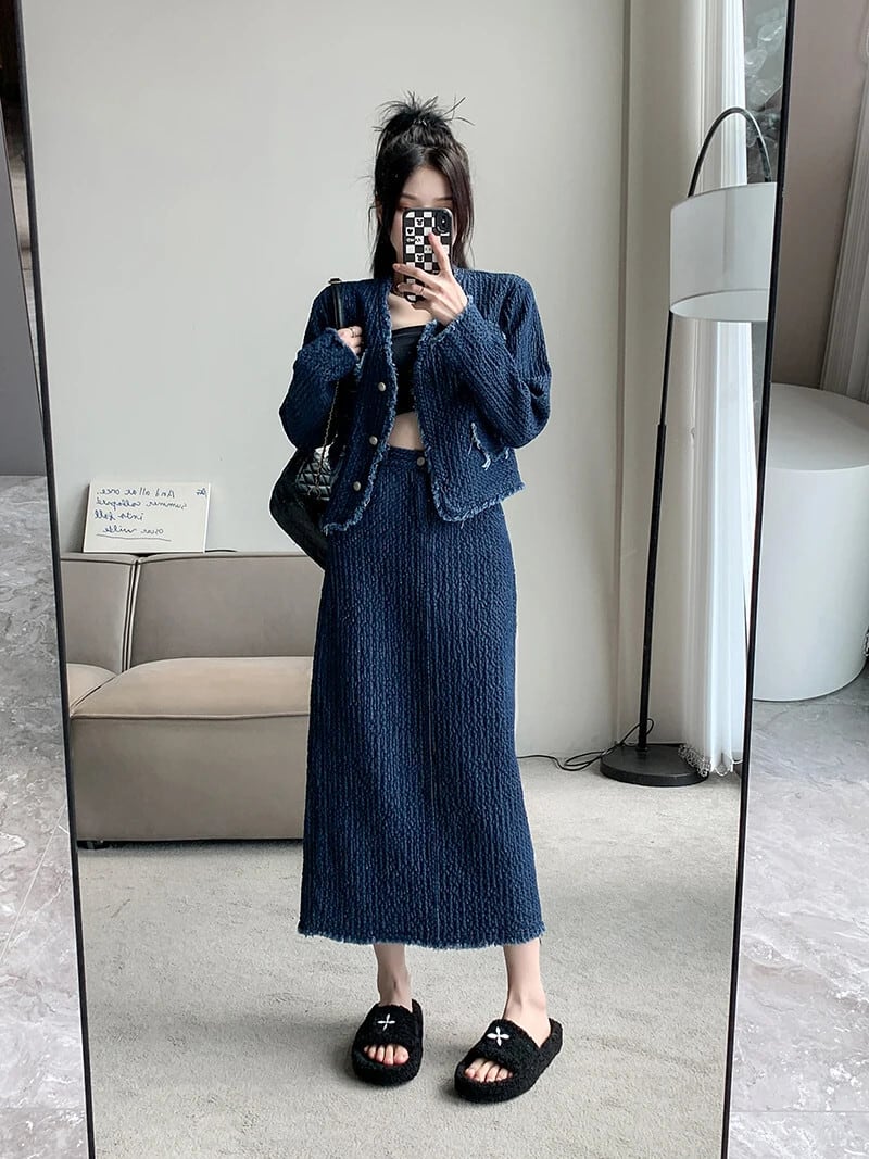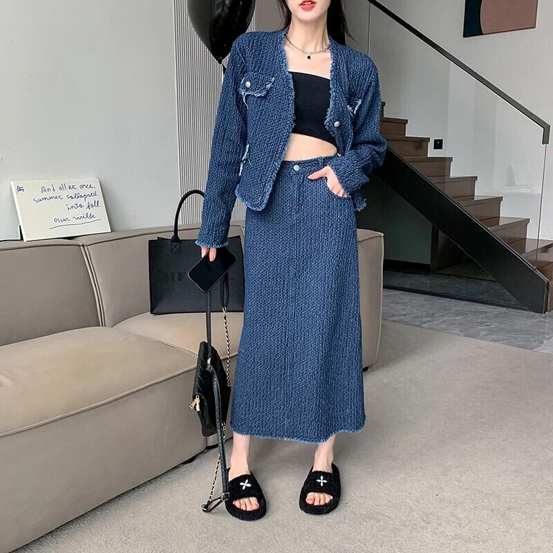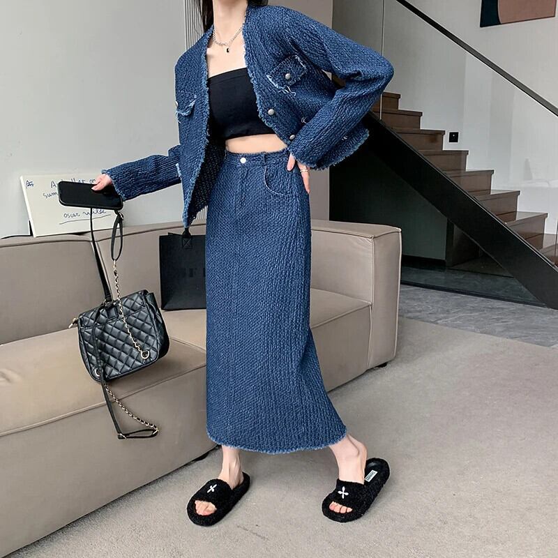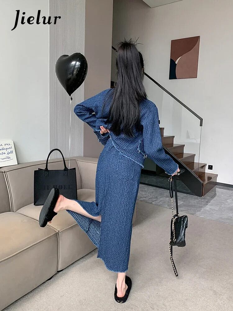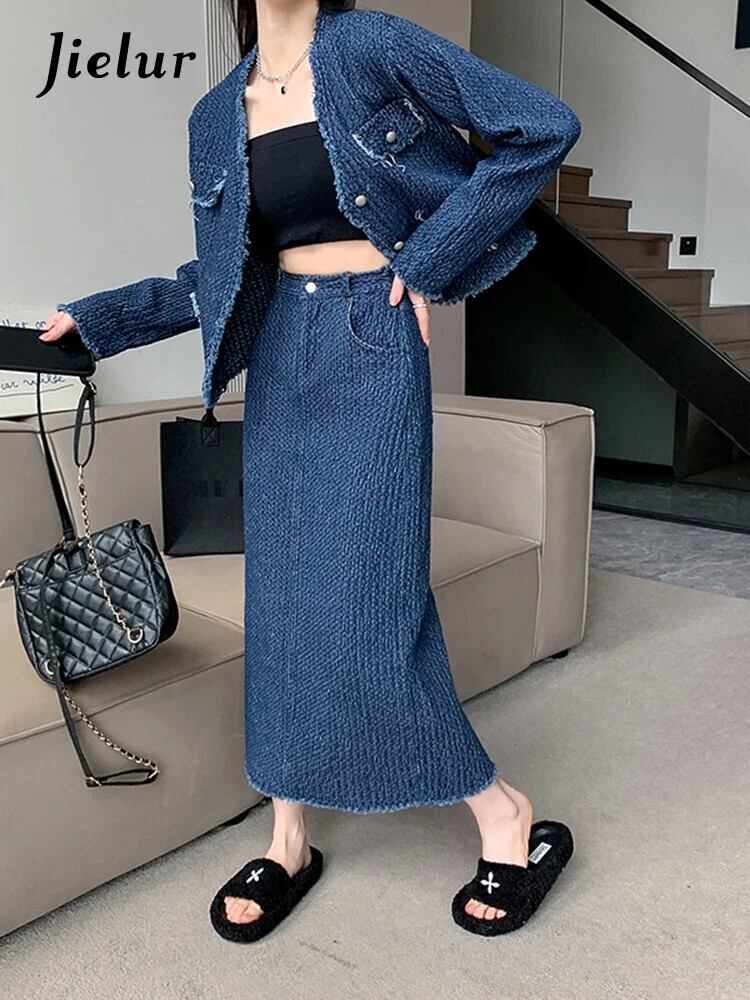 送料無料 Jielur ツーピース夏ヴィンテージデニム女性シャツルーズスリム長袖シャツ女性ブルーストリートスカート ロング サマー 夏物 ビンテージ AE12188787862448277718