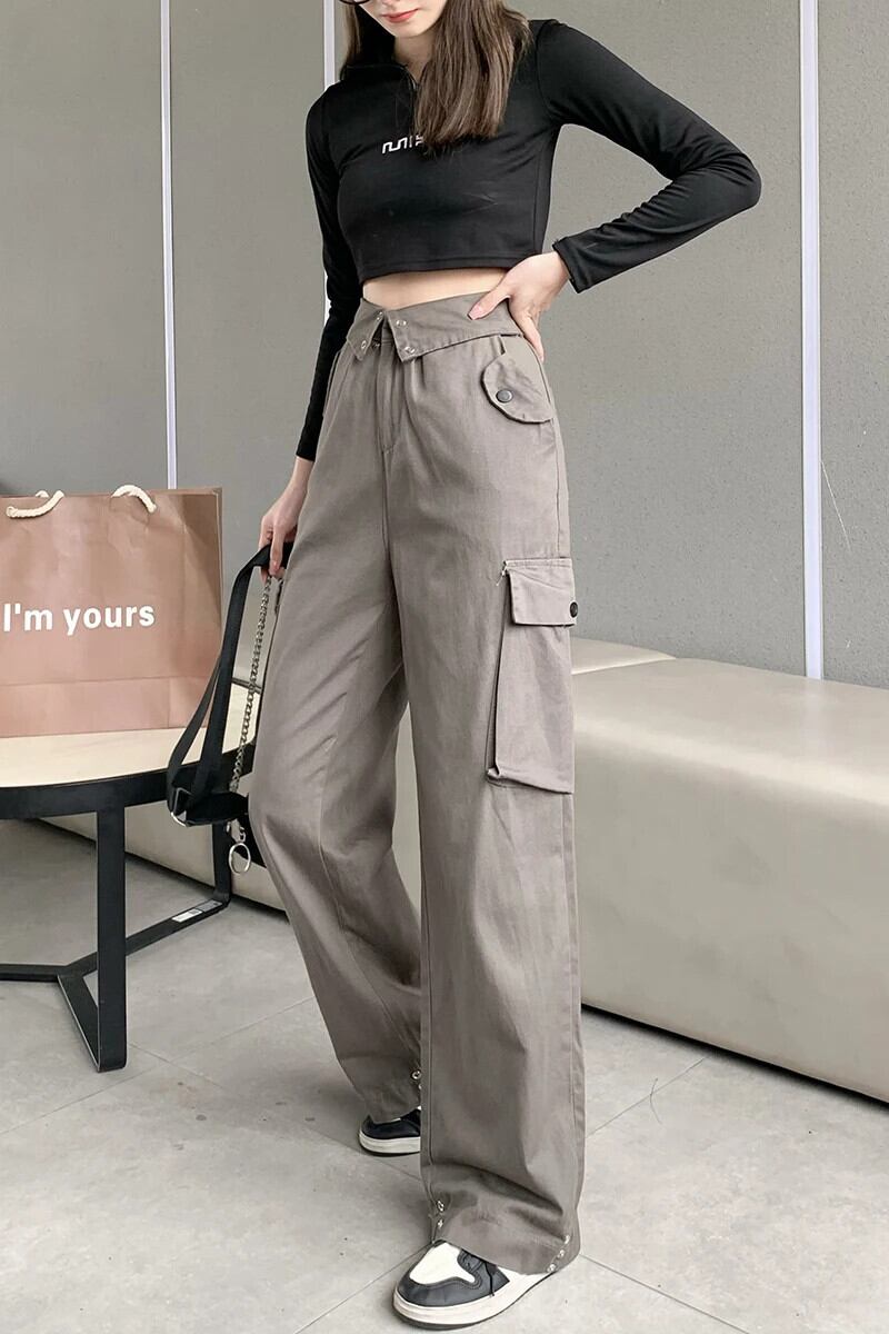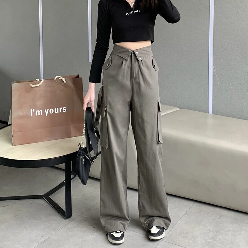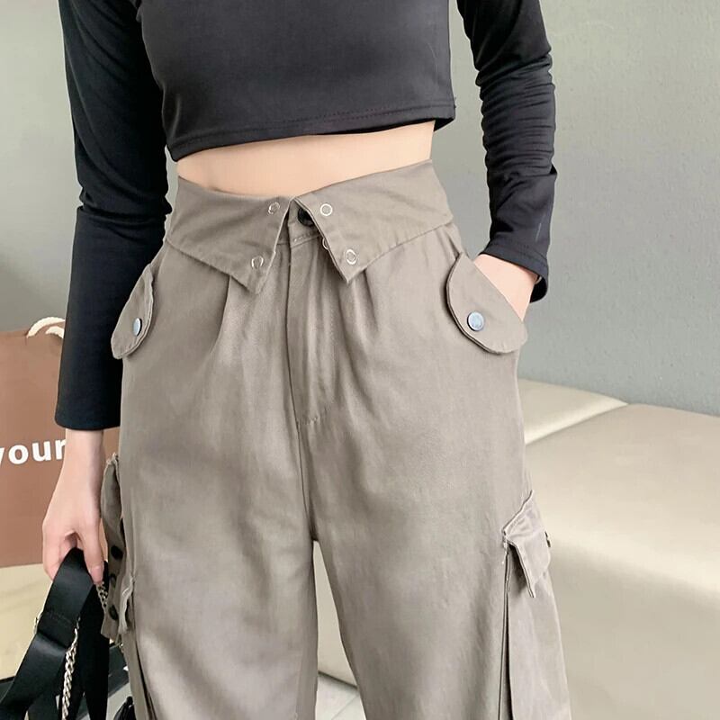 送料無料 Jielur アメリカンストリートシンプルなカーゴパンツルーズスリム女性ストレートパンツグレーウエスト女性パンツ AE12188787825561260321