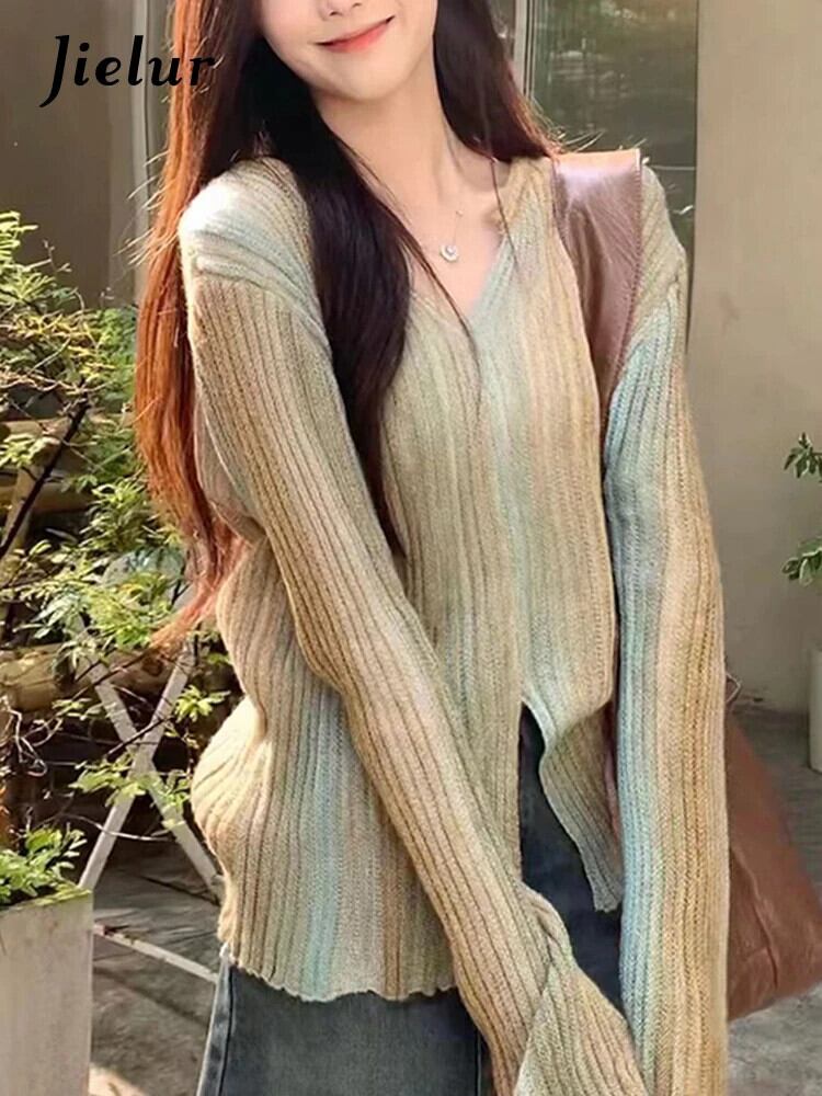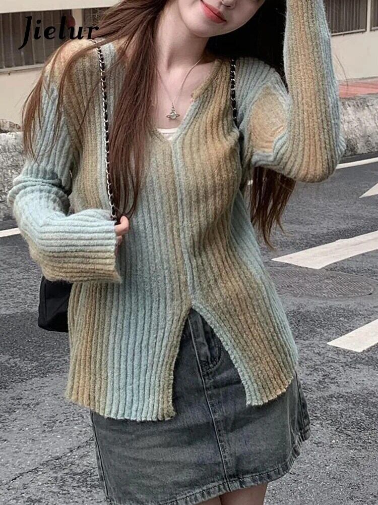 送料無料 Jieur Ins 秋スリム女性プルオーバー V ネックニットプルオーバー女性グリーングレーストリート Chicly トップ オータム 秋物 Vネック AE12188787889080674449
