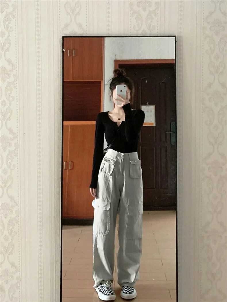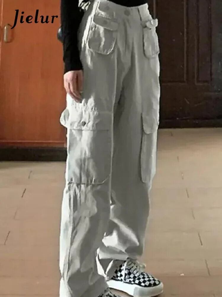 送料無料 Jielur 夏ストリートスリムパンツ女性ルーズスリムカーゴパンツシックなウエストシンプルなワイドレッグパンツ サマー 夏物 ワイドパンツ AE12188787851590413592