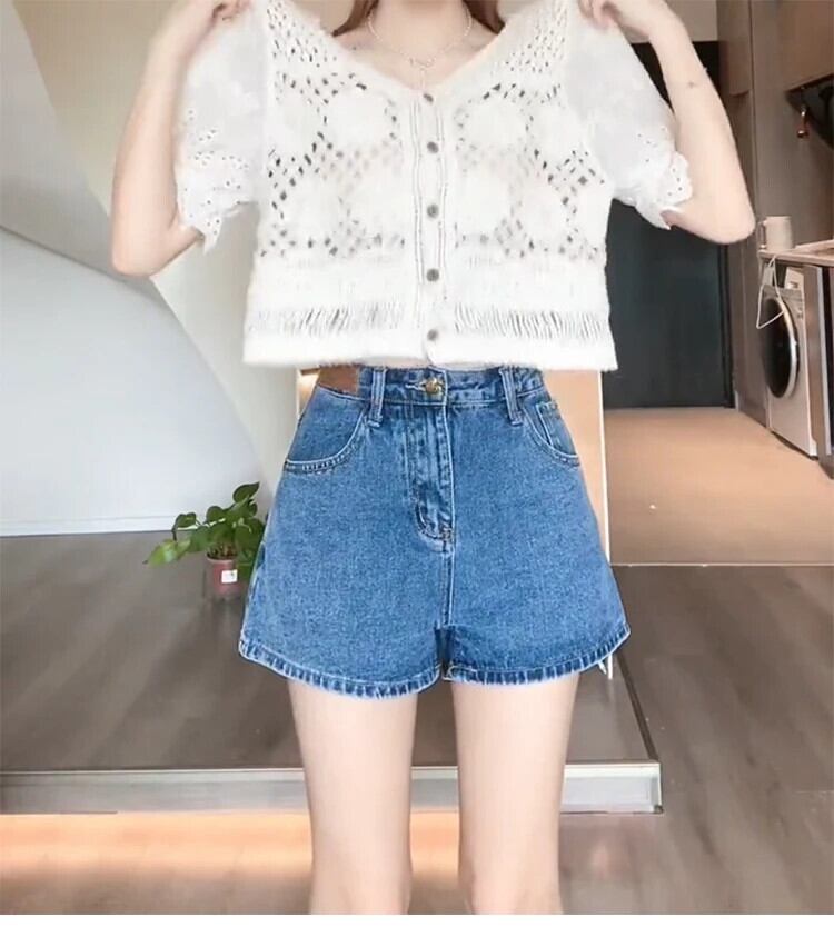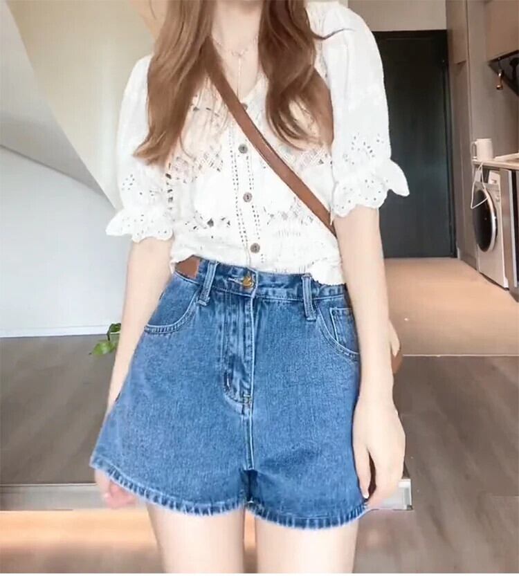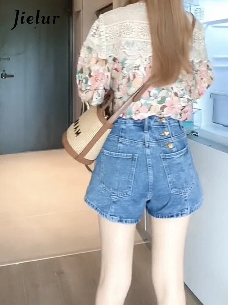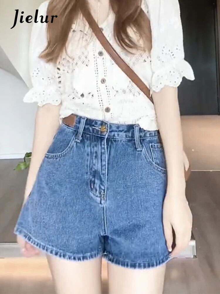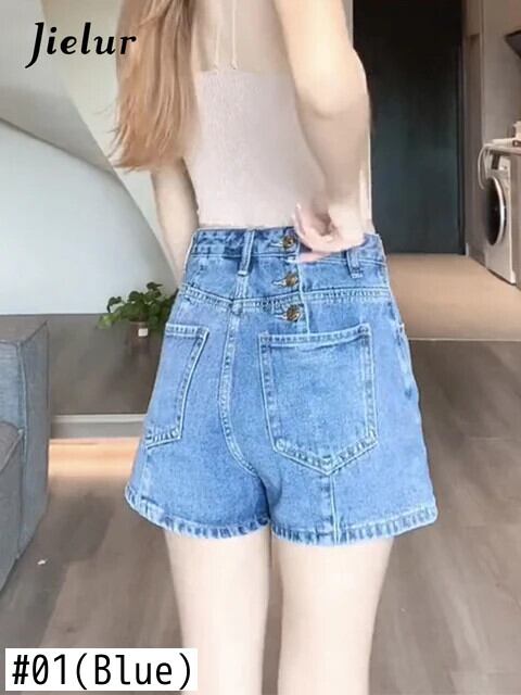 送料無料 Jielur 夏ルーズウエストデニム女性のショーツスリムレジャーシンプルな女性のショーツストリートブルーベーシックショーツ サマー 夏物 ブルマー AE12188787875325688995