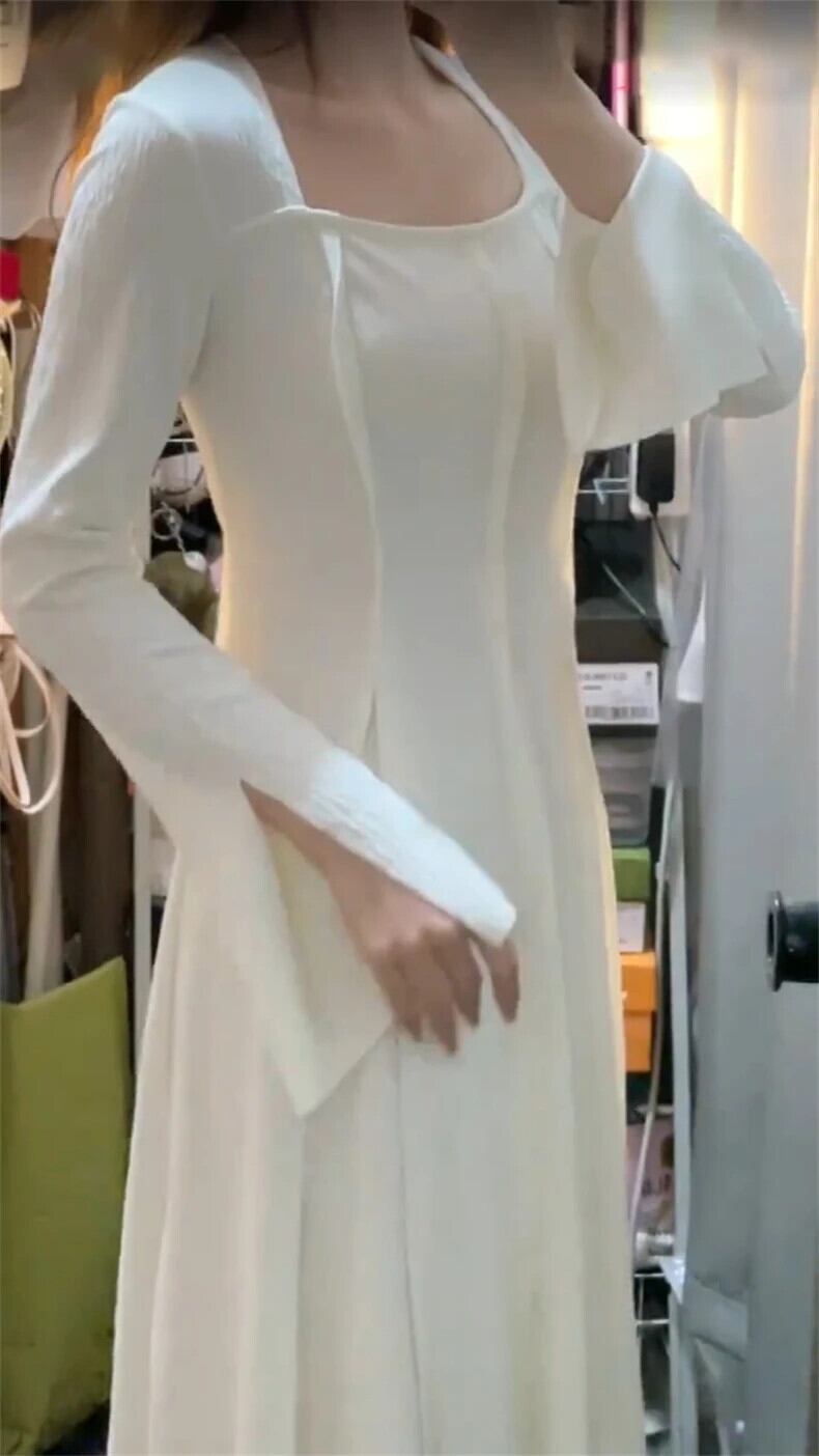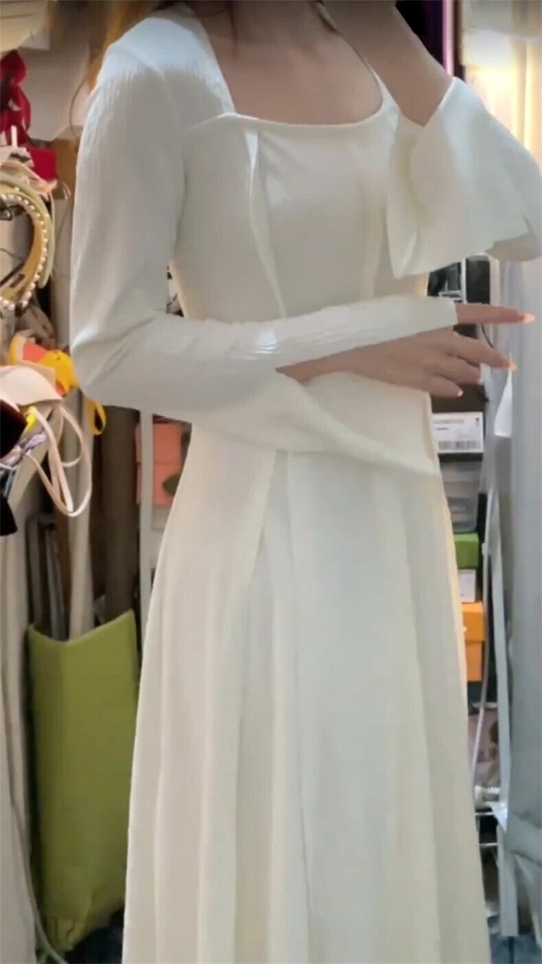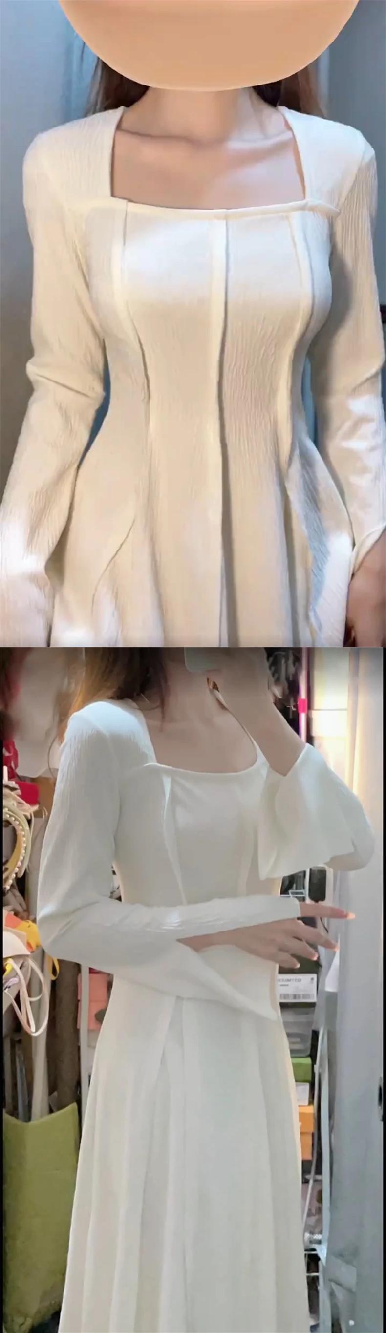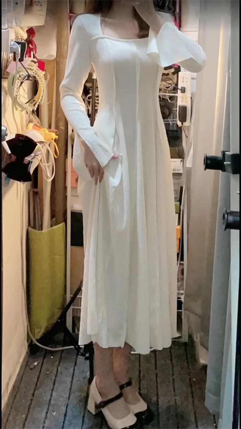 送料無料 Jielur 秋無地スリム女性ドレスシンプルなベーシックドレス女性甘い長袖ドレス ロング 大人ガーリー スウィート キュート カジュアル オータム 秋物 ソリッドカラー AE1218878787574517452
