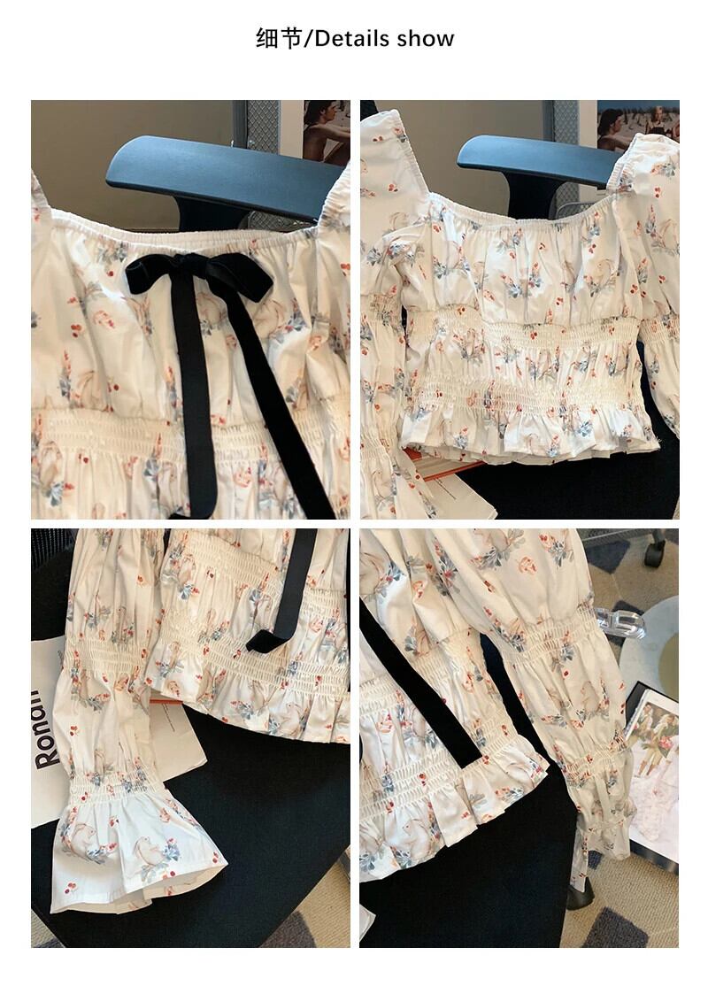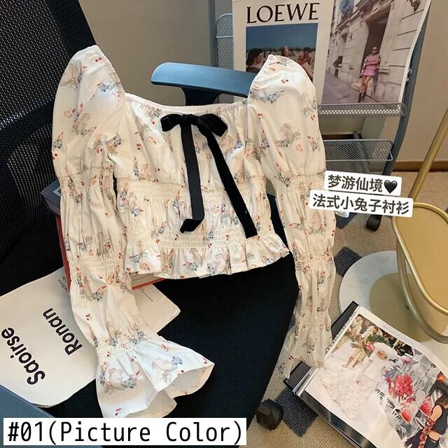 送料無料 Jielur 夏フランス女性ブラウス Bownot スクエアネックパフスリーブブラウス甘いルーズ女性トップ リボン 大人ガーリー スウィート キュート カジュアル サマー 夏物 スクウェア AE12188787860306107287