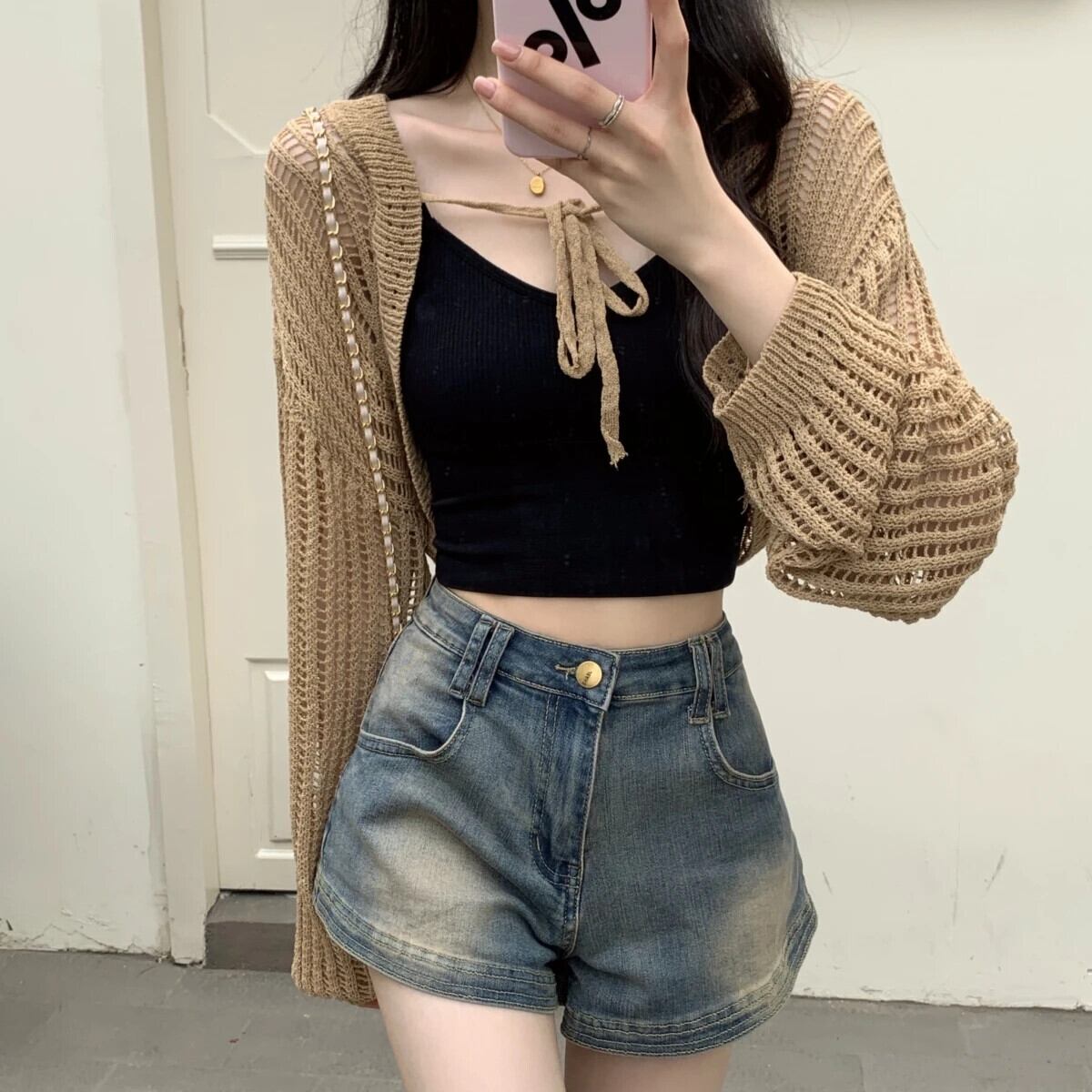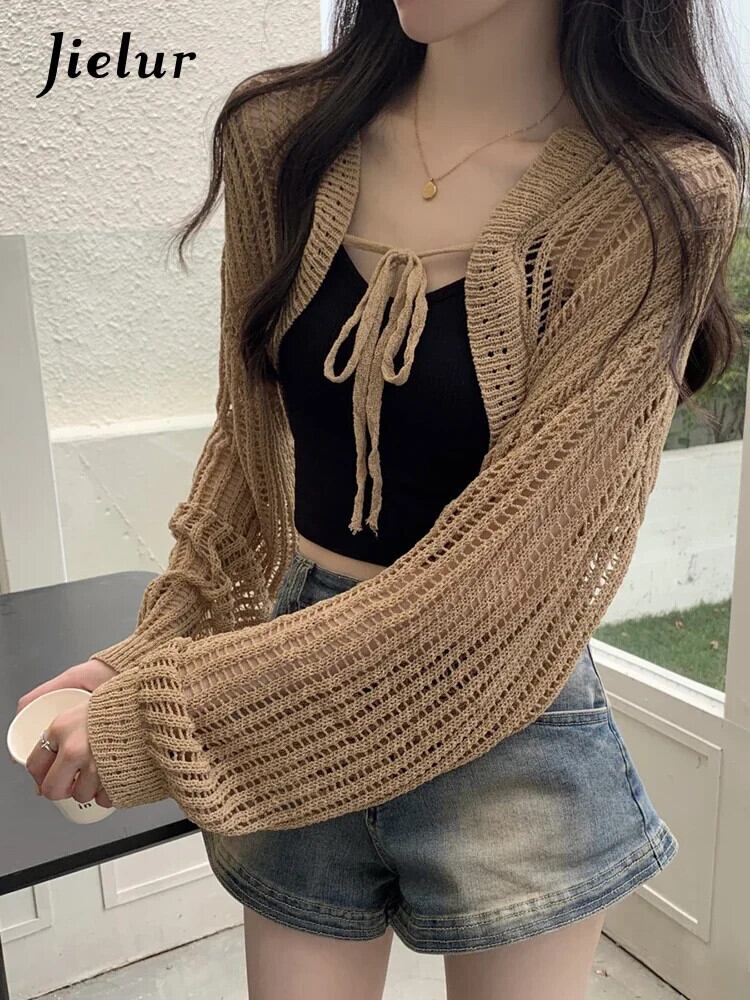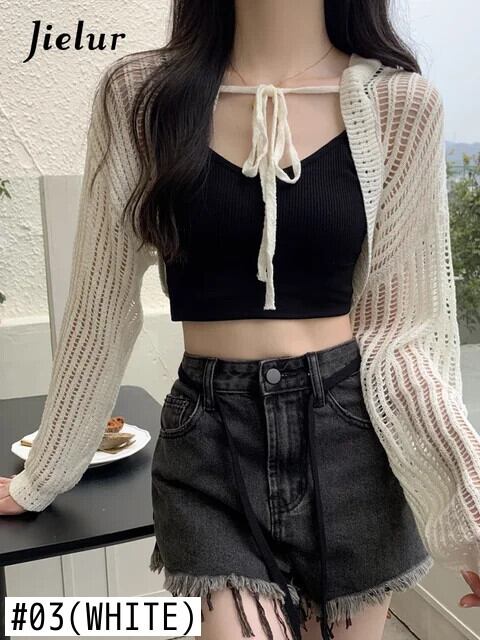 送料無料 Jielur 夏緩い甘いセクシーな女性シャツ中空アウトレースアップ無地シャツ女性黒、白、カーキ長袖トップ ロング ホワイト ブラック 大人ガーリー スウィート キュート カジュアル サマー 夏物 ソリッドカラー AE12188787876360914058