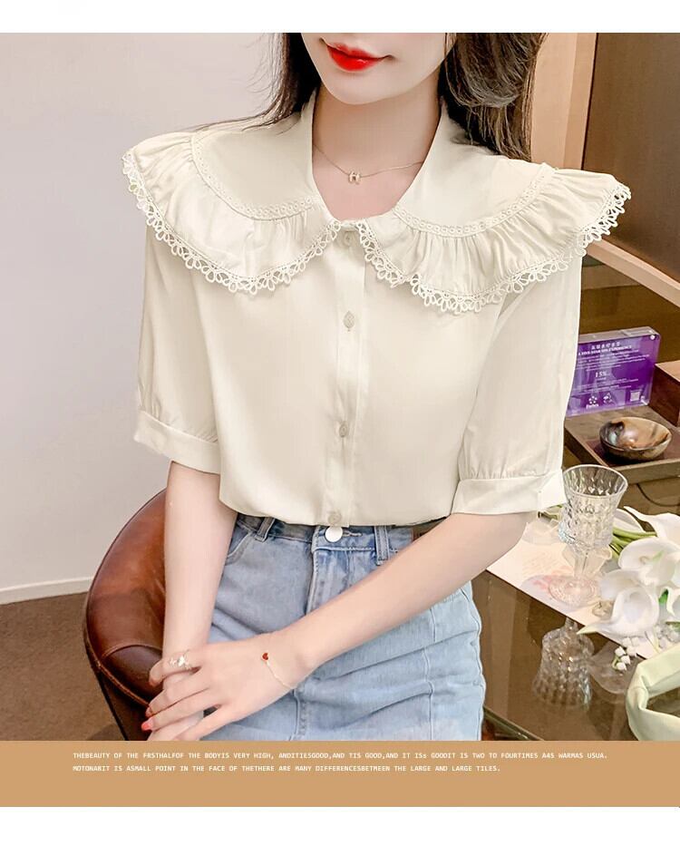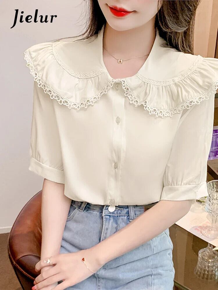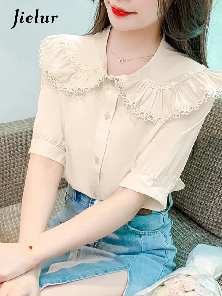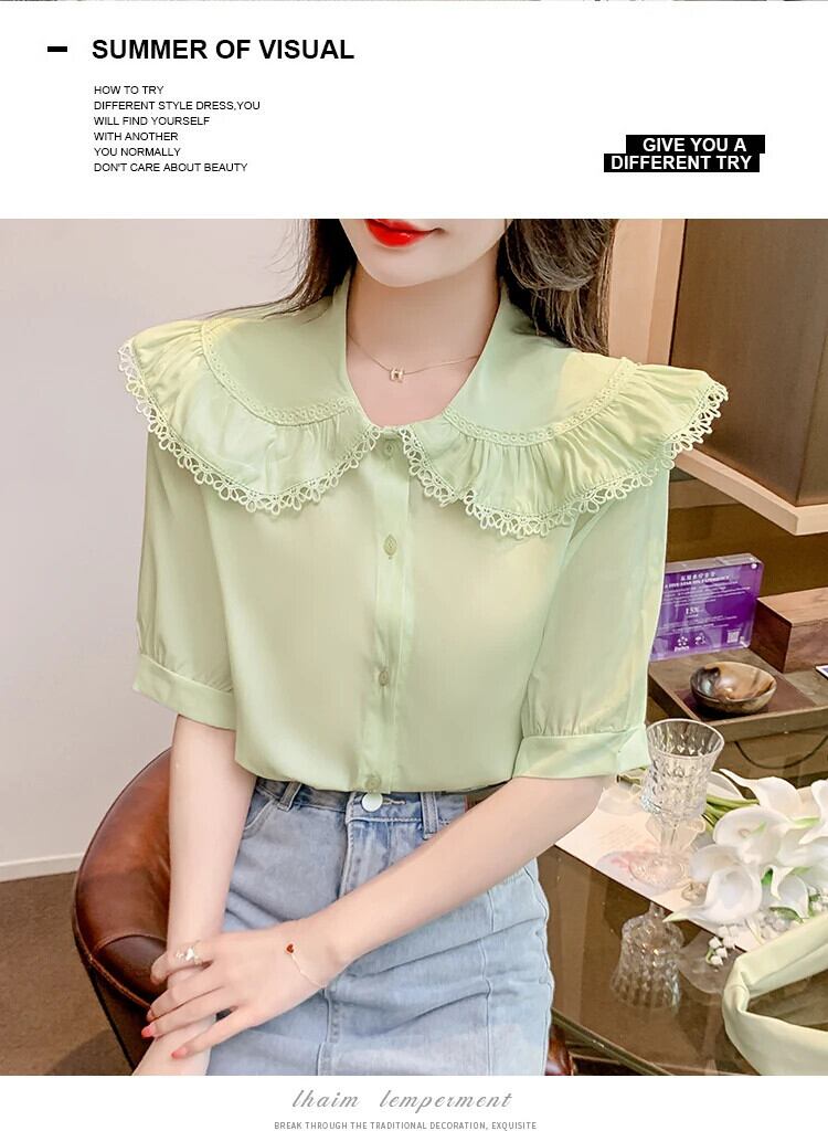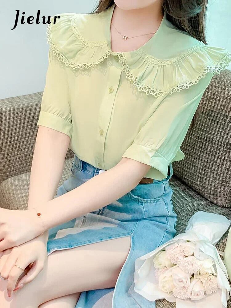 送料無料 Jielur 夏フレンチソリッドカラーの女性シャツ甘いスリムシャツ女性シックなアプリコットグリーンルーズトップ 大人ガーリー スウィート キュート カジュアル サマー 夏物 AE12188787841425231524
