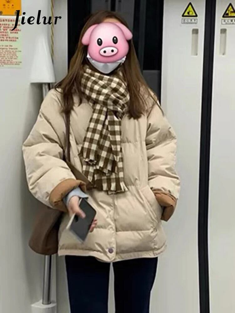 送料無料 Jielur Koran ソリッドカラーヴィンテージルーズジャケットパーカーベーシックシンプルシックシングルブレスト女性パーカーカーキ ビンテージ AE12188787856196073487