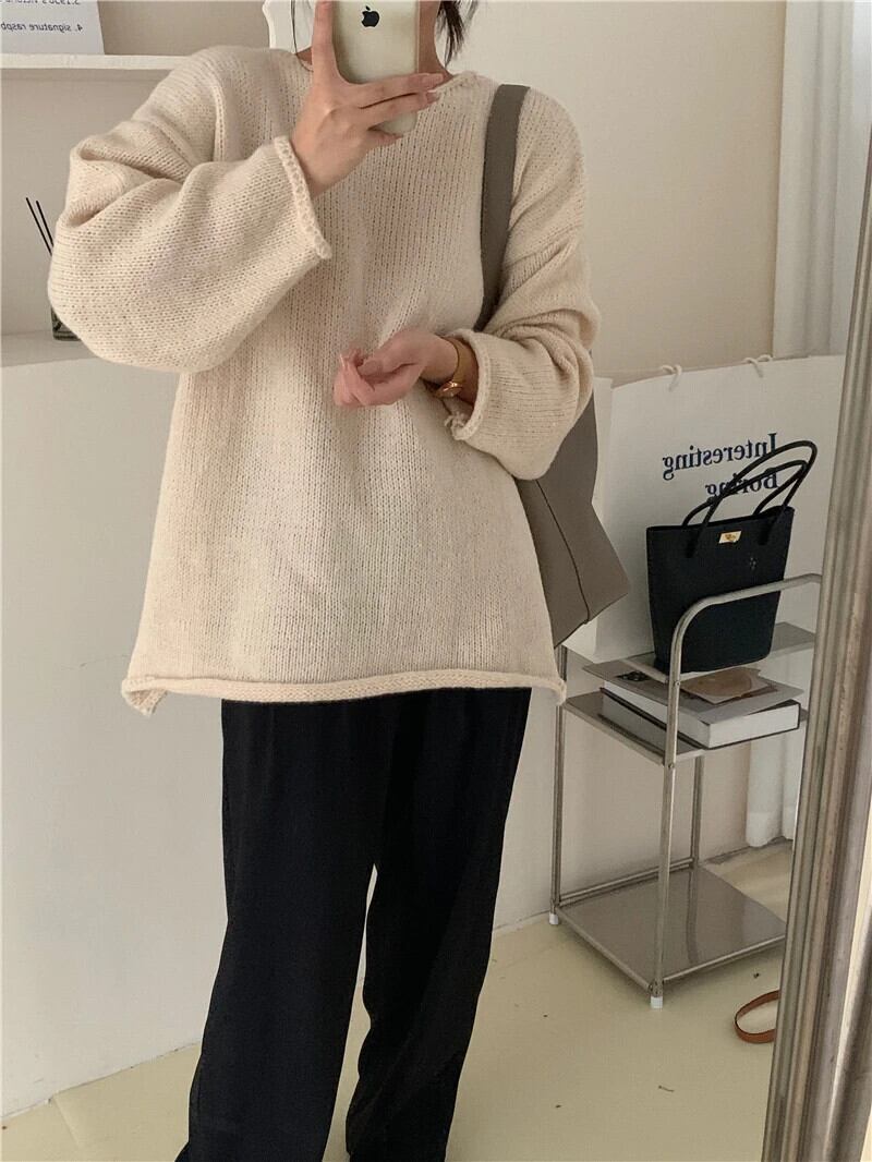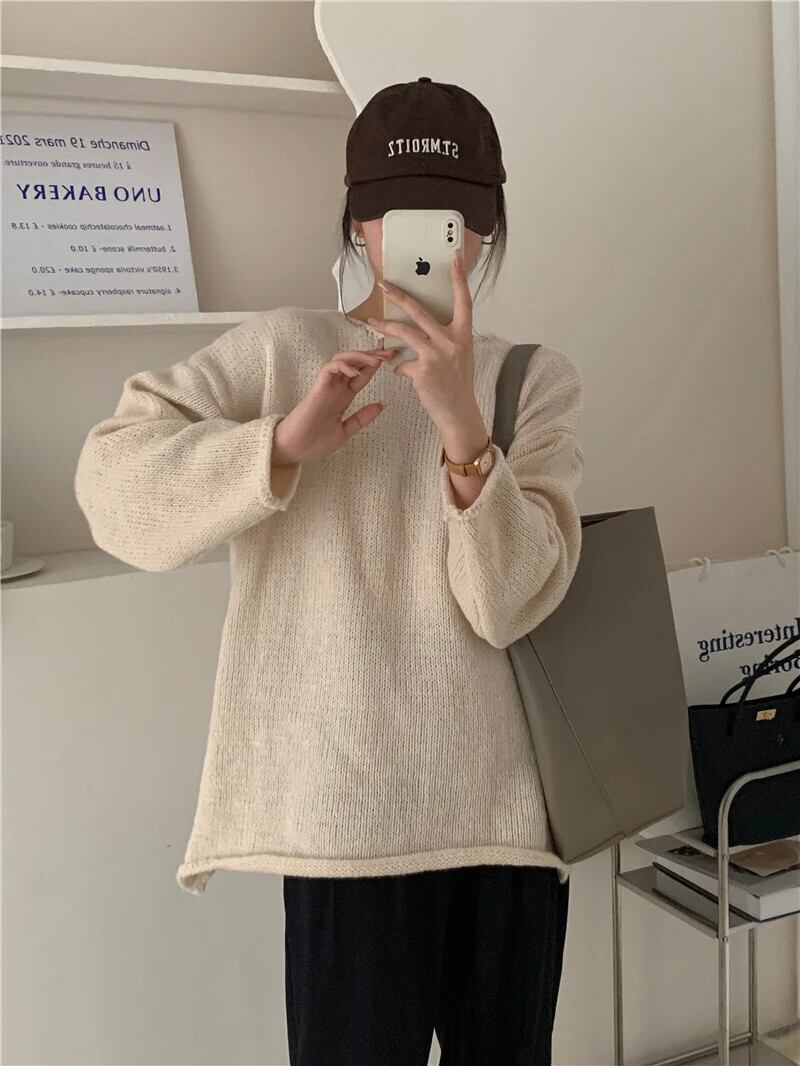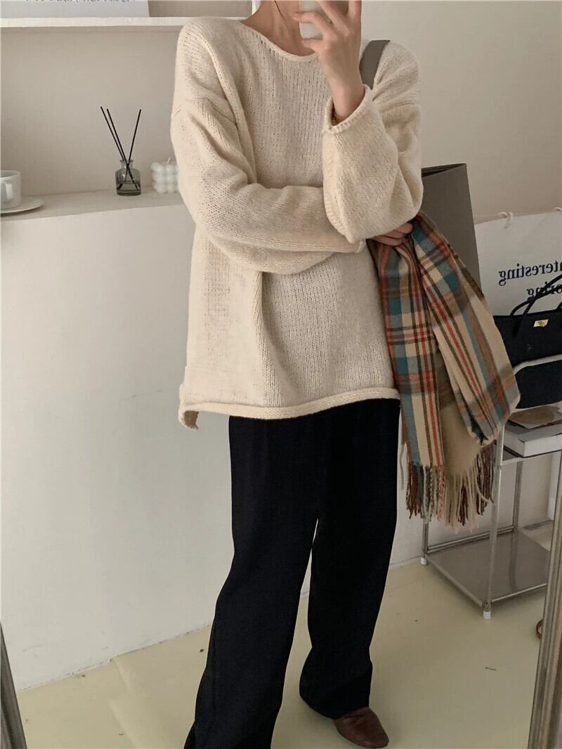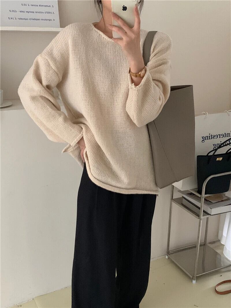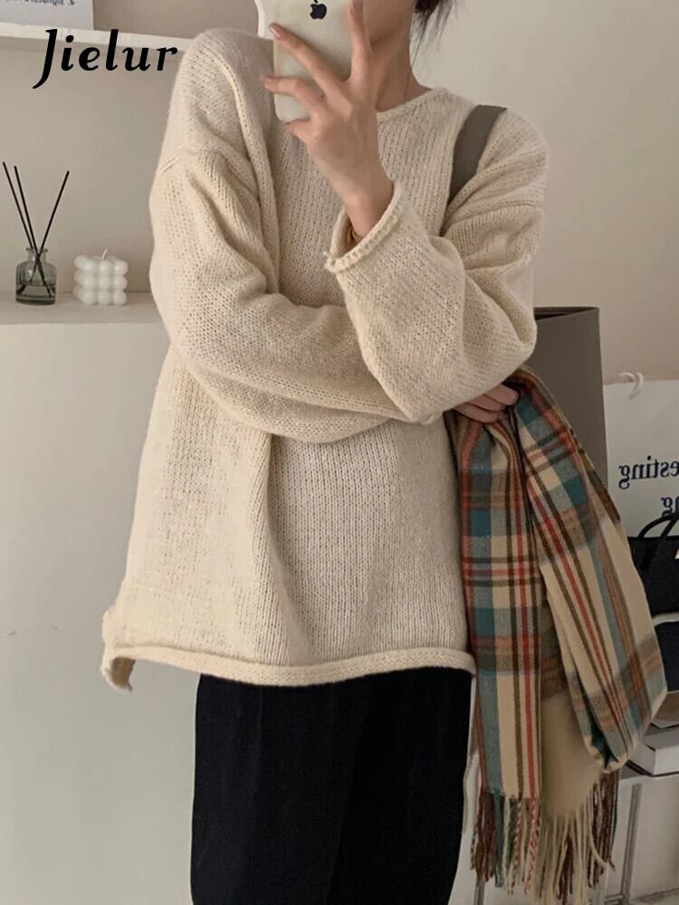 送料無料 Jielur V ネックルーズソフトプルオーバーアプリコットセーター女性秋ニットトップ長袖セーター女性 ロング オータム 秋物 Vネック AE12188787820799784376