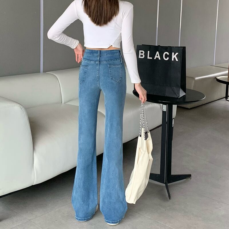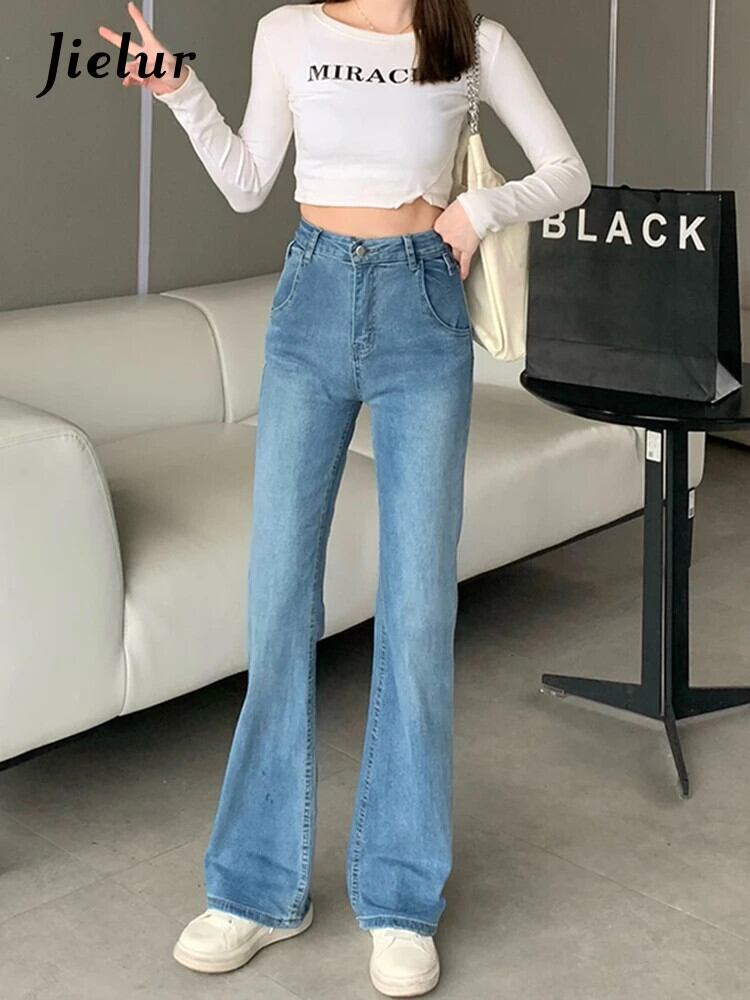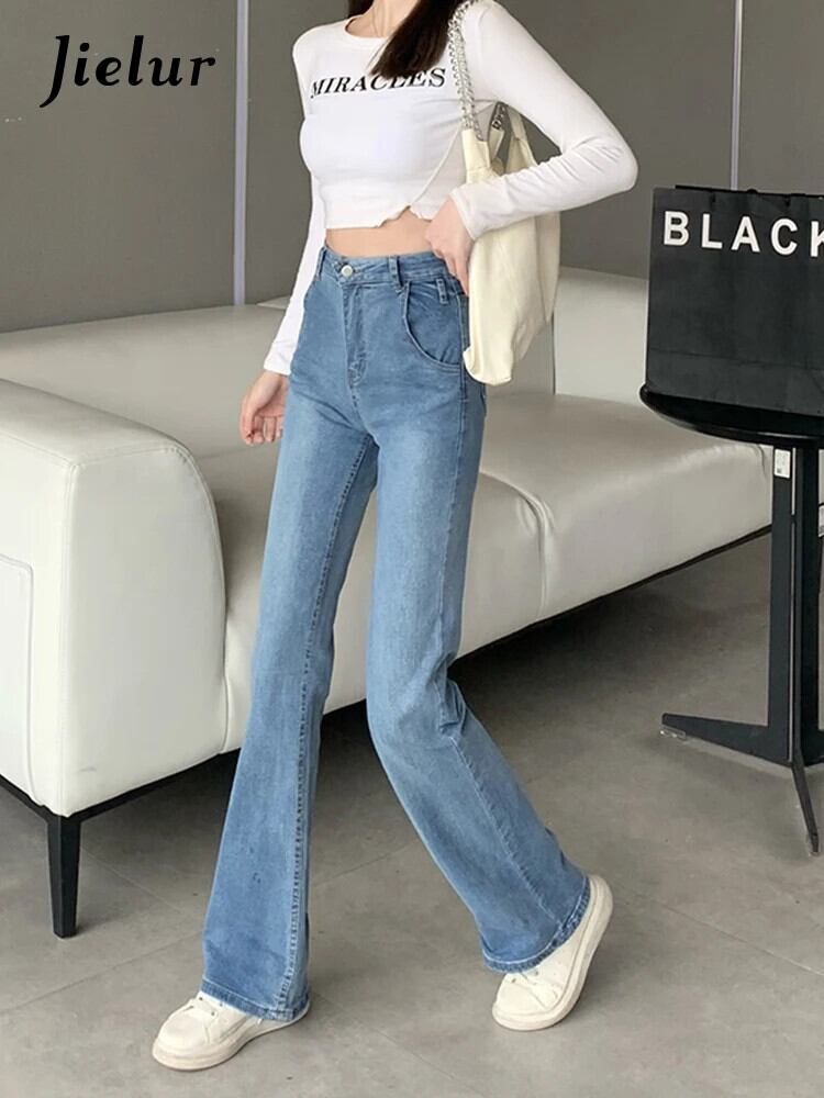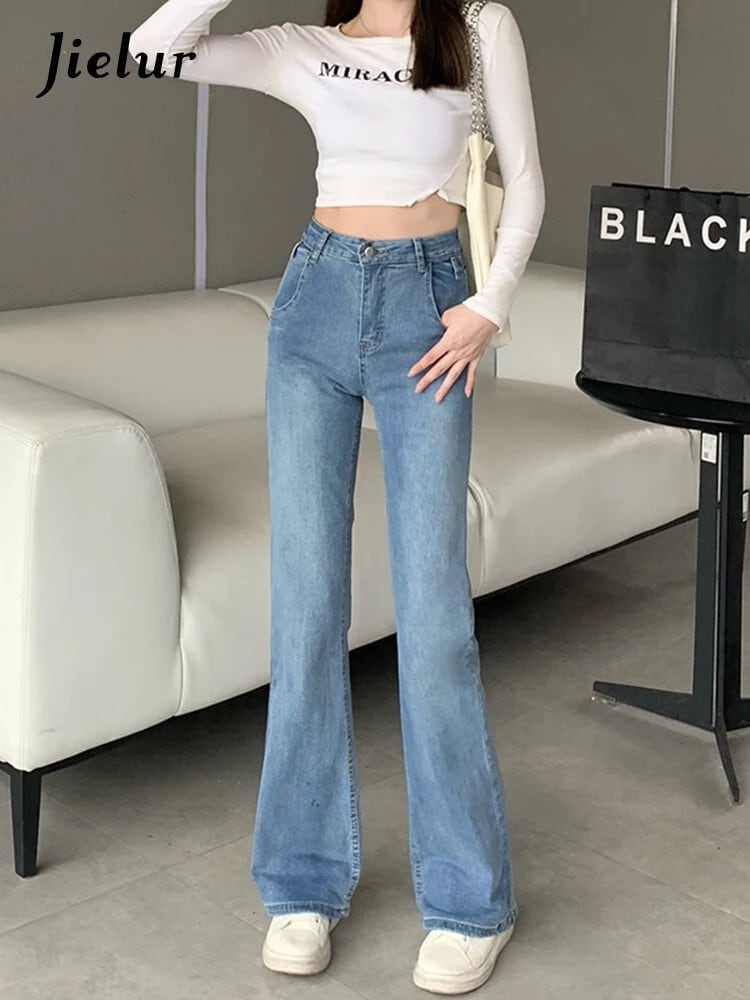 送料無料 Jielur 秋の女性のジーンズシンプルなベーシックストリートシックなジーンズ女性ブルーウエストスリムストレート脚パンツ オータム 秋物 AE12188787894799894285