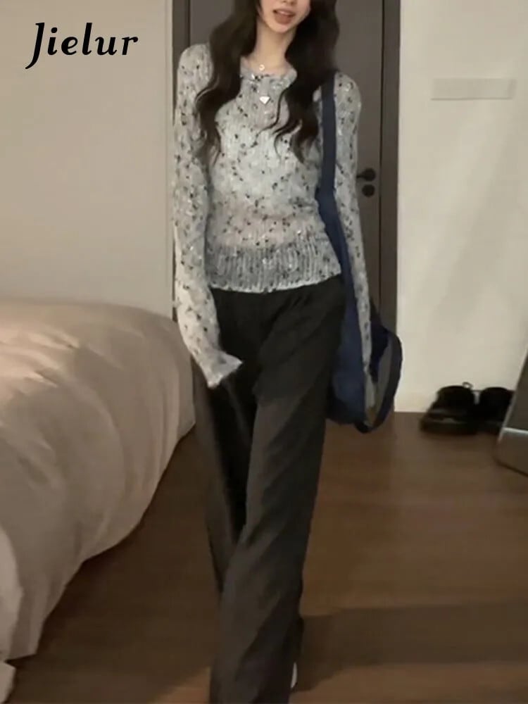 送料無料 Jielur 秋スリムルーズ女性プルオーバーシンプルなベーシックストリートプルオーバー女性グレーシックなニットセーター オータム 秋物 AE12188787892612832890