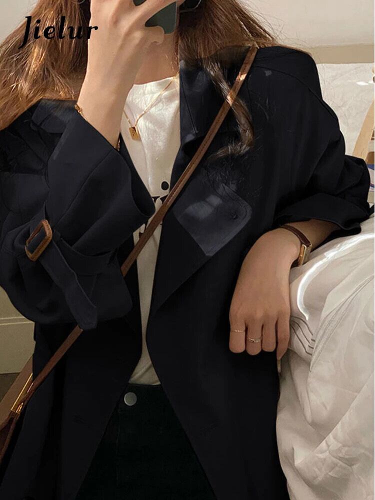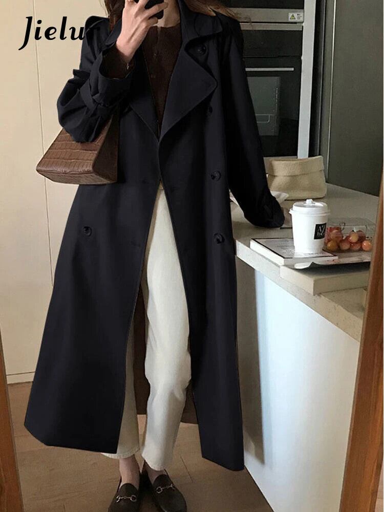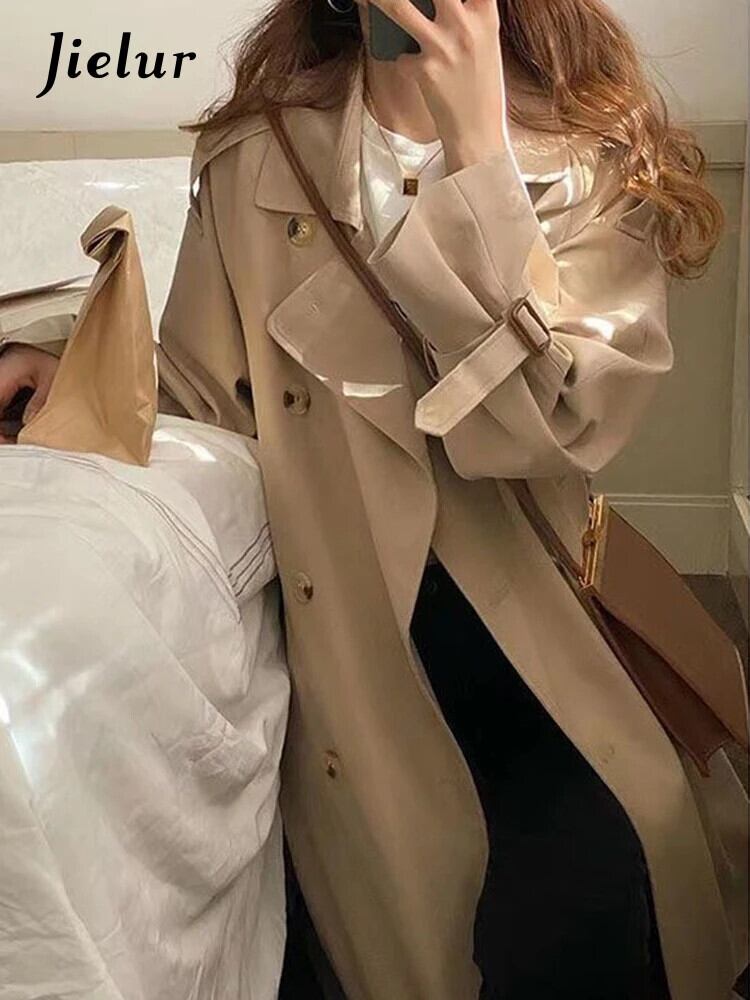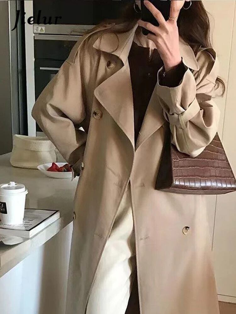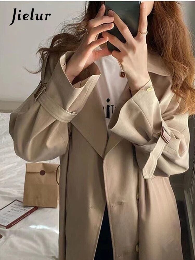 送料無料 Jielur 秋ソリッドカラースリムトレンチ女性シンプルベーシックトレンチブラックカーキルーズストリートトップ女性 オータム 秋物 AE12188787883033042116