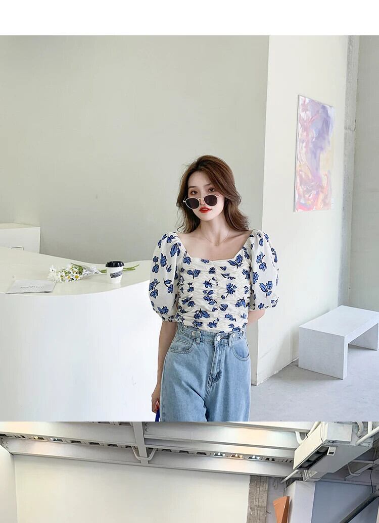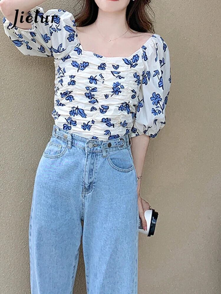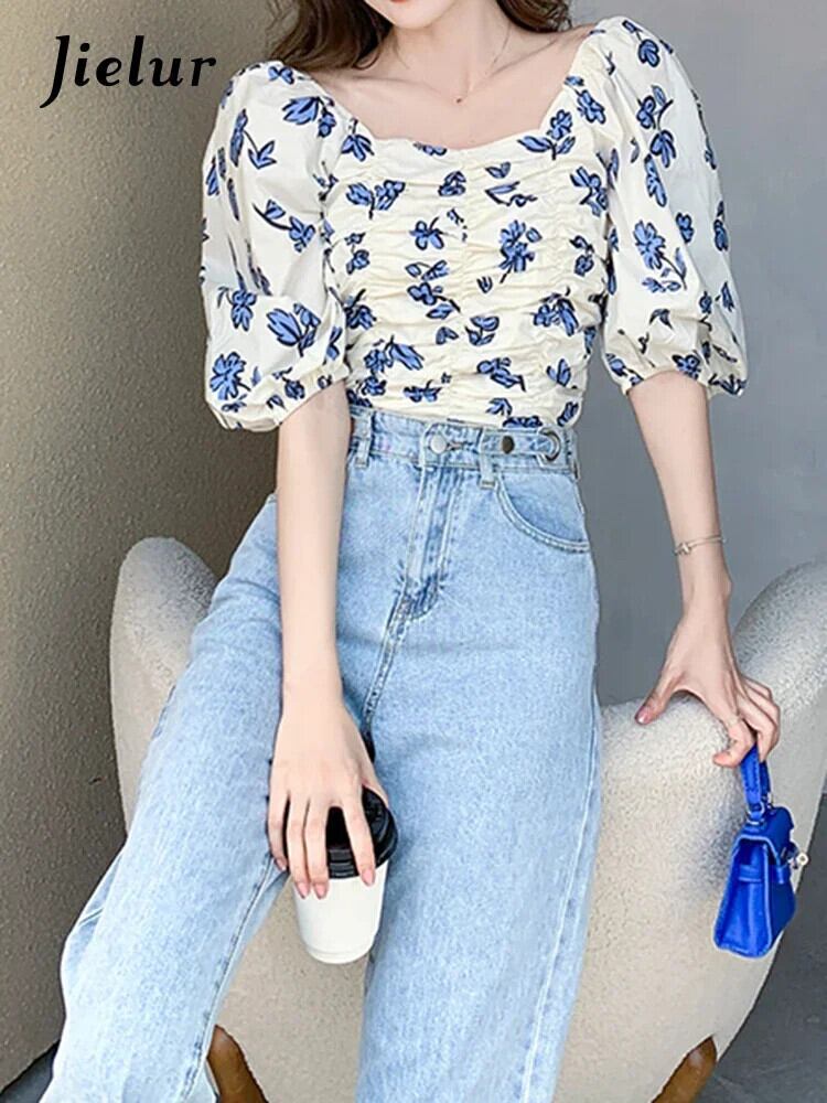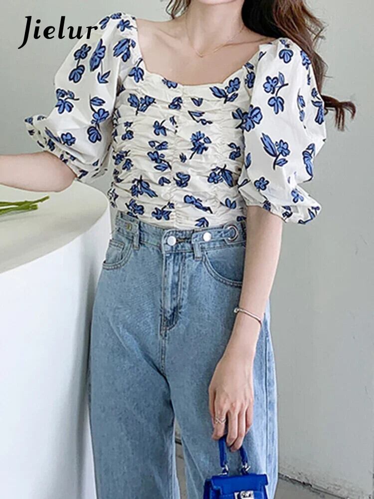 送料無料 Jielur 夏フレンチスリム女性ブラウス甘いシックなブラウス女性ルーズシフォントップ 大人ガーリー スウィート キュート カジュアル サマー 夏物 AE12188787879200905673