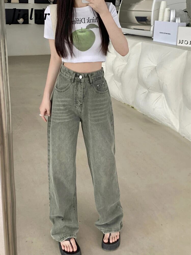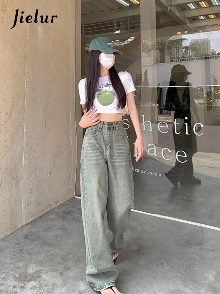 送料無料 Jielur 夏シンプルな女性のジーンズライトウエストルーズジーンズ女性ダメージ加工スリムデニムパンツ サマー 夏物 AE12188787834802583049