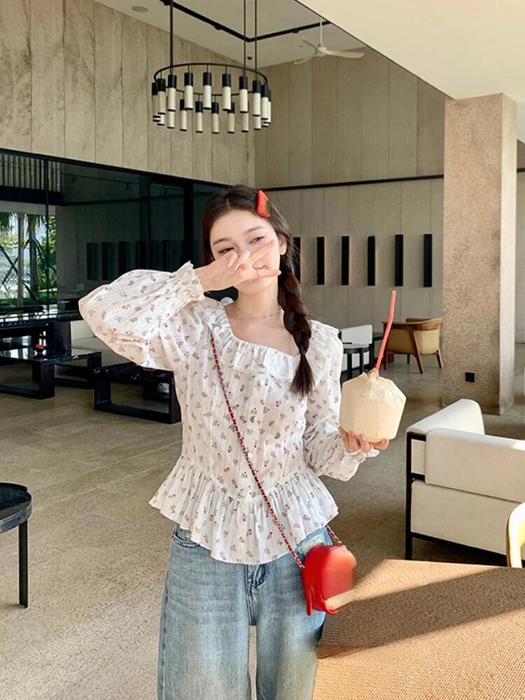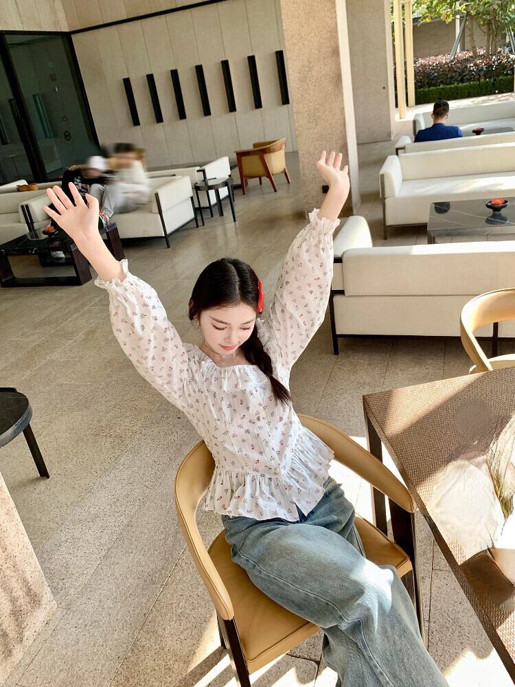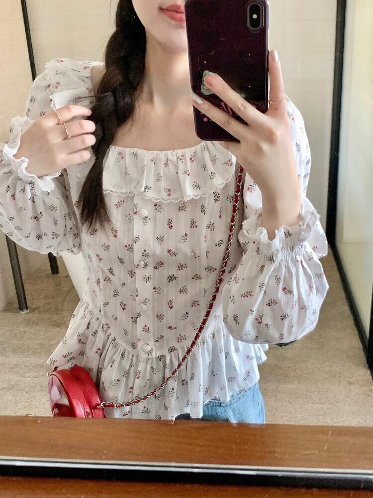 送料無料 Jielur 春ピュアカラー長袖シャツ女性レースブラウススタイルレディブラウススイートシック ロング 大人ガーリー スウィート キュート カジュアル スプリング 春物 AE12188787825376793704